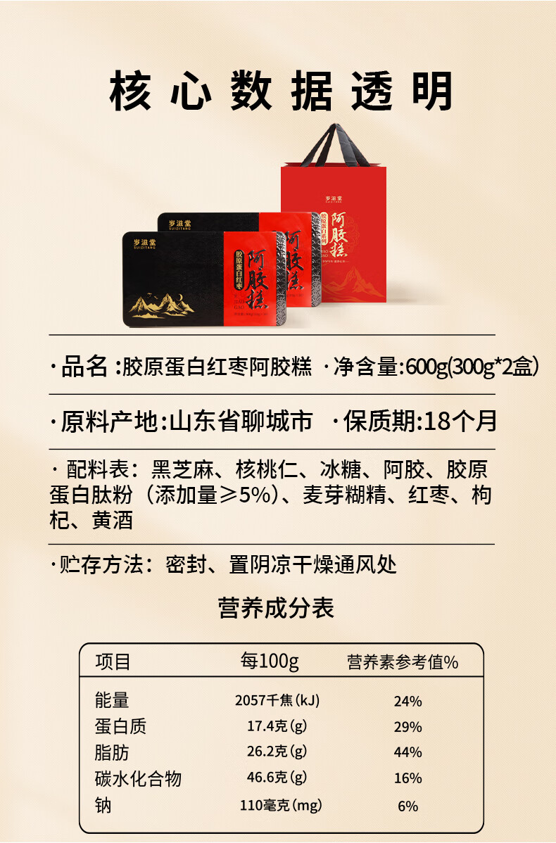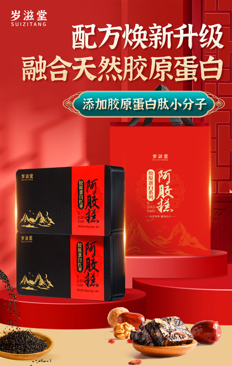 岁滋堂【双效滋补】红枣阿胶糕礼盒女补气血老人品过年货送妈妈长辈礼物