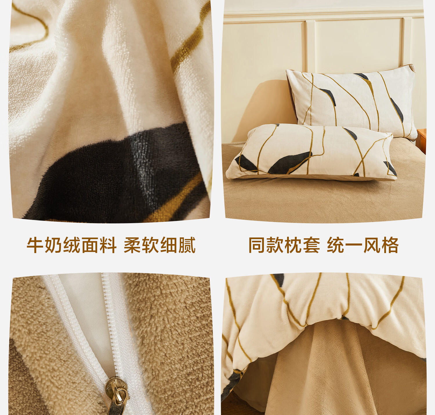 海澜之家(HLA)A类牛奶绒四件套防静电双面绒亲肤裸睡被套冬季加绒套件加厚床单 奇佑【A类加厚加密牛奶绒 不易掉毛】 三件套被套150*200 床单款 180*230