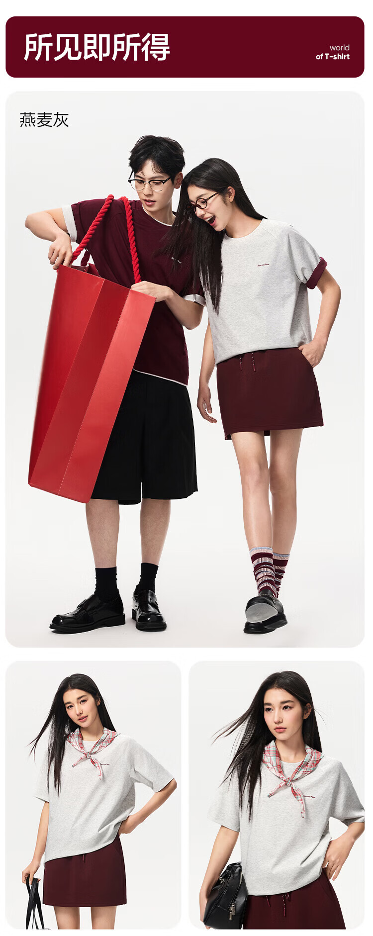 网易严选26马年限定红运T恤速干透气柔软短袖内搭圆领男女同款插肩袖显瘦 燕麦灰-马踏祥瑞 S