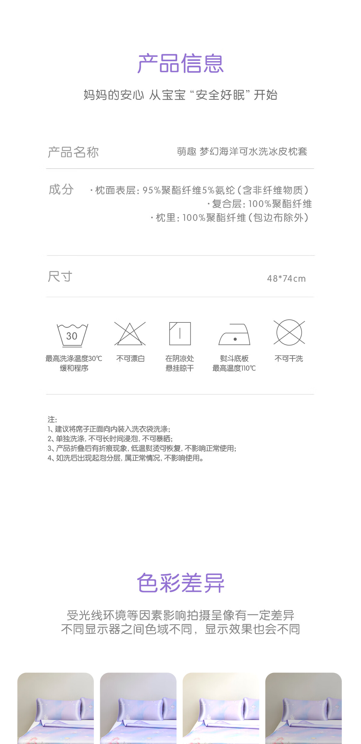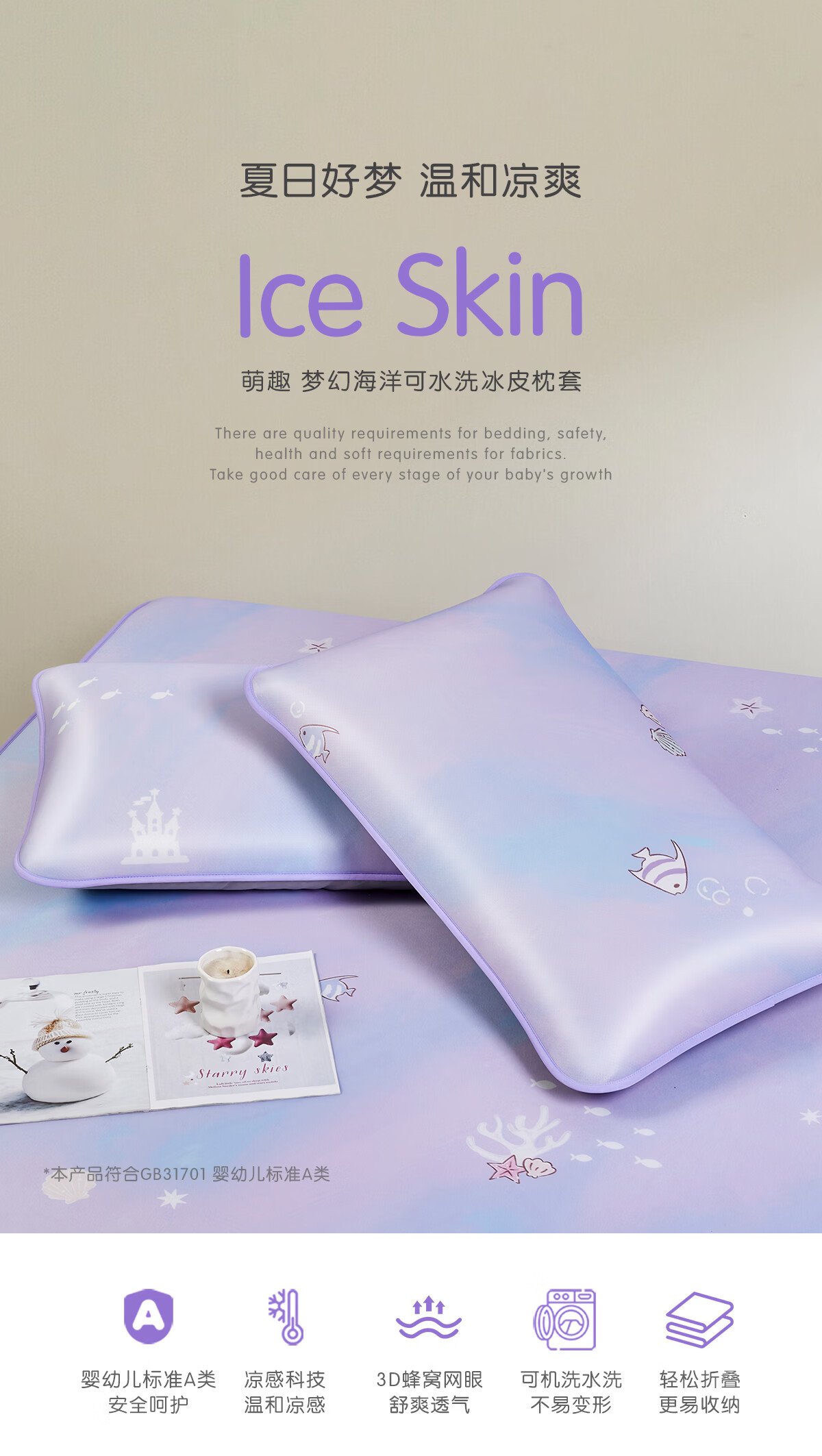 罗莱家纺婴幼儿A类抗菌防螨可水洗冰丝枕套夏季儿童单只装 星空绽放-粉色 单只 48cm*74cm