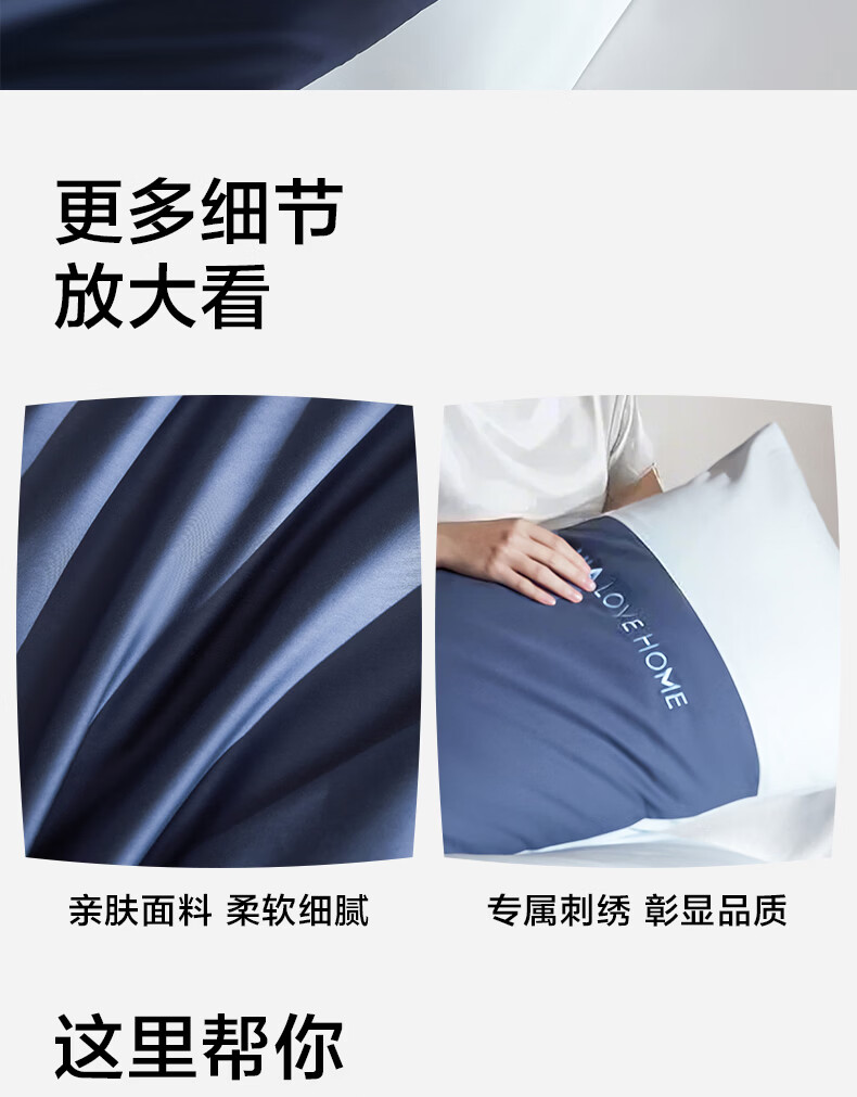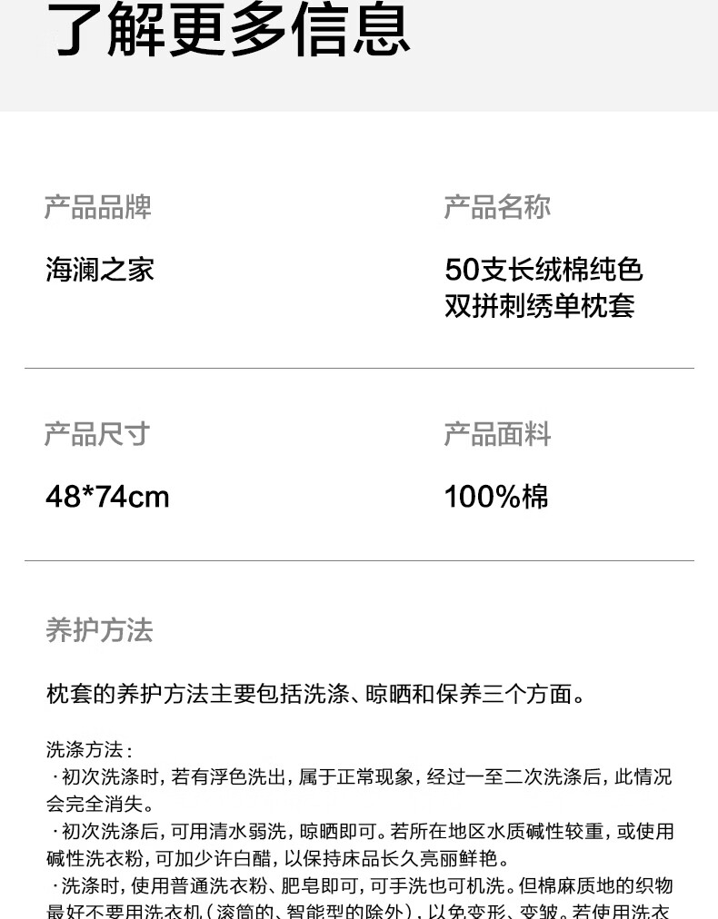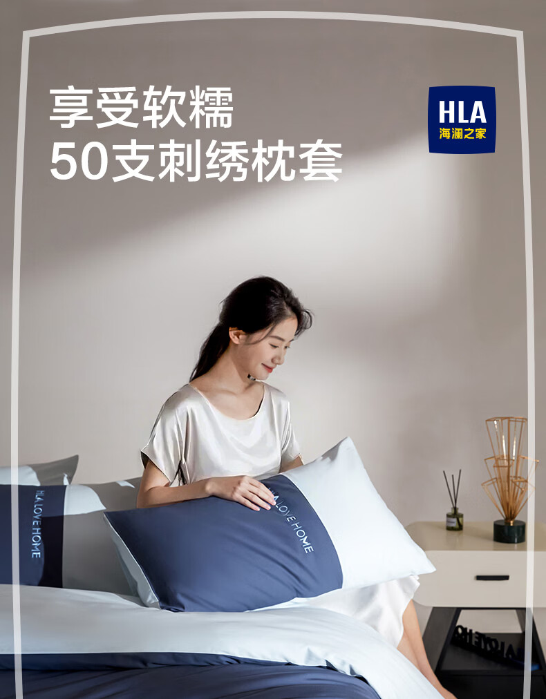 海澜之家(HLA)枕套一对装枕头套50支长绒棉48*74cm纯棉亲肤柔软双人家用成人 绅士灰 48*74cm一对装