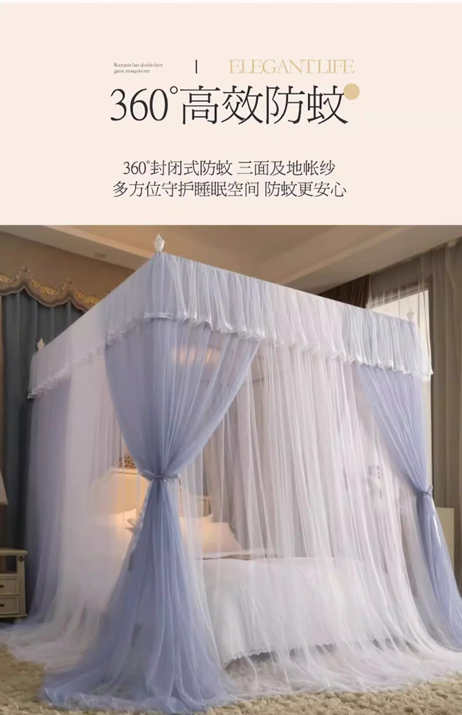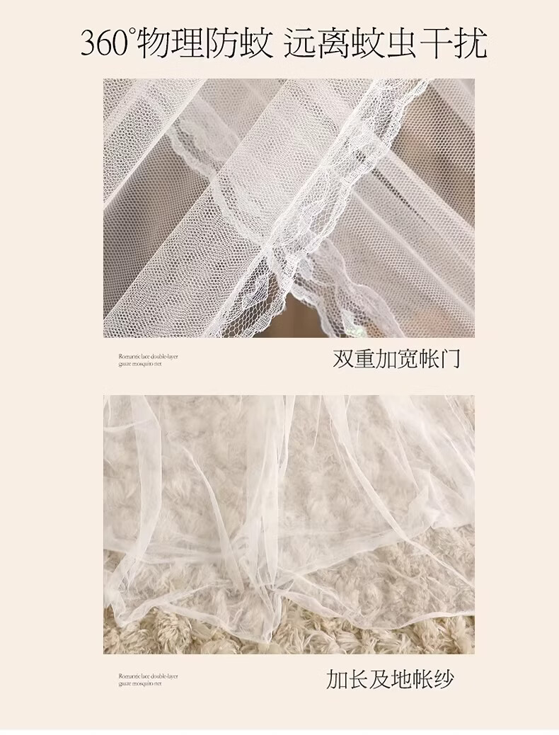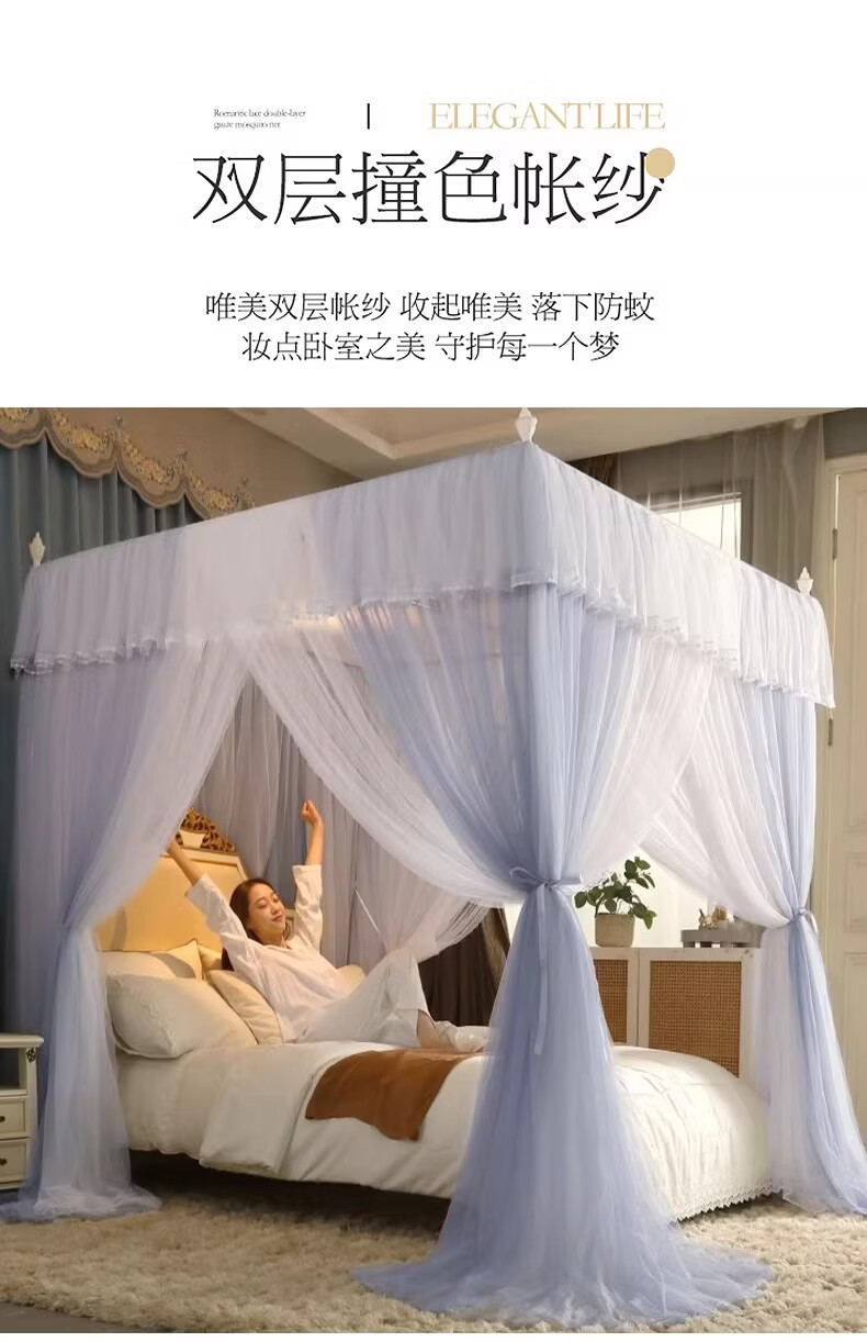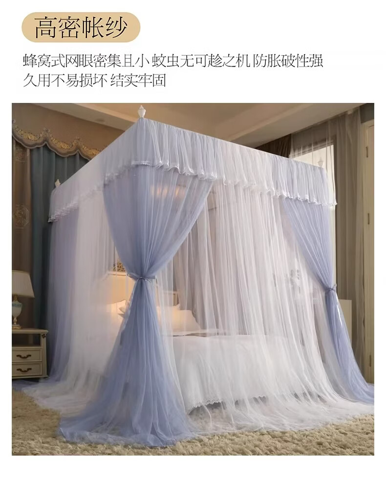 无印良品宫廷式落地蚊帐1.5x2米家用老式蚊帐骨架加粗加厚公主风防蚊蚊帐 典雅-灰色【双层纱帐 加大空间】 120cm*200cm*200cm 加厚烤漆支架