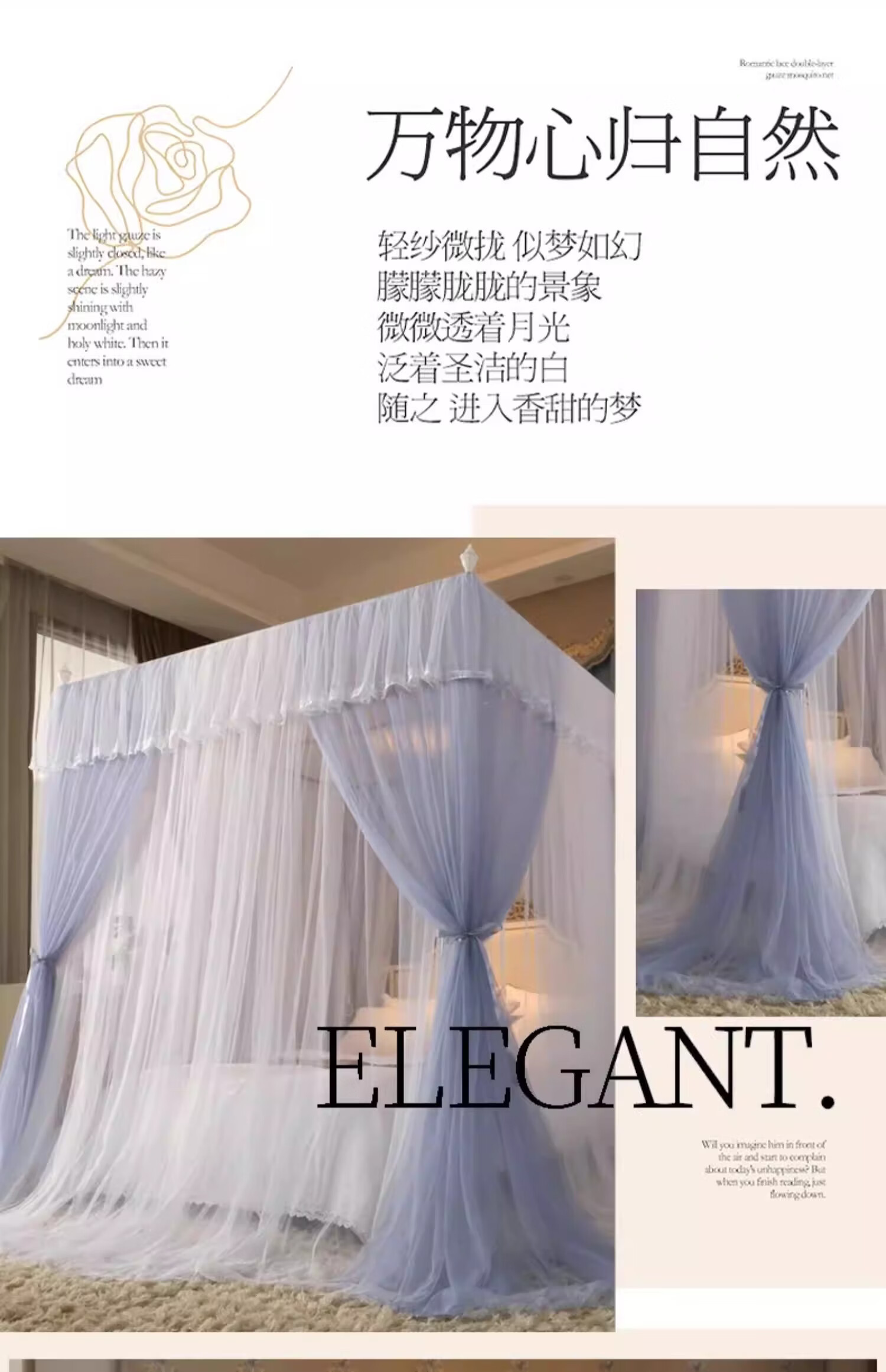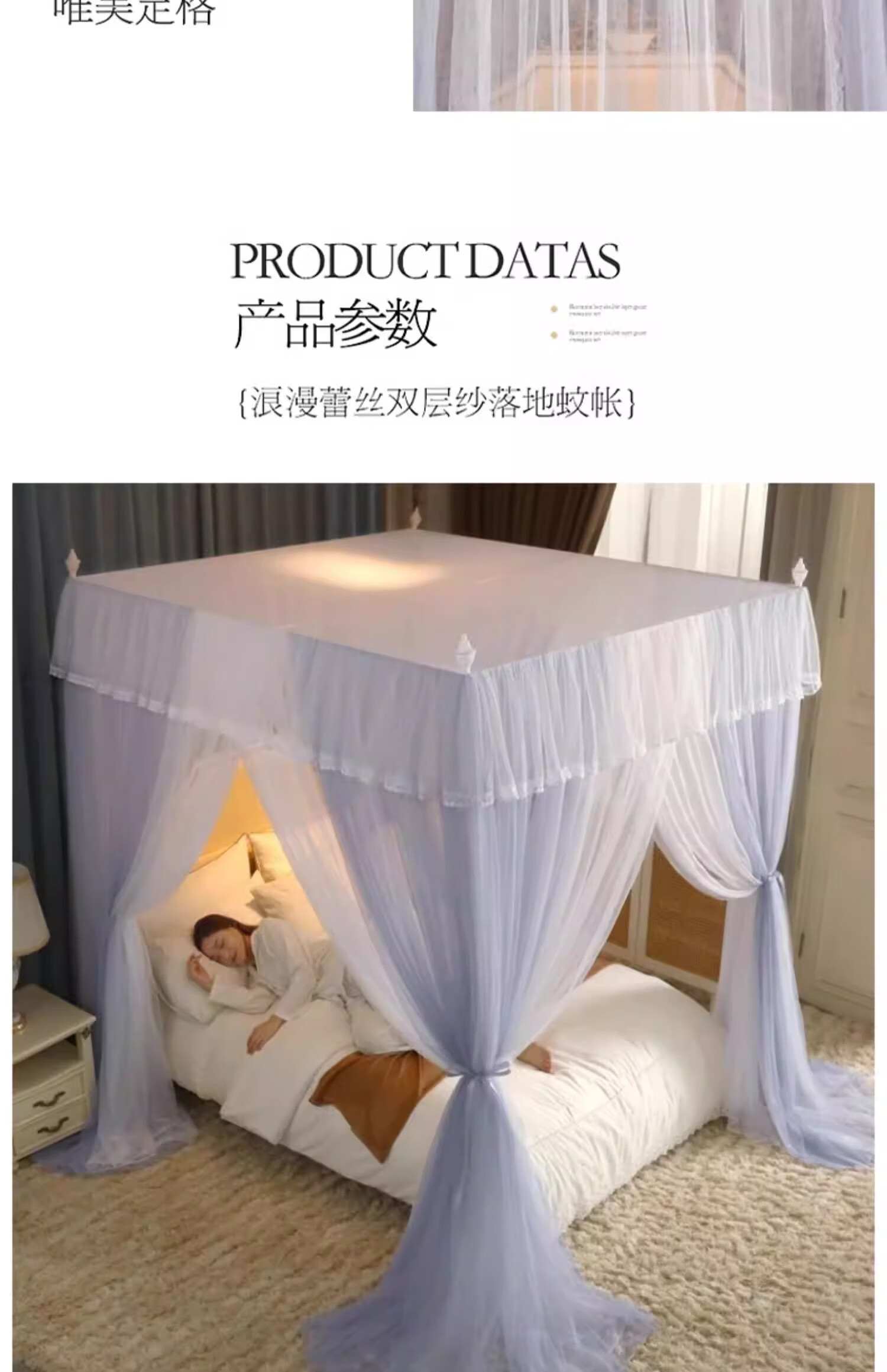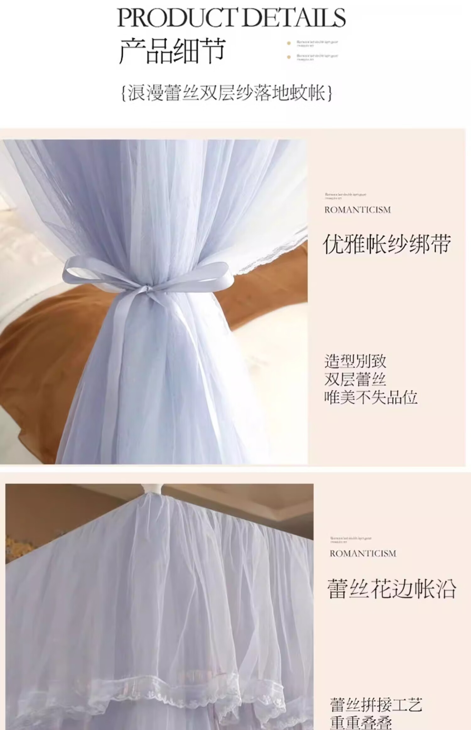 无印良品宫廷式落地蚊帐1.5x2米家用老式蚊帐骨架加粗加厚公主风防蚊蚊帐 典雅-灰色【双层纱帐 加大空间】 120cm*200cm*200cm 加厚烤漆支架