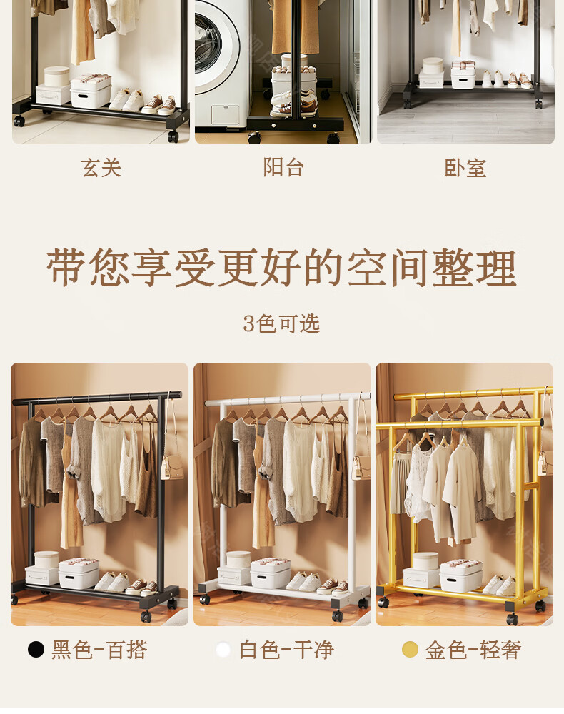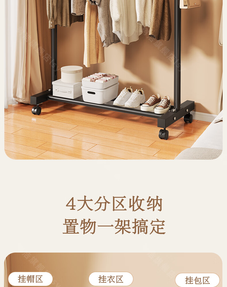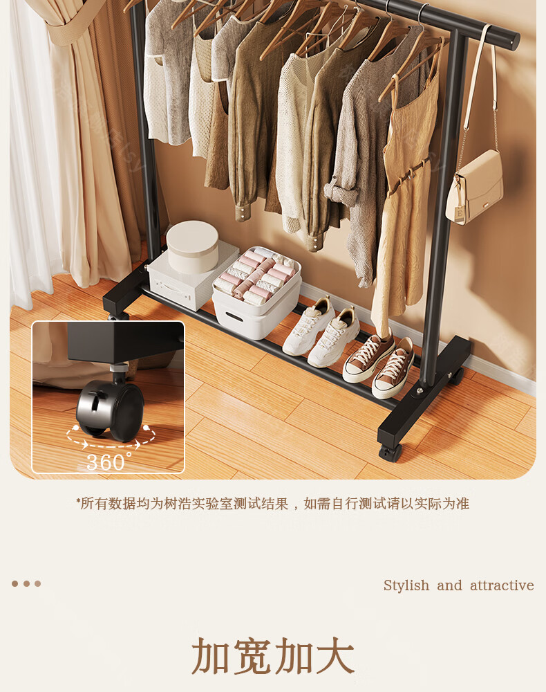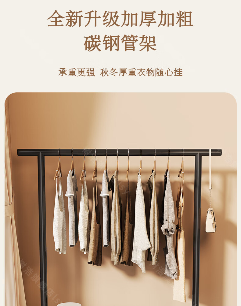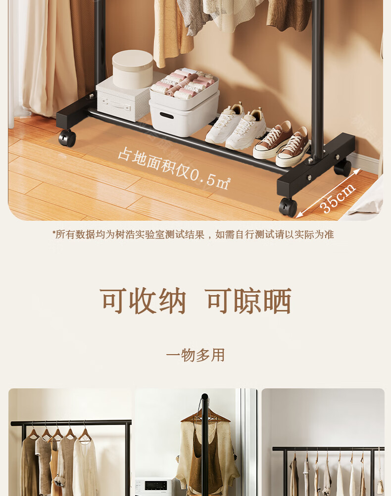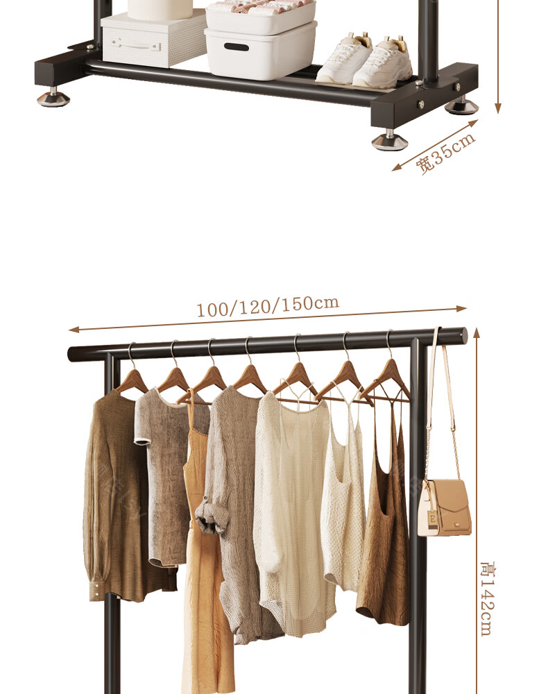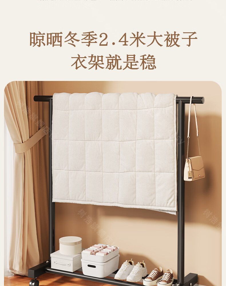 树浩衣帽架出租房简易挂衣架宿舍移动挂衣服架子阳台晾晒干落地晒被架 重磅升级-1米黑色-32mm管超粗