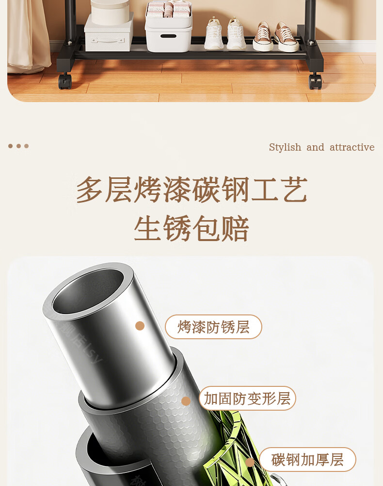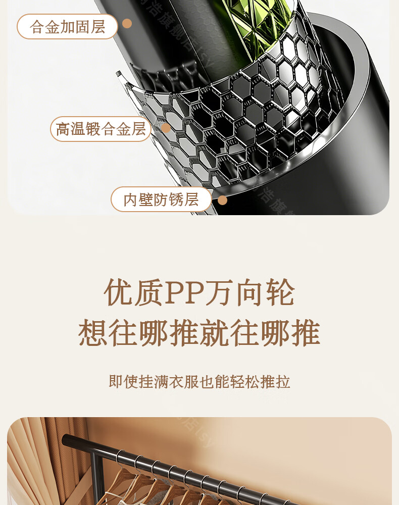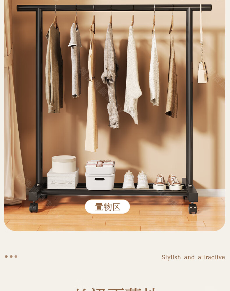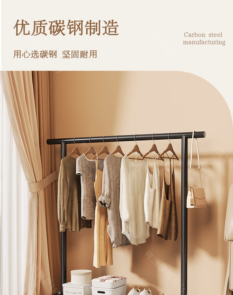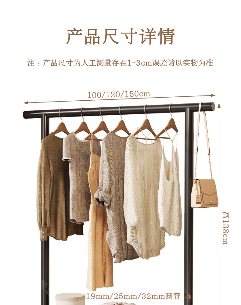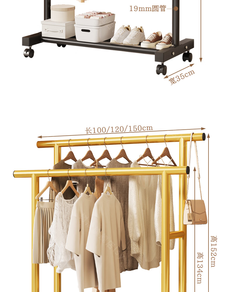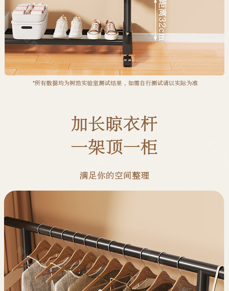树浩衣帽架出租房简易挂衣架宿舍移动挂衣服架子阳台晾晒干落地晒被架 重磅升级-1米黑色-32mm管超粗