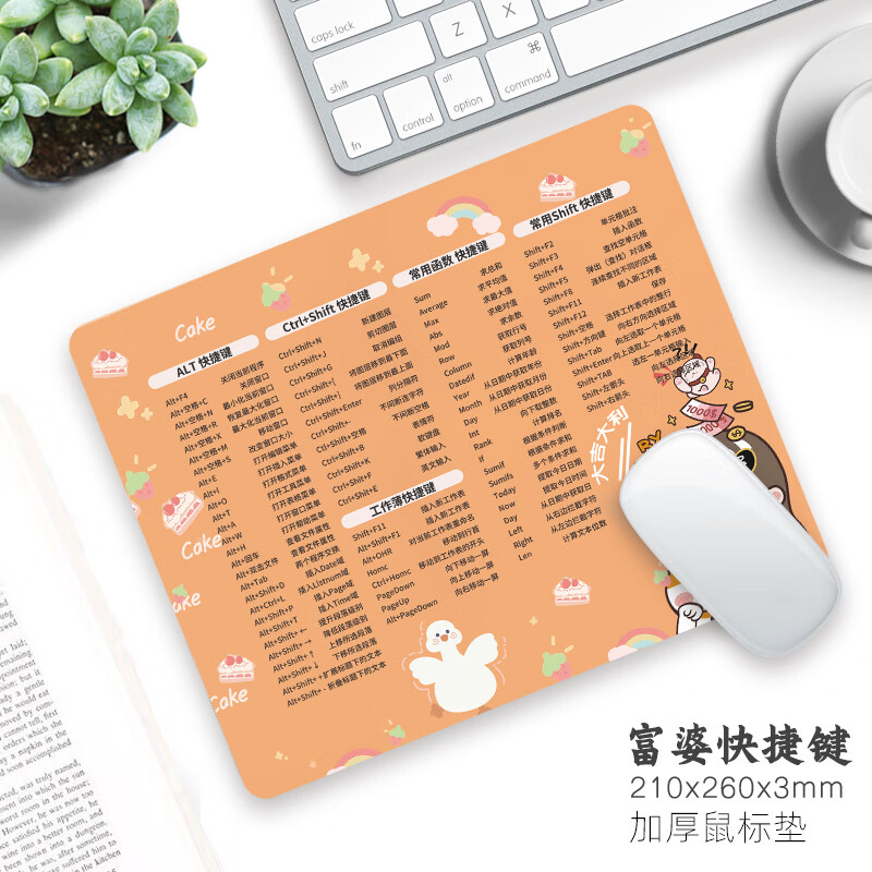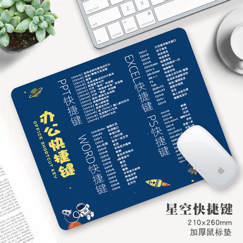 鼠标垫小号可爱女办公快捷键大全WORD游戏学生宿舍家用加厚书桌垫男生护腕动漫书桌面垫子橡胶垫 黑底快捷键 260*210*2mm