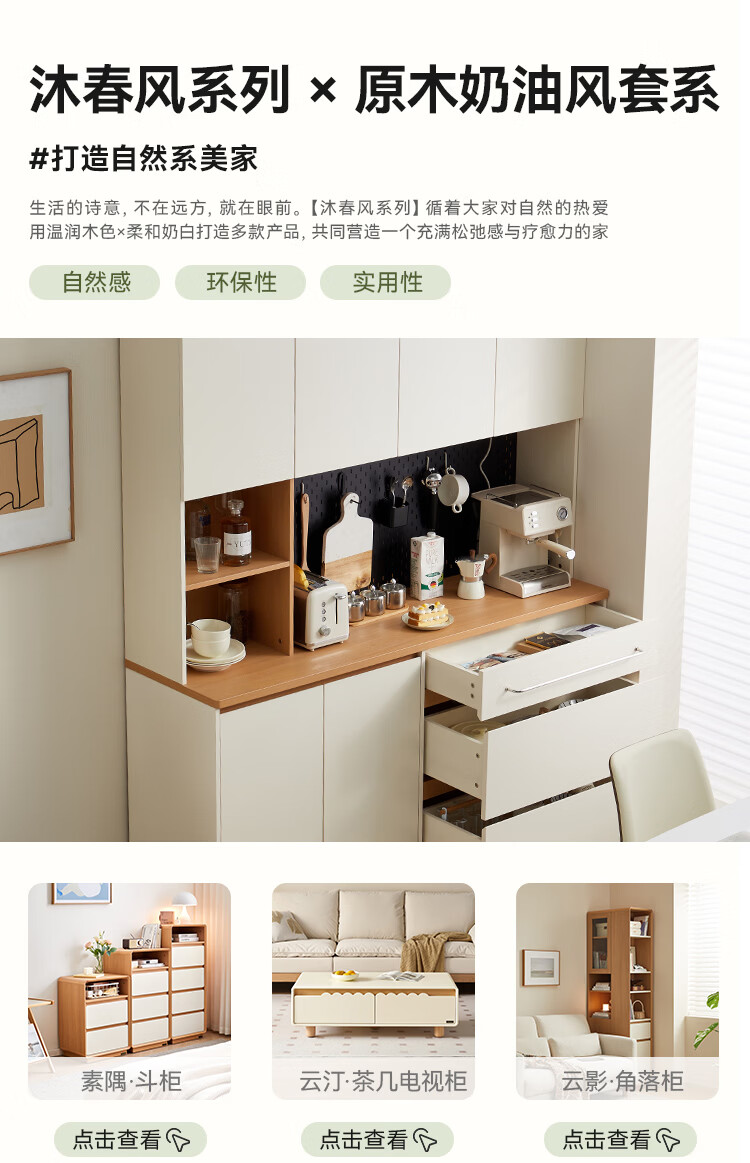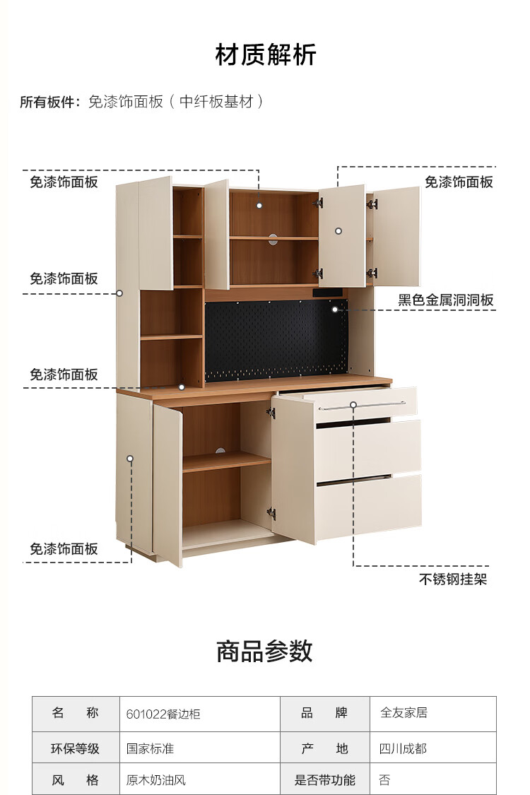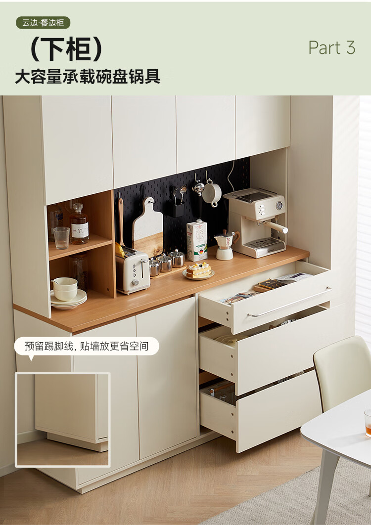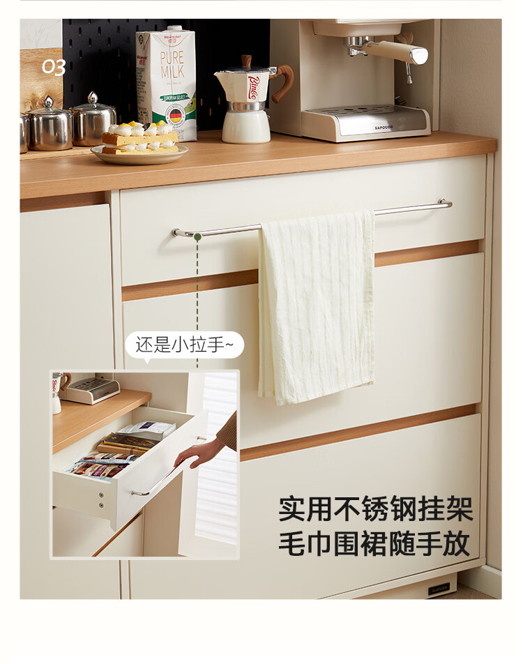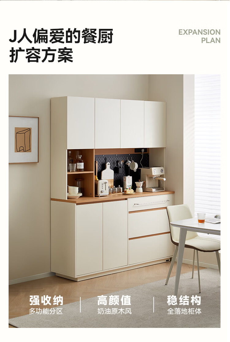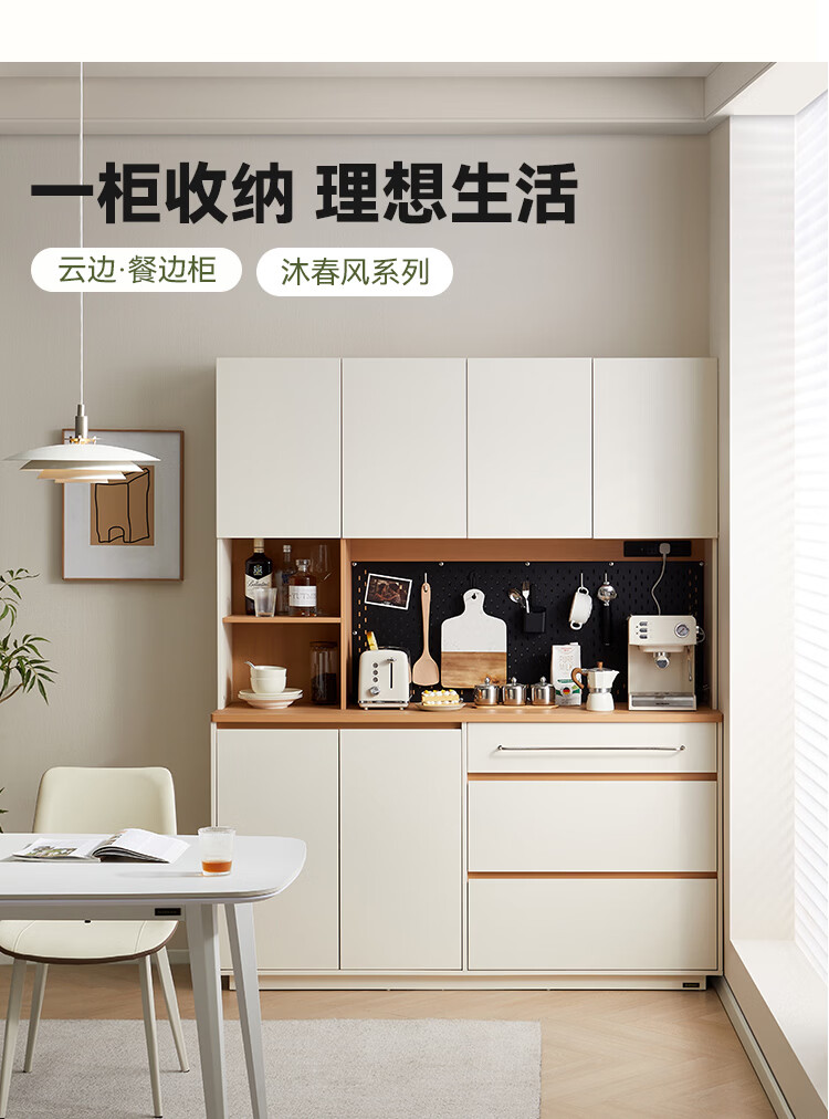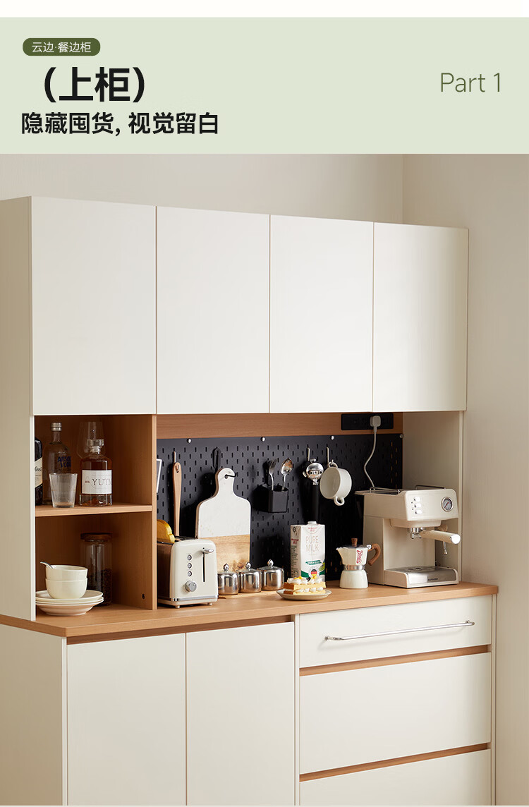 全友家居奶油风餐边柜厨房多功能操作台置物架茶吧机收纳储物小柜子 【原木色+奶油白】餐边柜