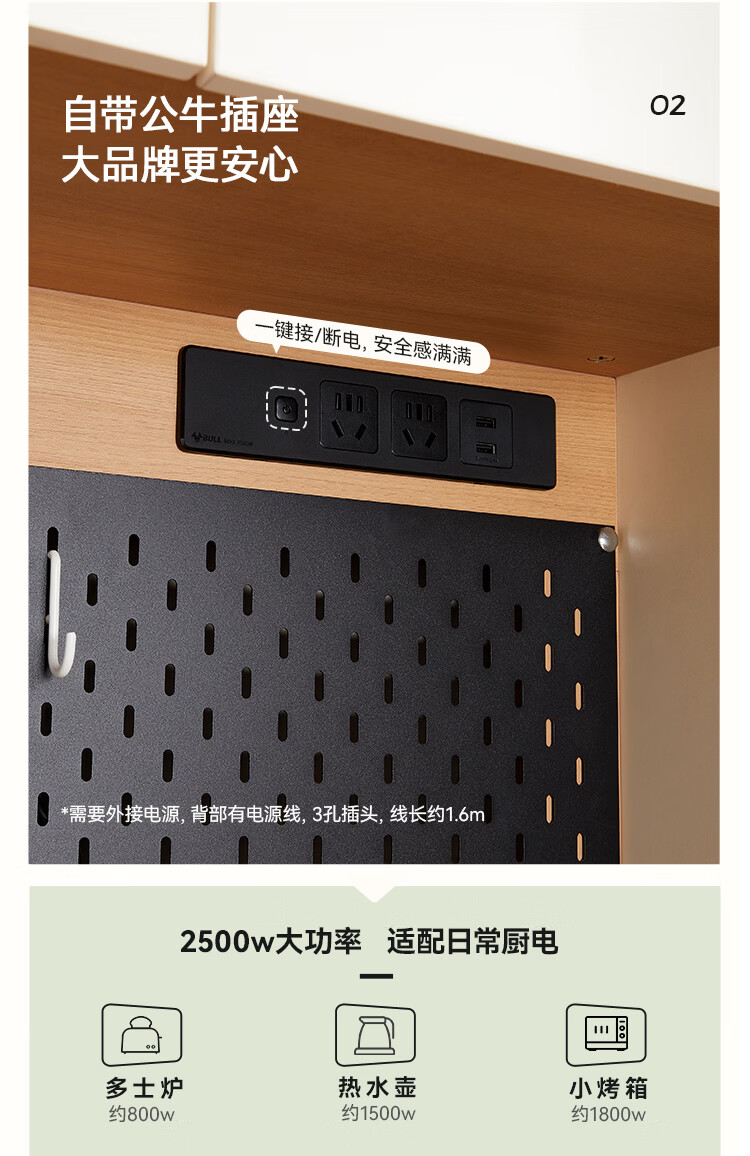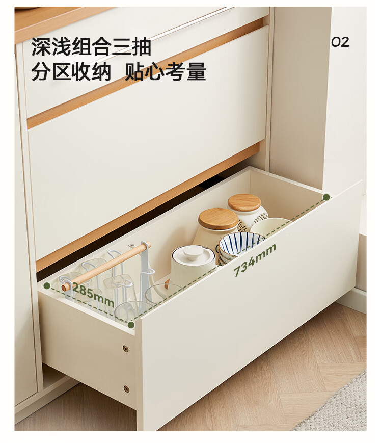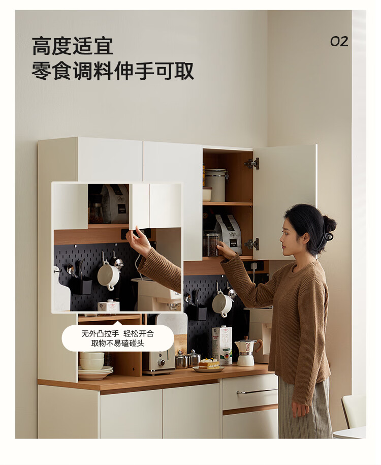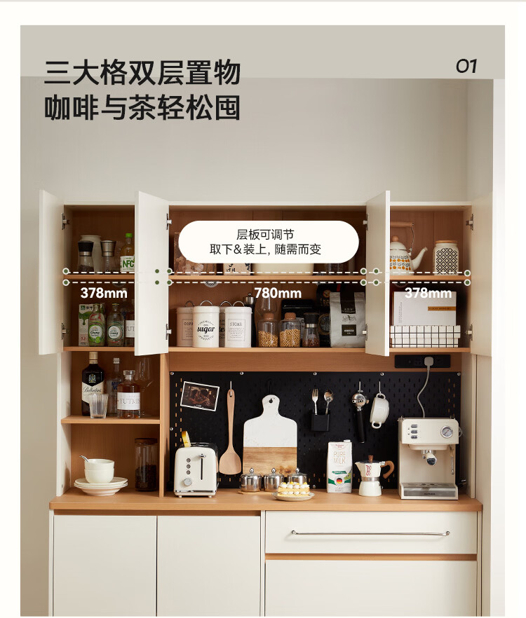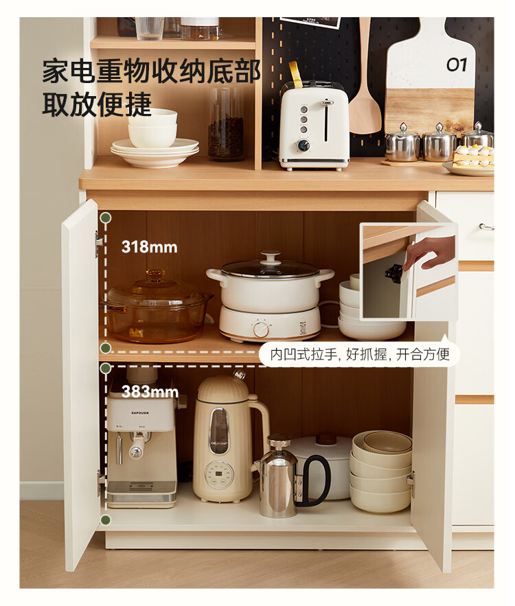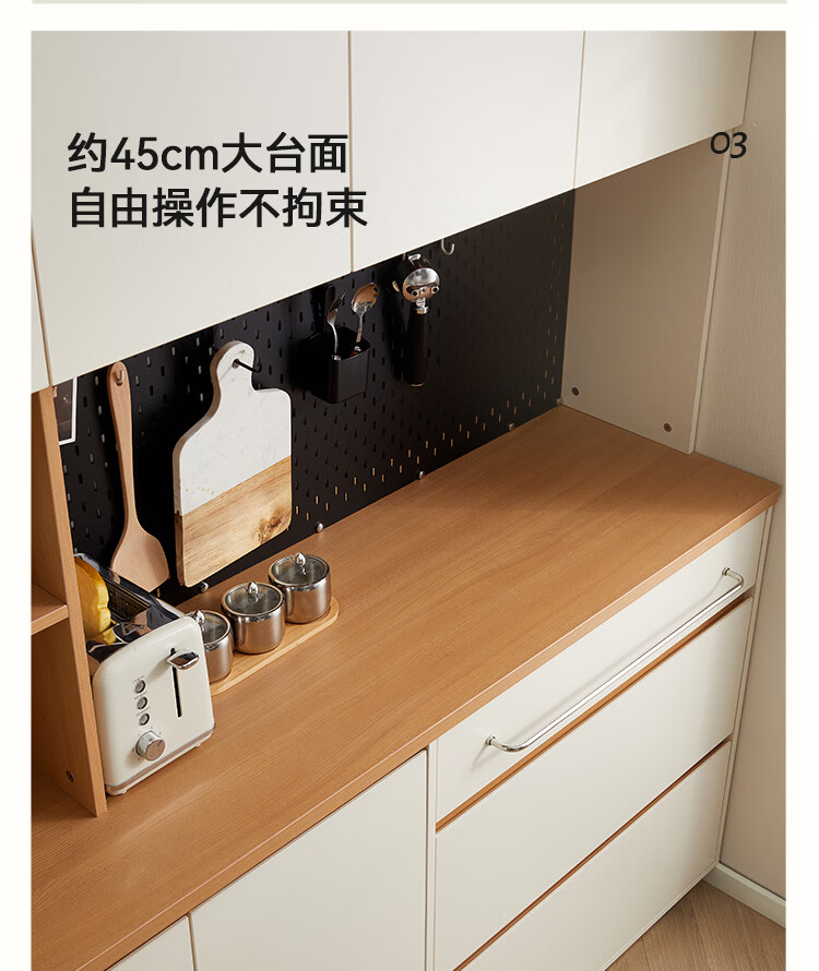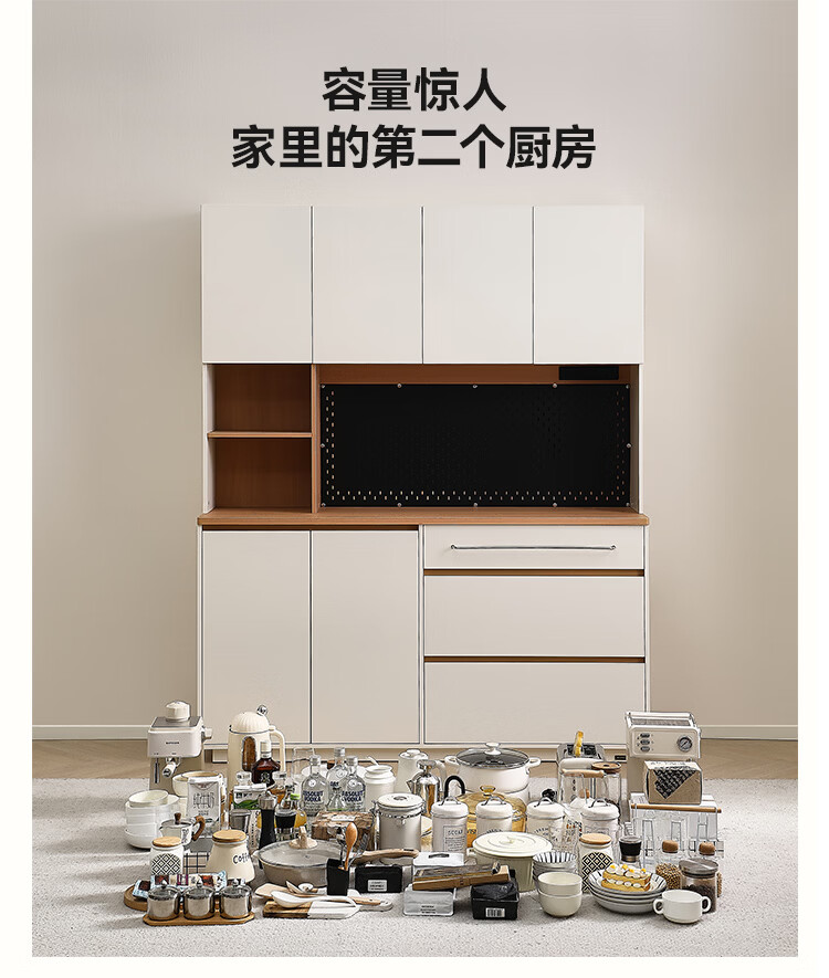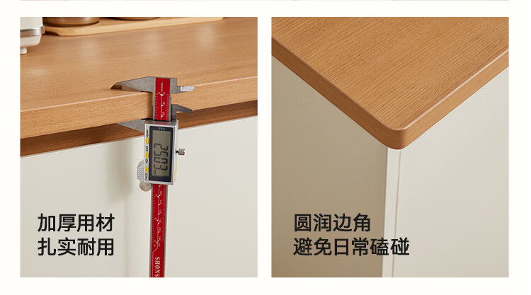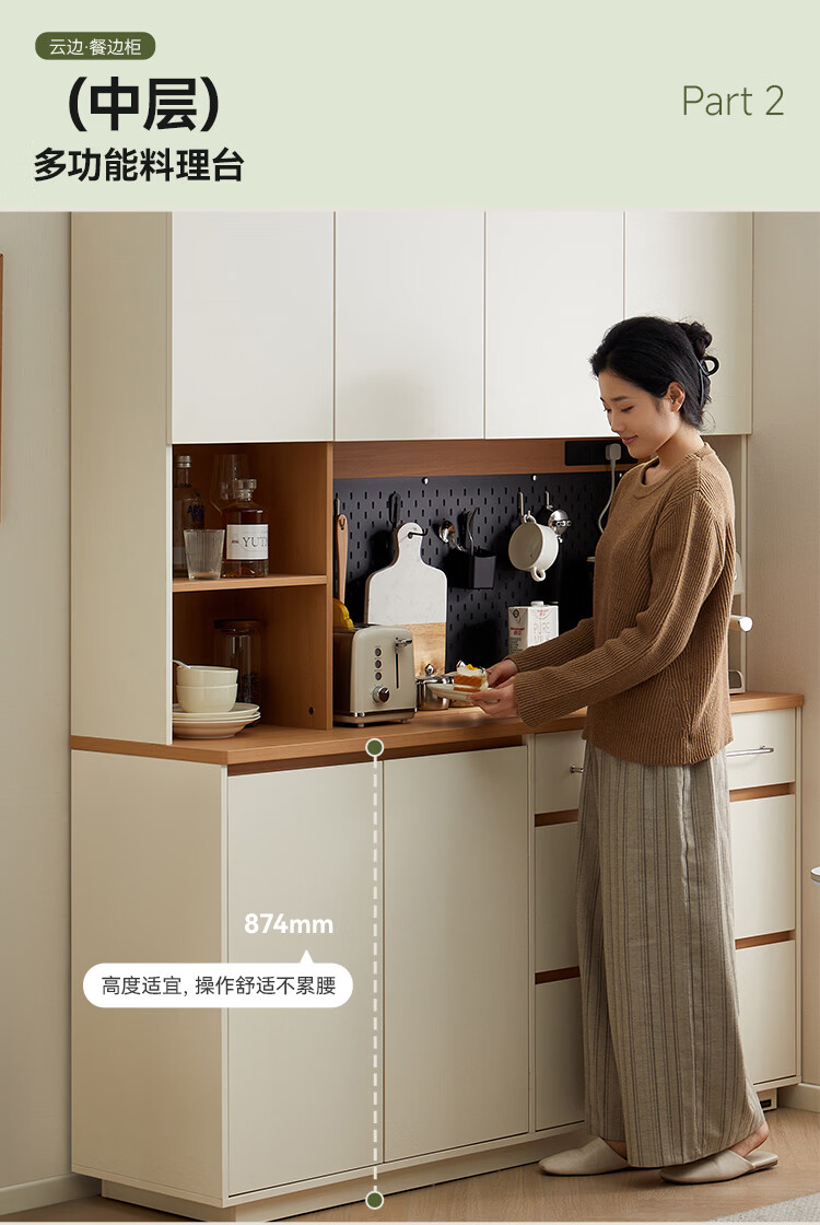 全友家居奶油风餐边柜厨房多功能操作台置物架茶吧机收纳储物小柜子 【原木色+奶油白】餐边柜
