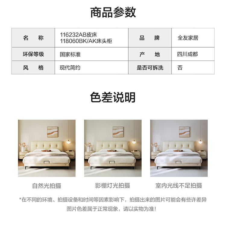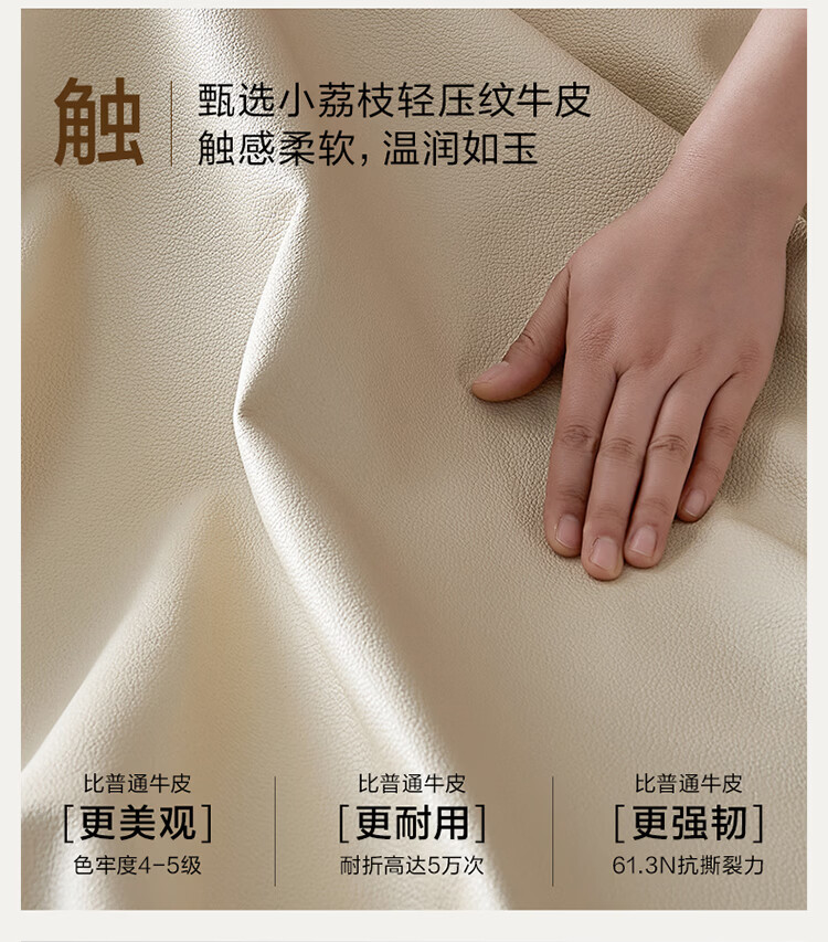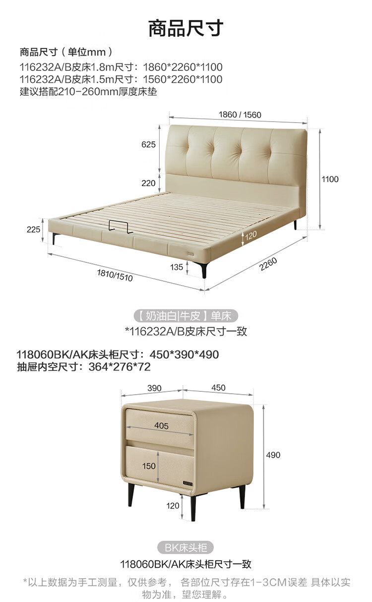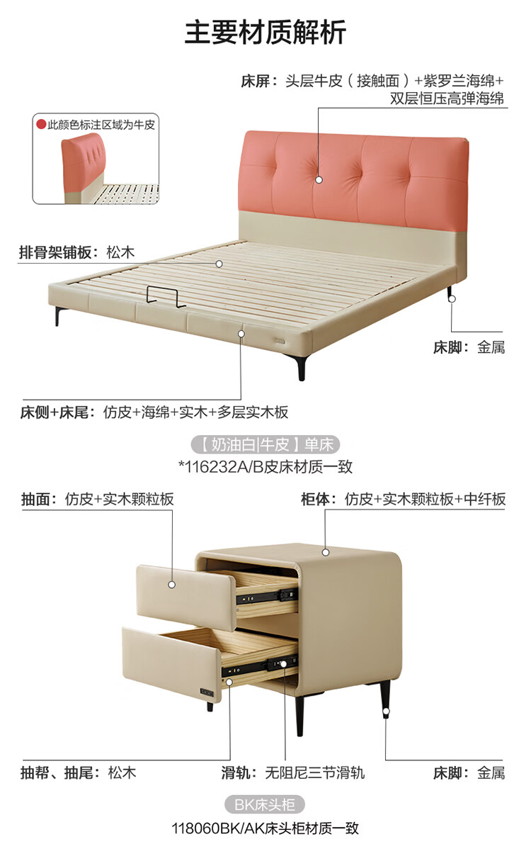 全友家居现代简约头层牛皮2026新款真皮床主卧室高脚双人床和床垫组合 【牛皮 | 奶油白】高脚款 1.8米x2米 床+床头柜*2