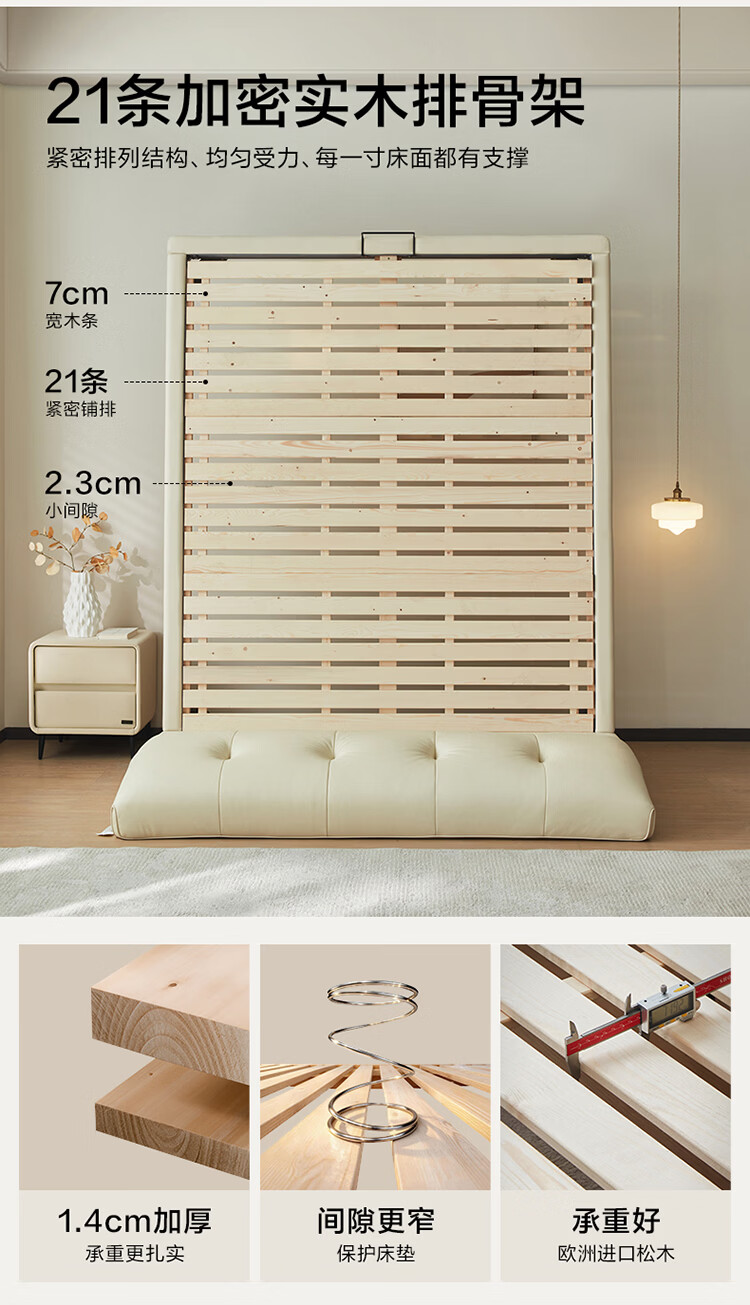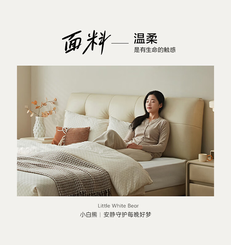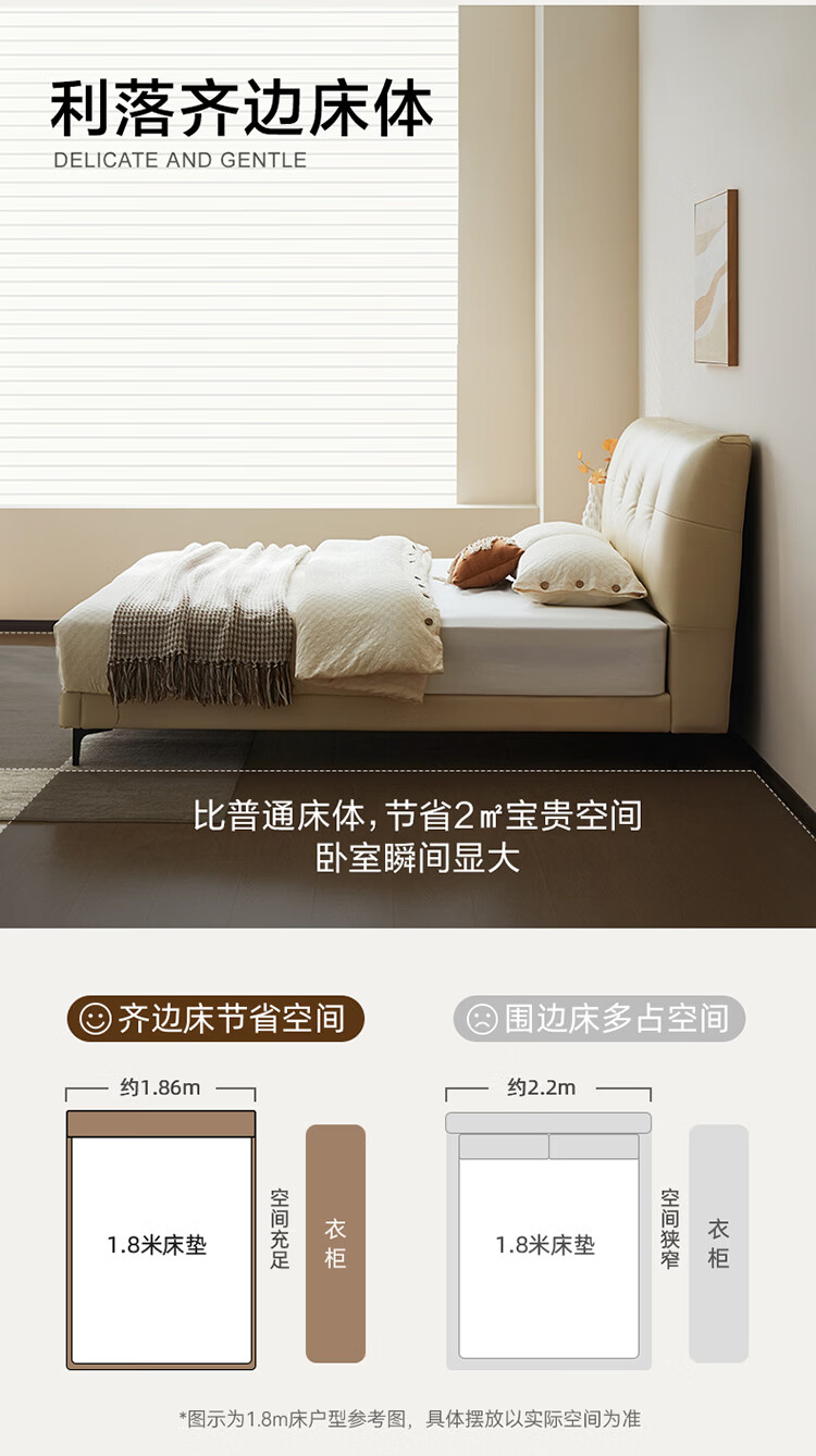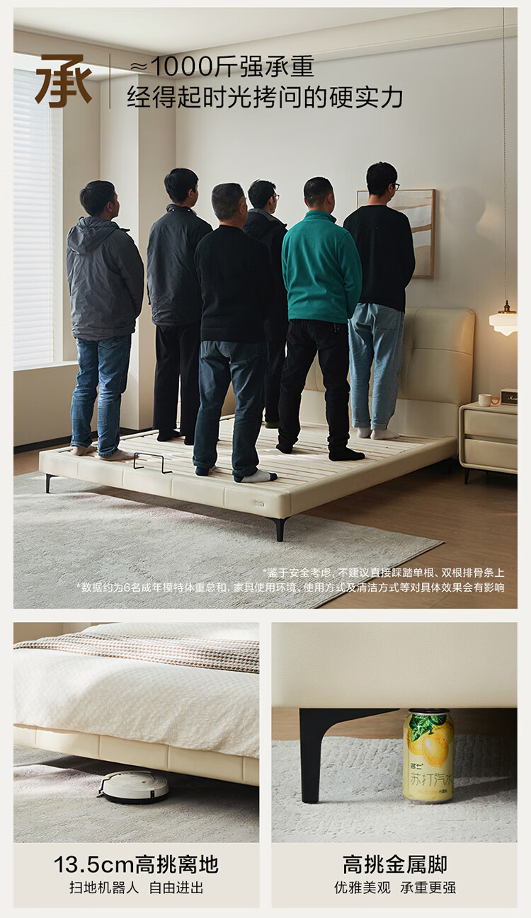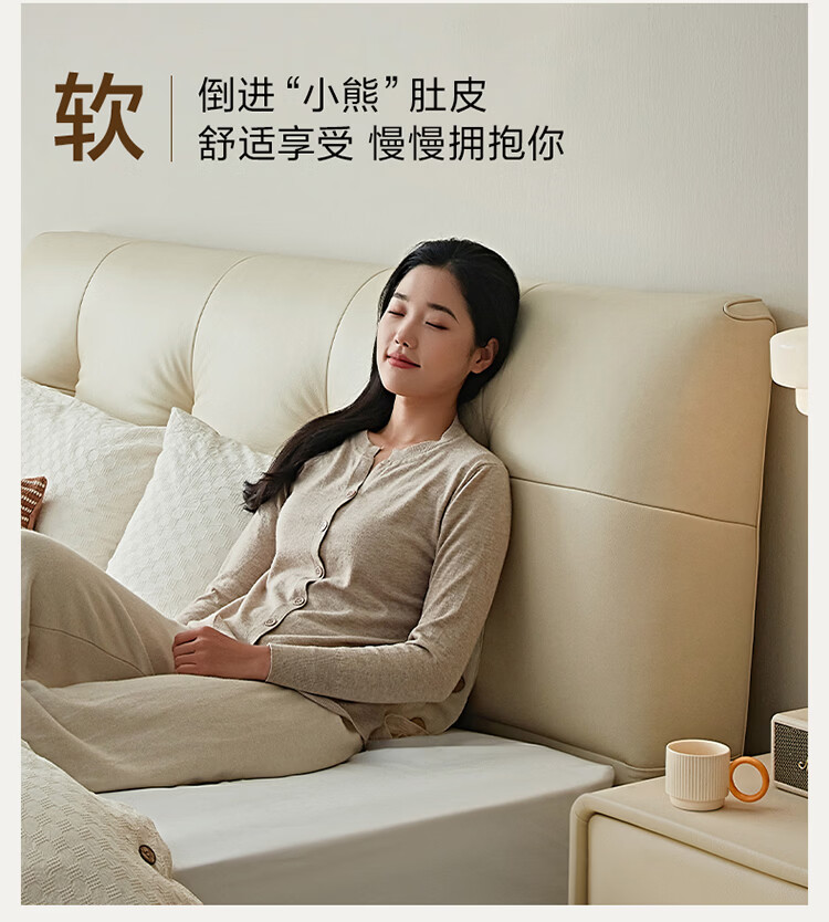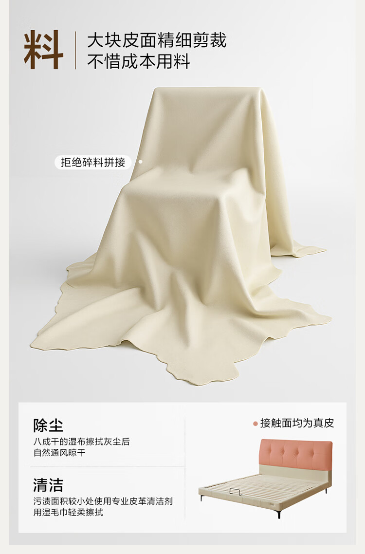 CBD家居现代简约真皮软包床双人主卧大床奶油风婚床头层牛皮甜心悬浮 甜心悬浮-奶油白单床 卷帘排骨架 1500*2000