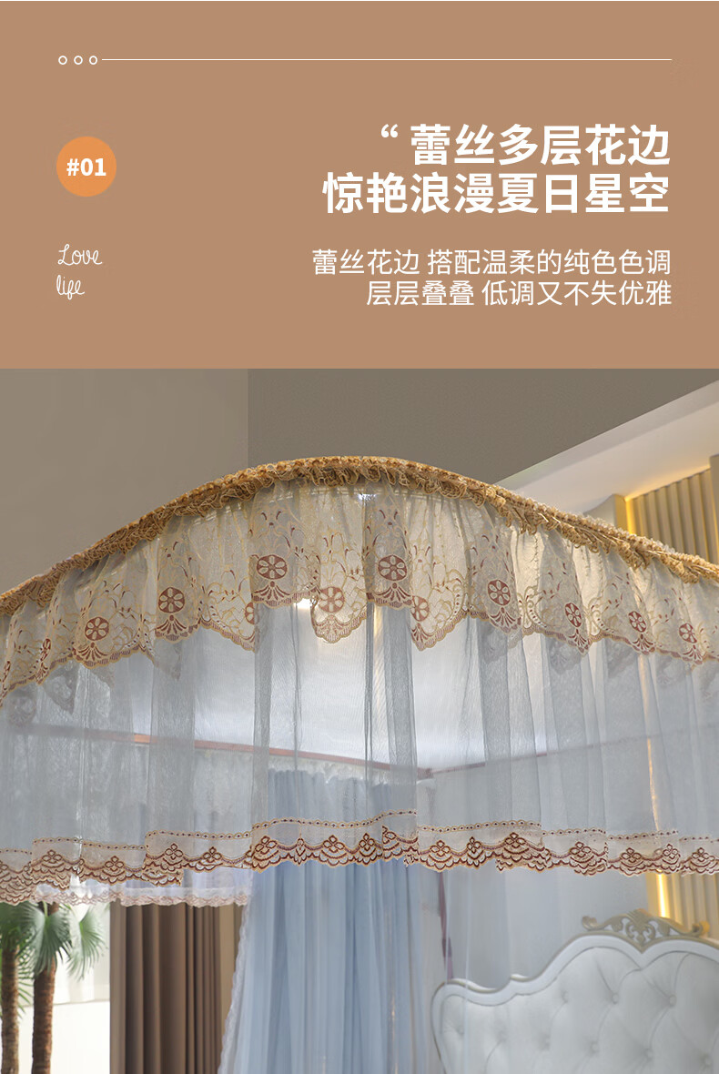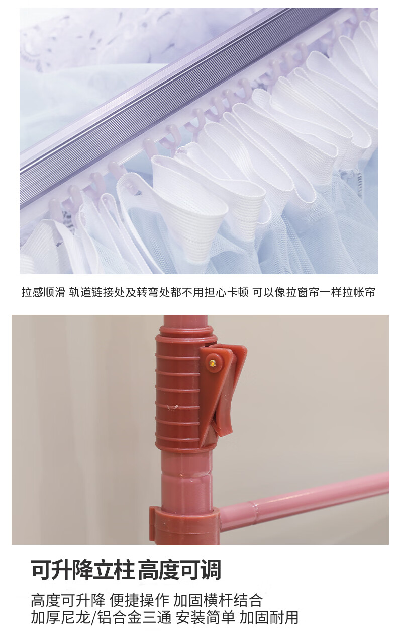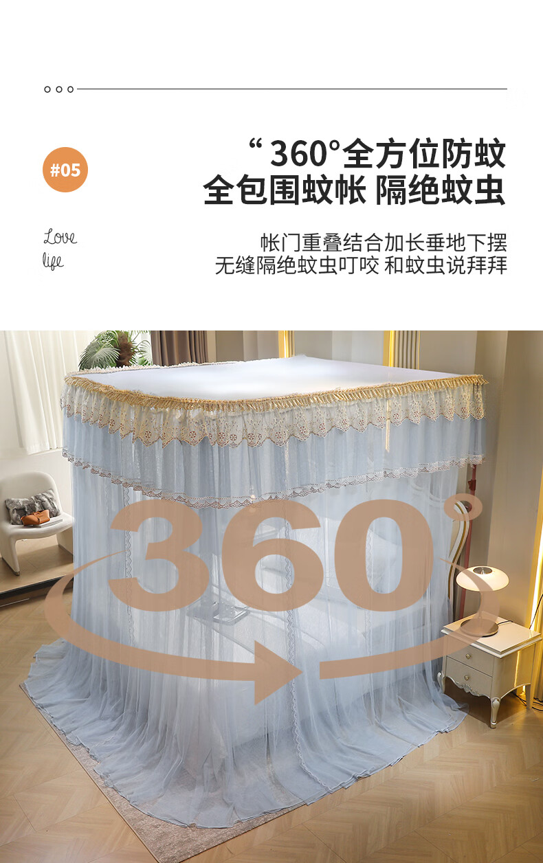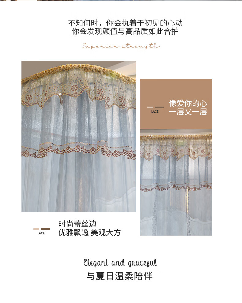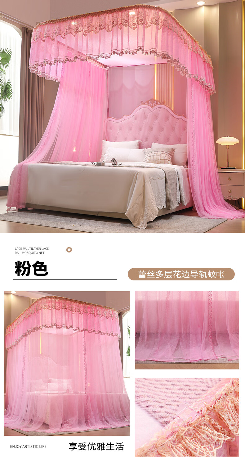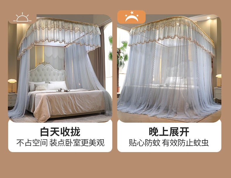 无印良品公主风u型导轨蚊帐1.8x2米家用高级感伸缩一体式防蚊床上落地蚊帐 蓝灰【加密帐纱+加粗支架】 120cm*200cm*170cm 【尼龙弯头】