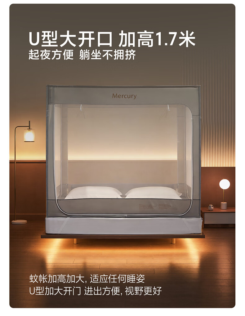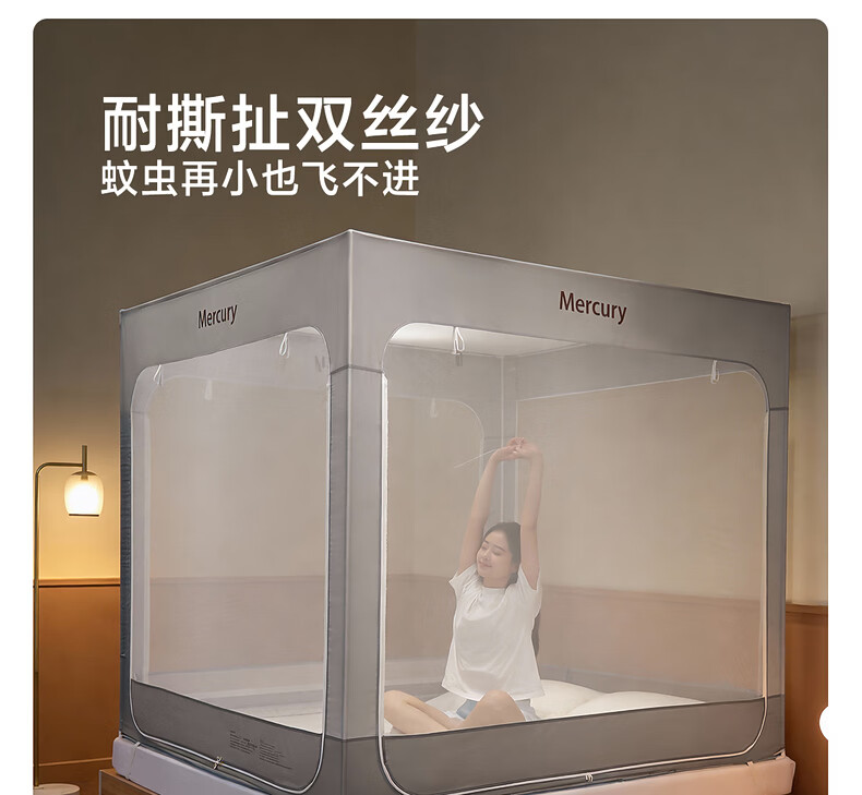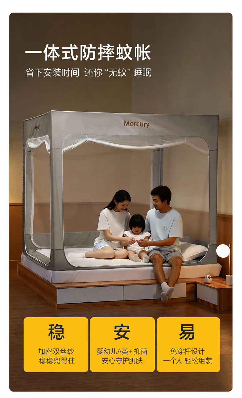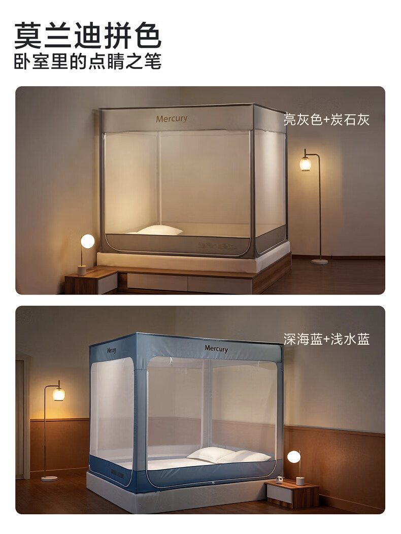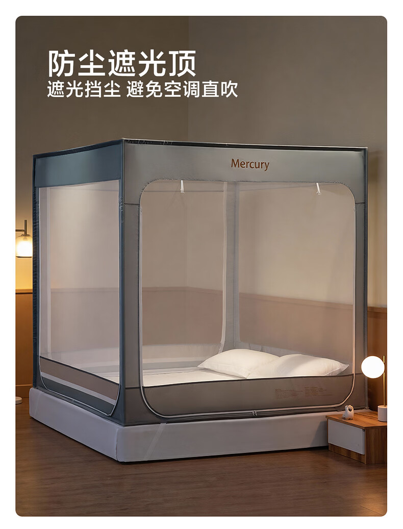 水星家纺安柔星境一体式防摔蚊帐 安柔星境一体式防摔蚊帐(海蓝色) 150cm*200cm*170cm