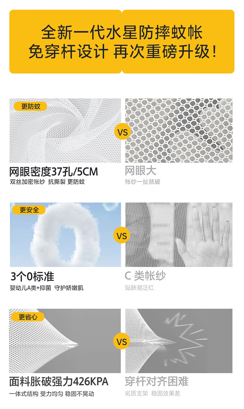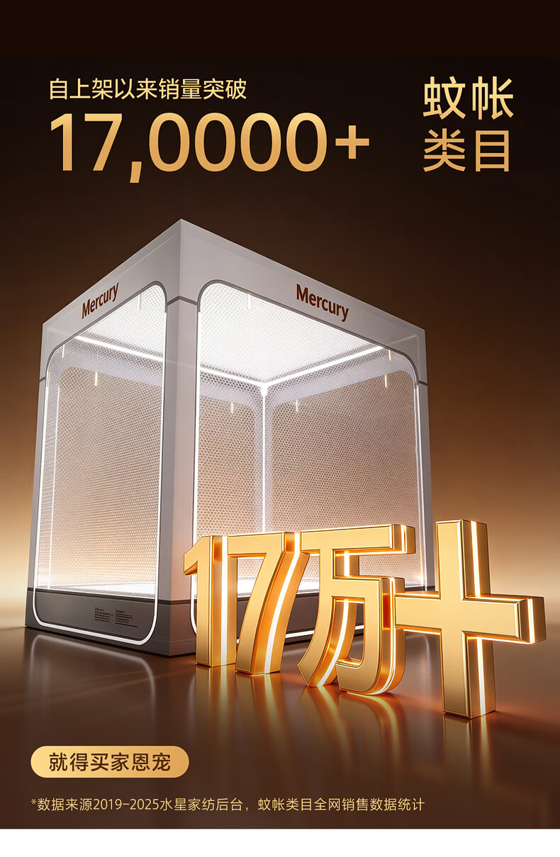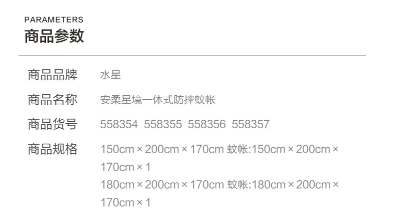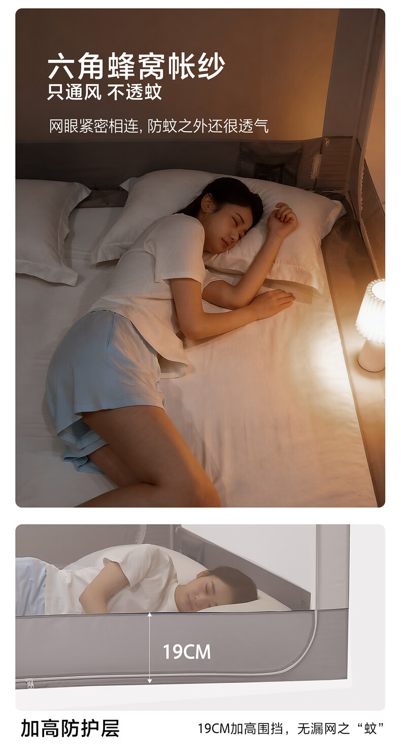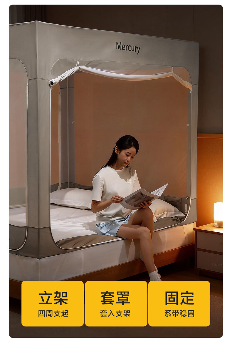 水星家纺安柔星境一体式防摔蚊帐 安柔星境一体式防摔蚊帐(海蓝色) 150cm*200cm*170cm