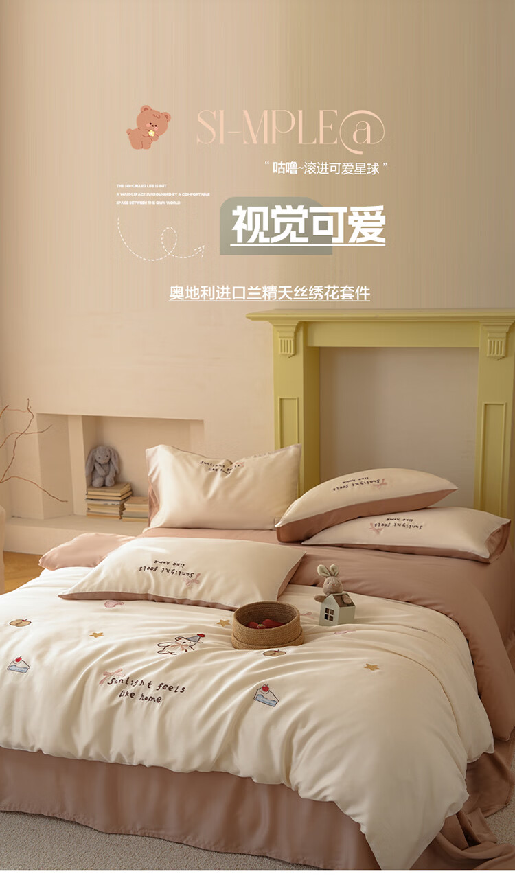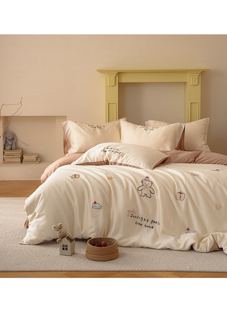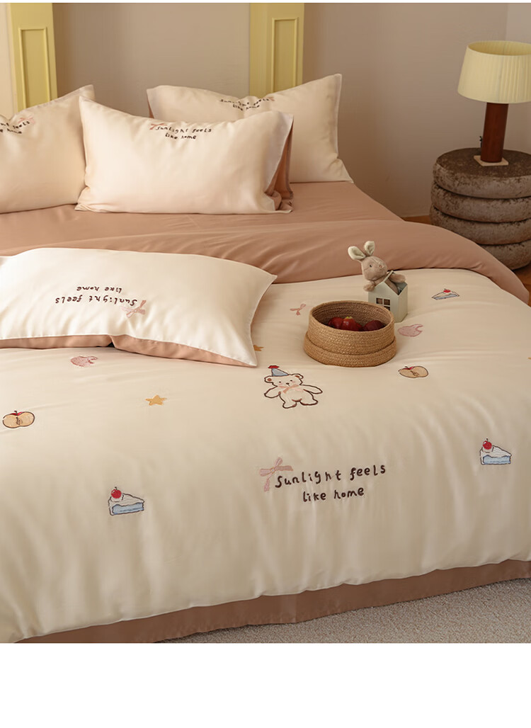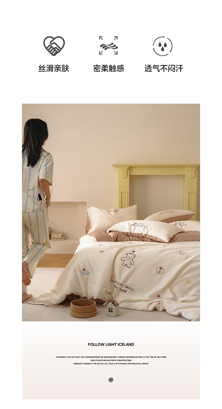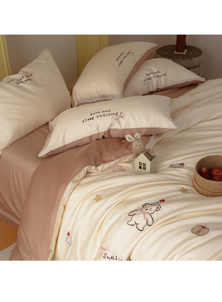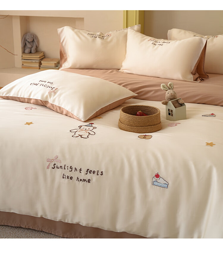 ROLAND LIVE夏季兰精天丝四件套可爱风刺绣被套床单丝滑透气床上用品三件套 JCZY 天丝刺绣套件-爱心小熊 1.2米床 床单款 【被套150*200cm】