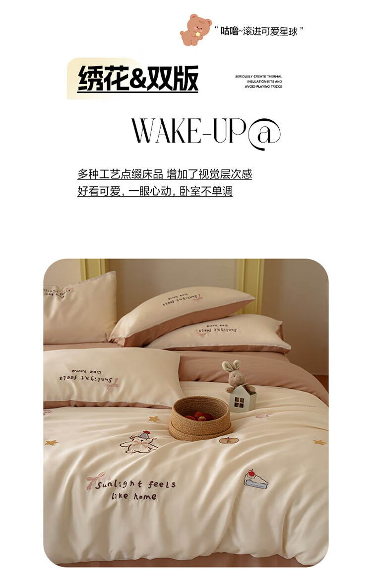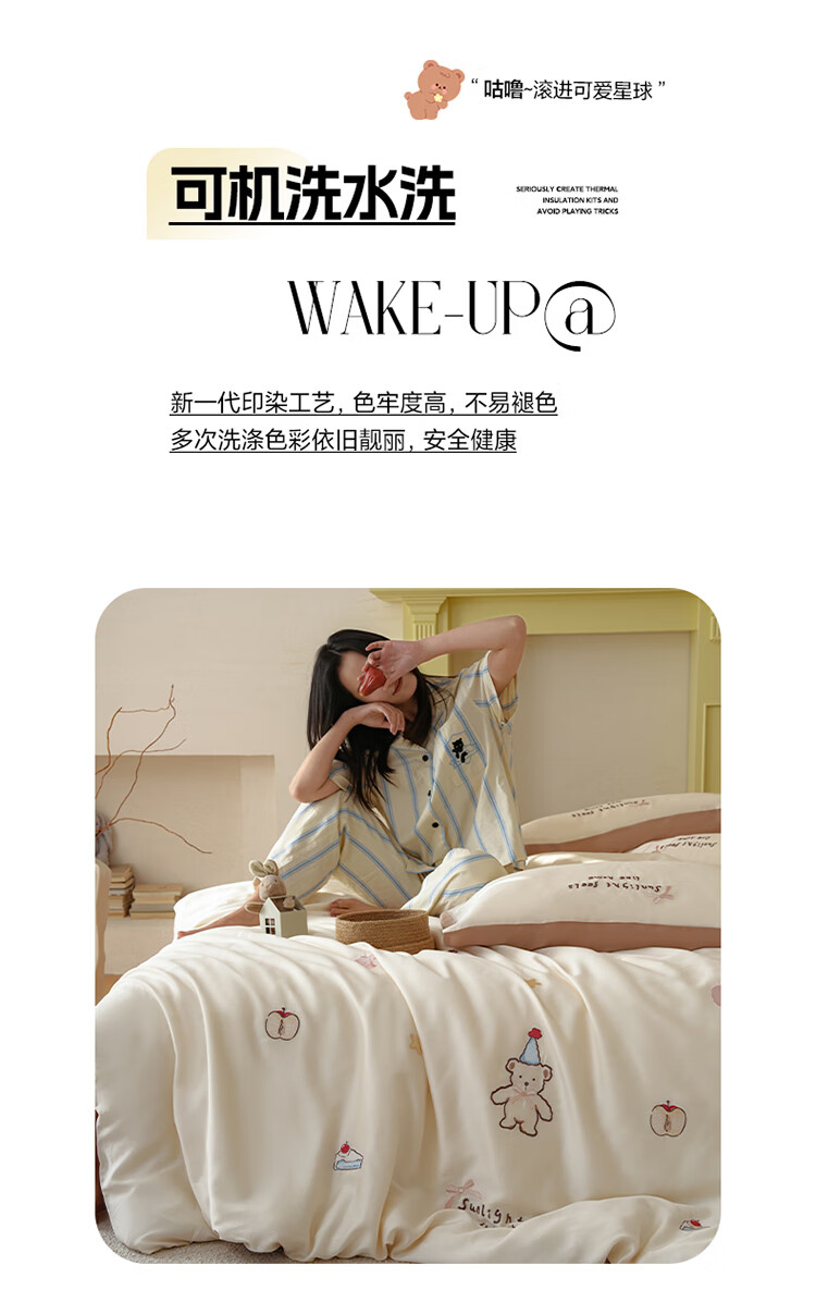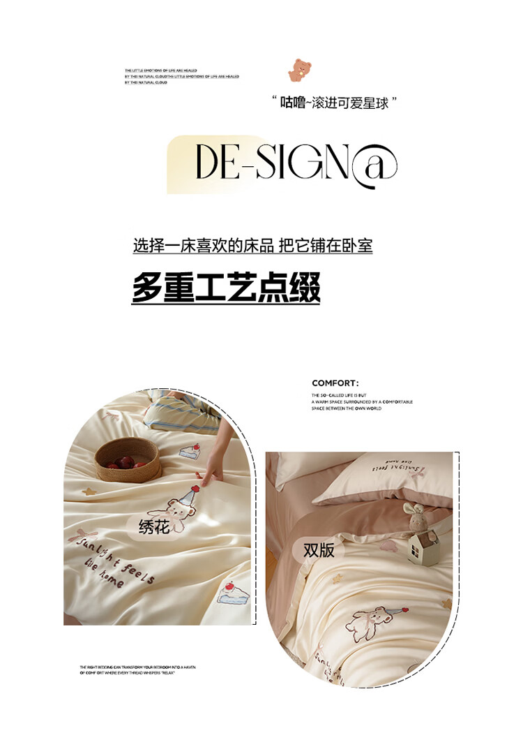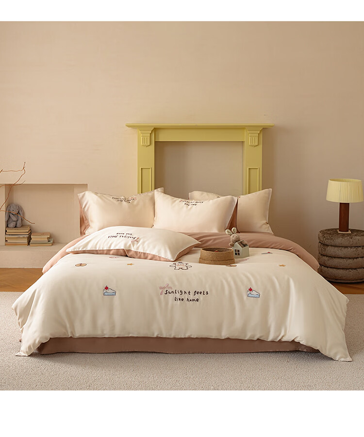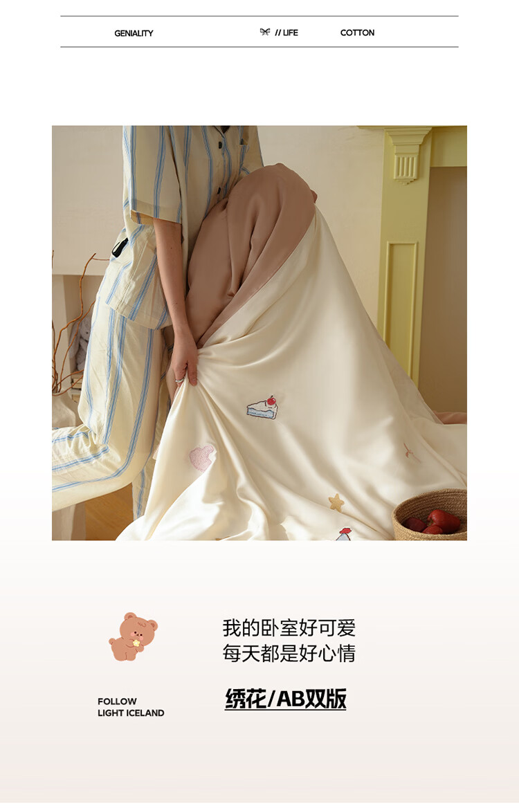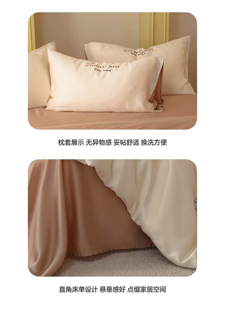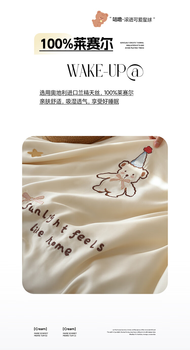ROLAND LIVE夏季兰精天丝四件套可爱风刺绣被套床单丝滑透气床上用品三件套 JCZY 天丝刺绣套件-爱心小熊 1.2米床 床单款 【被套150*200cm】