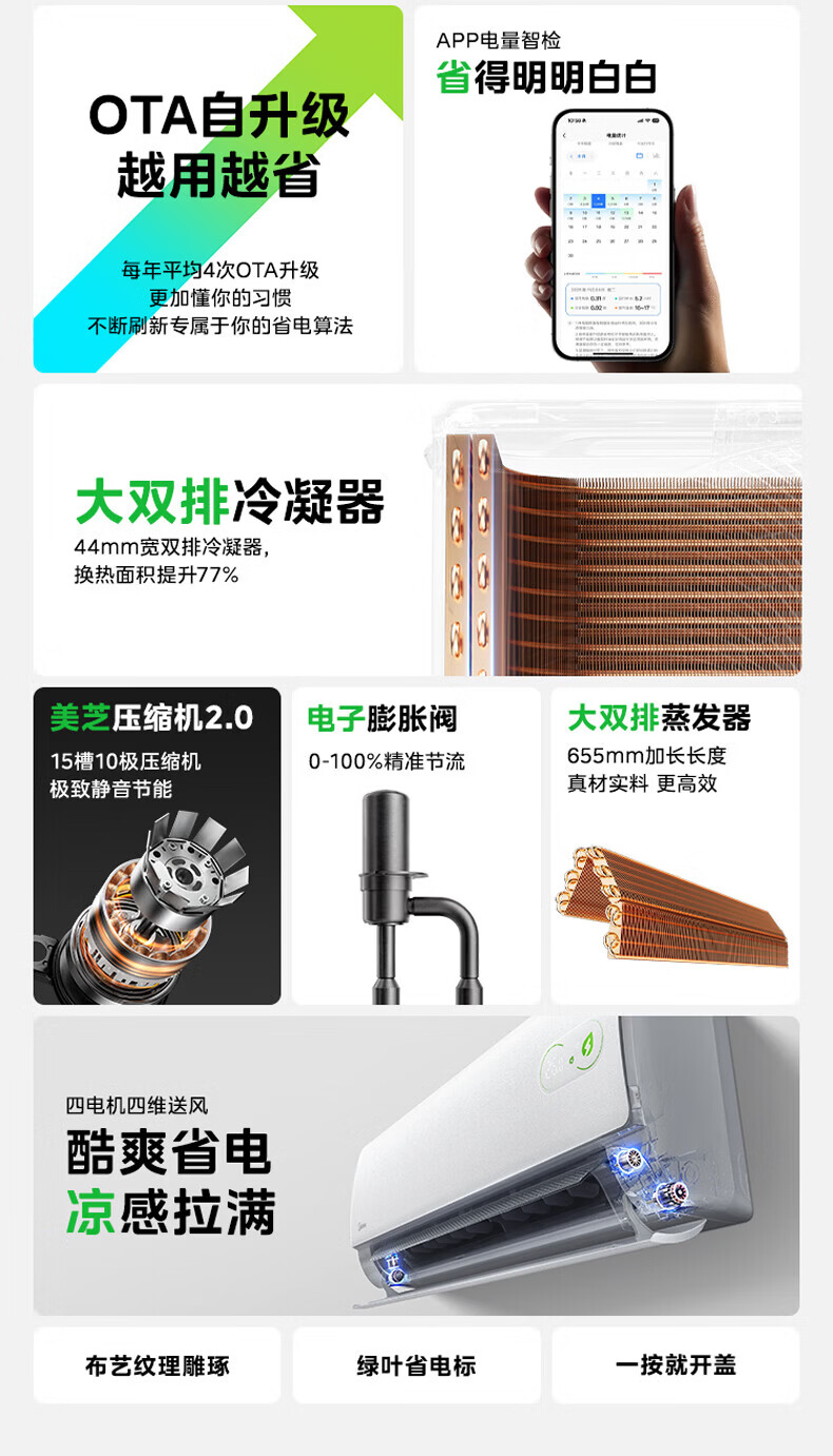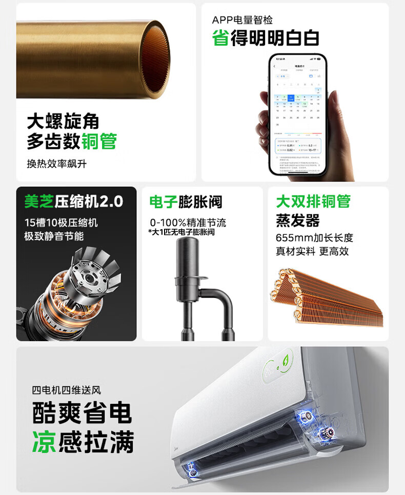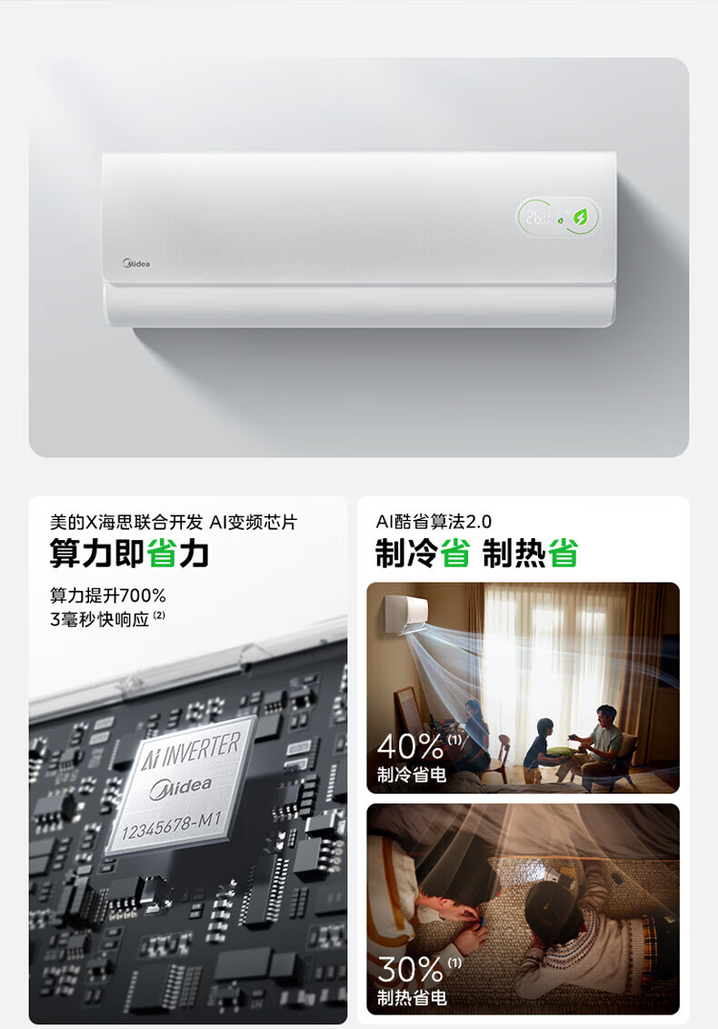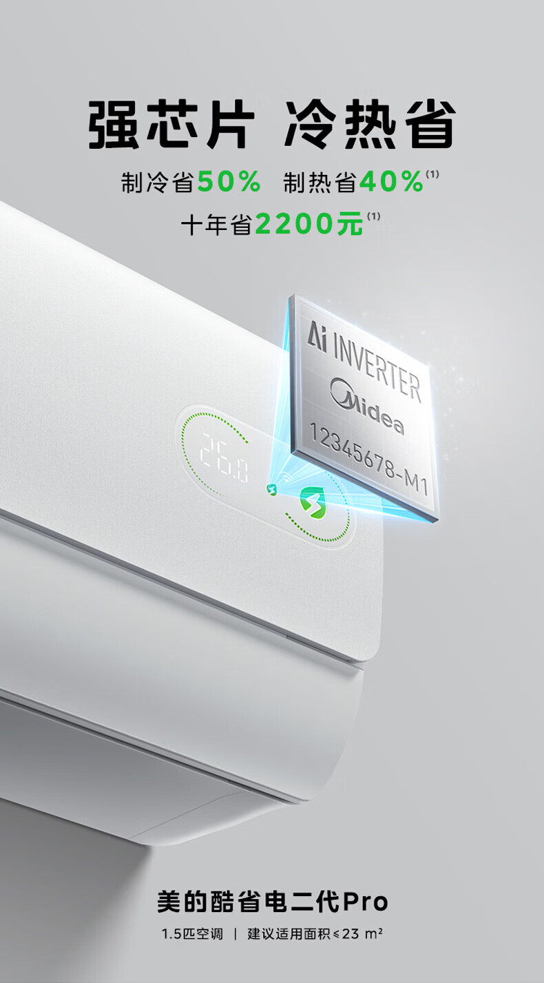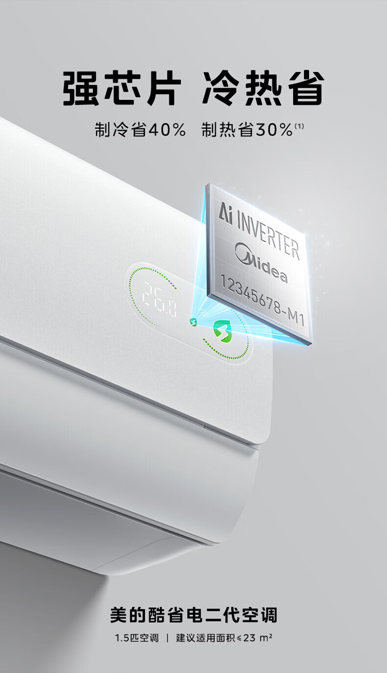 美的(Midea)空调1.5匹挂机 酷省电二代 新一级能效变频冷暖节能省电防直吹 壁挂式空调 以旧换新 国家补贴 酷省电 二代海思芯片 大1.5匹