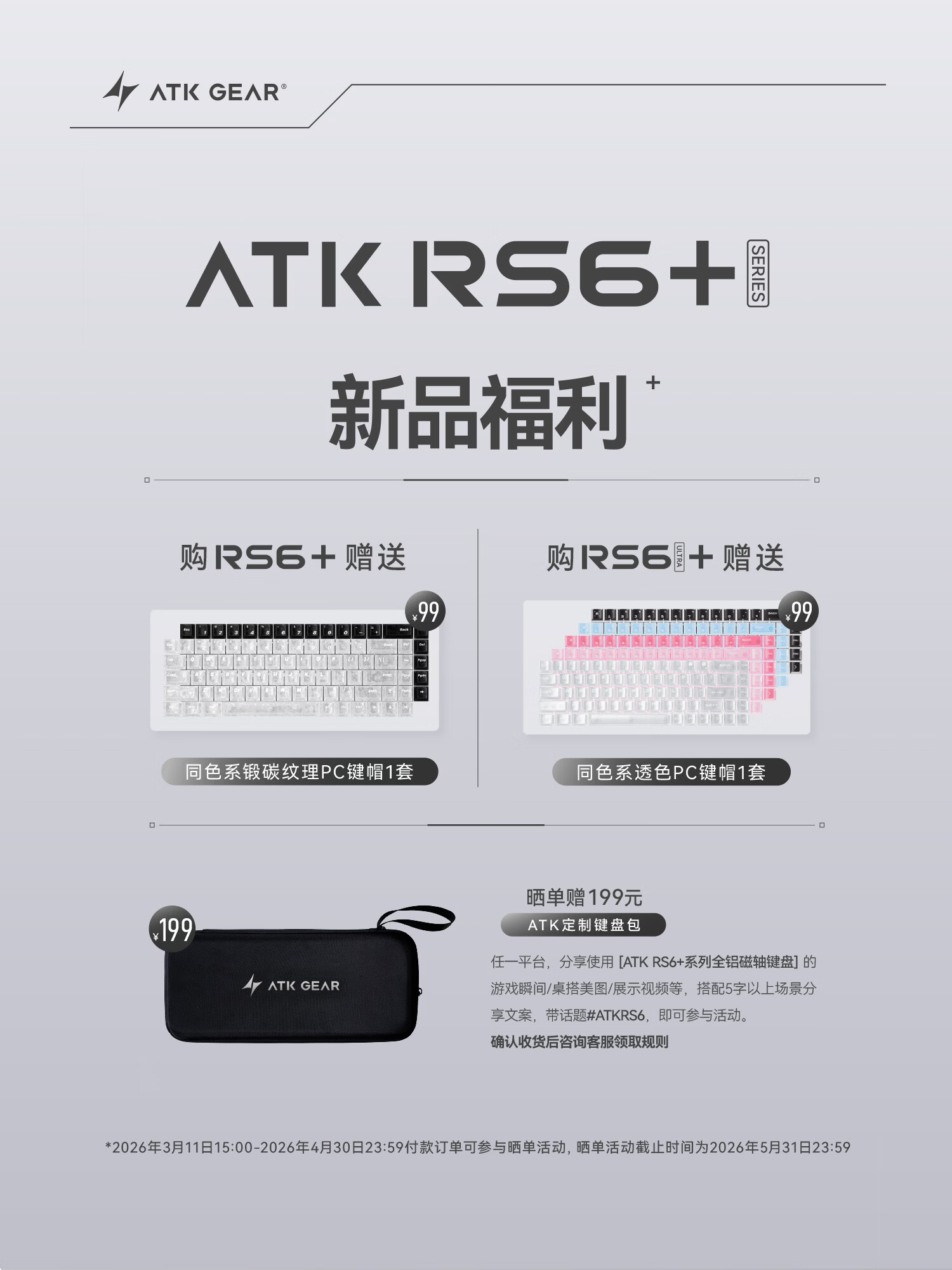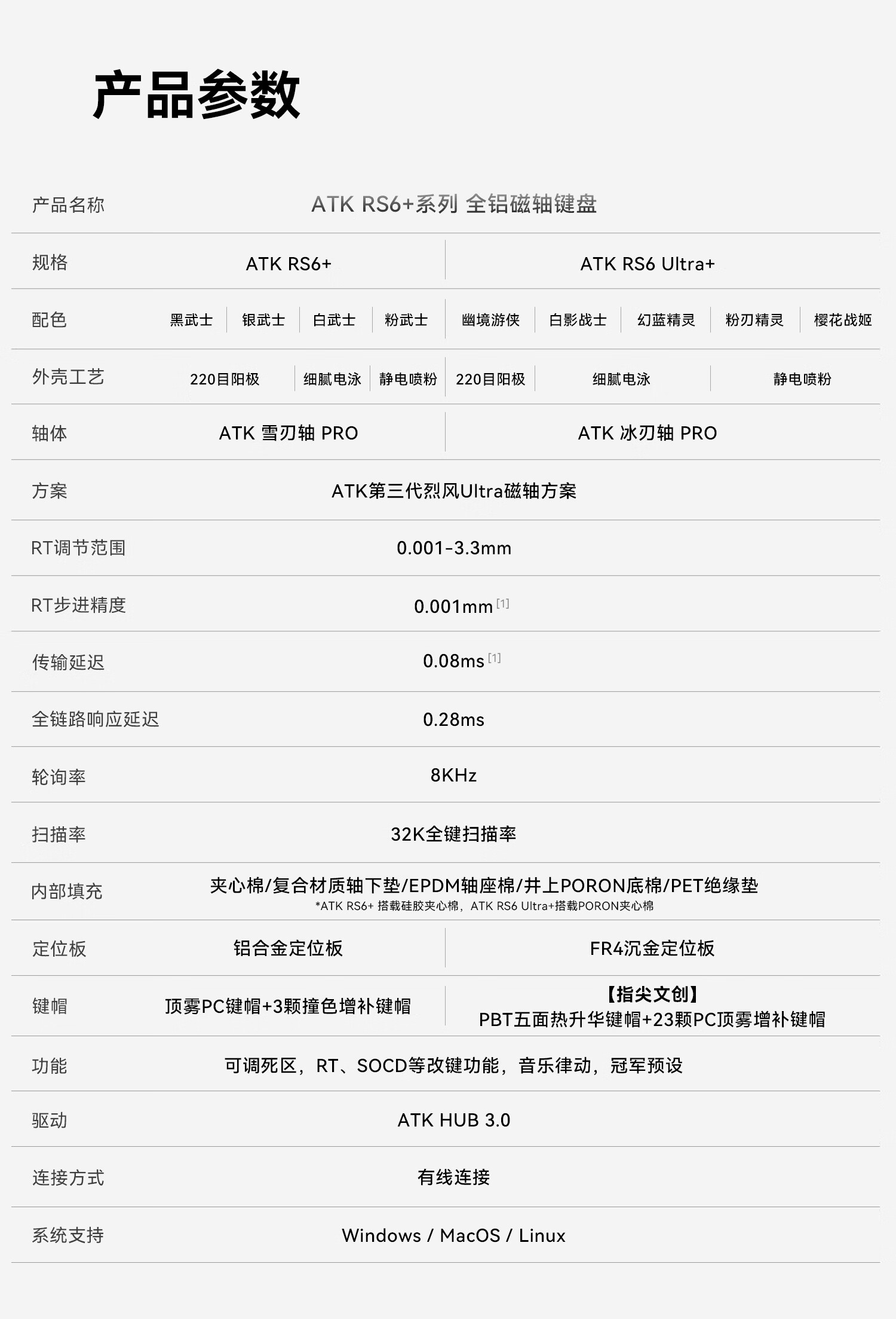 ATKRS6+磁轴键盘 客制化电竞游戏机械键盘有线全键热插拔办公三角洲68键 RS6Ultra+粉刃精灵冰刃轴Pro