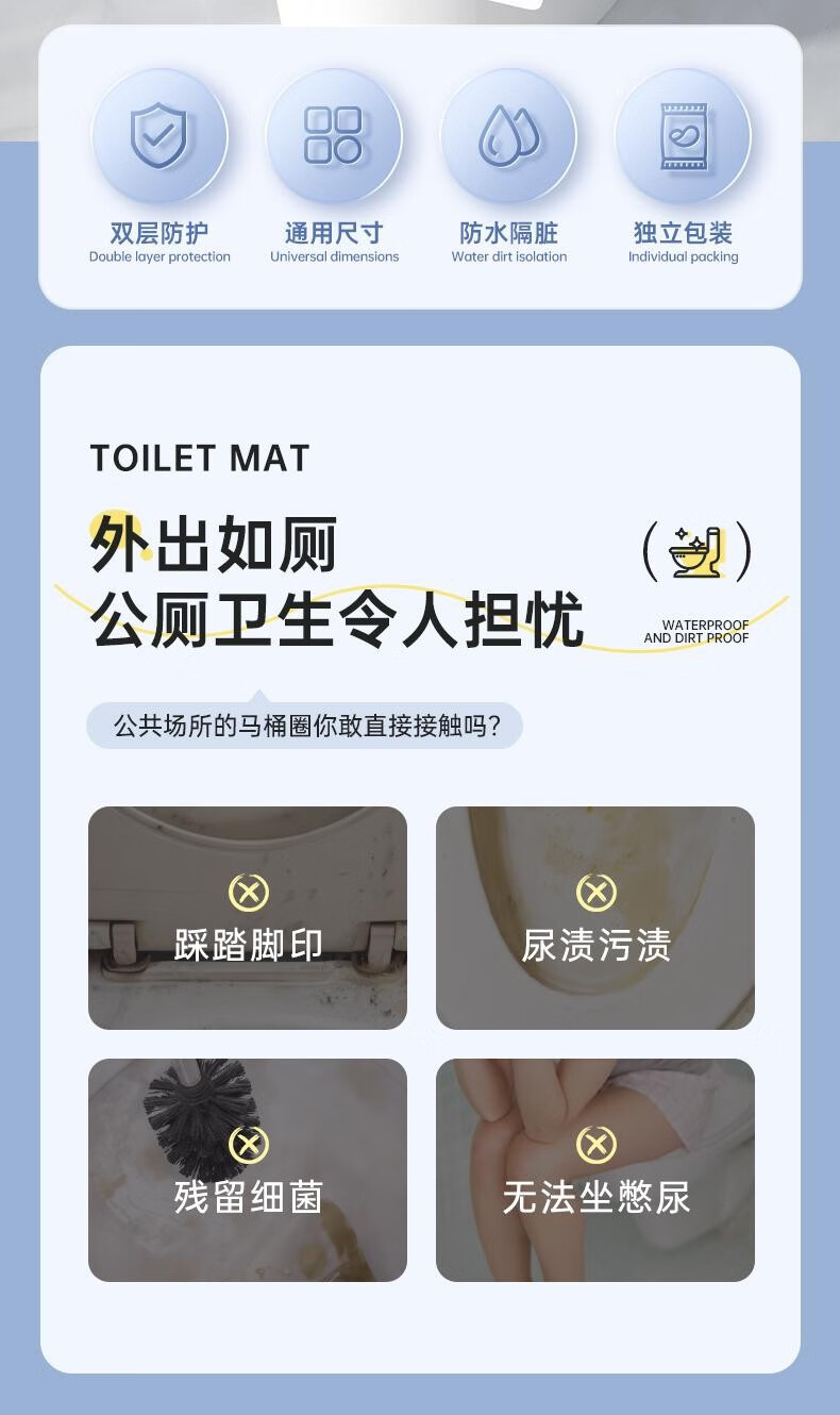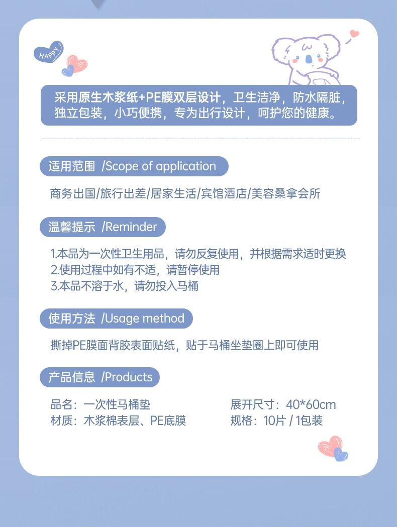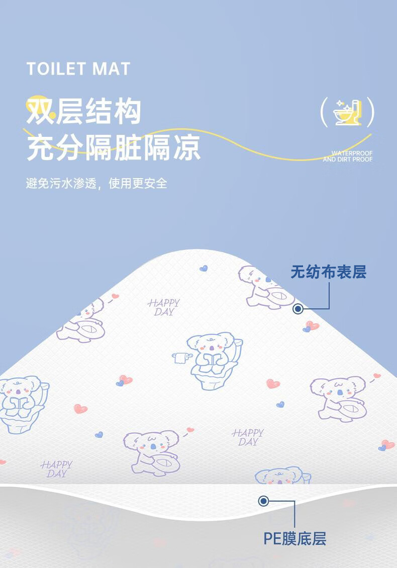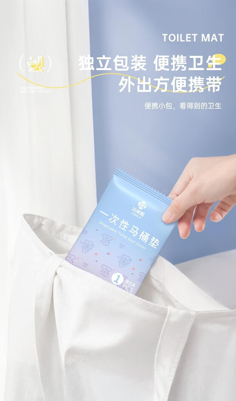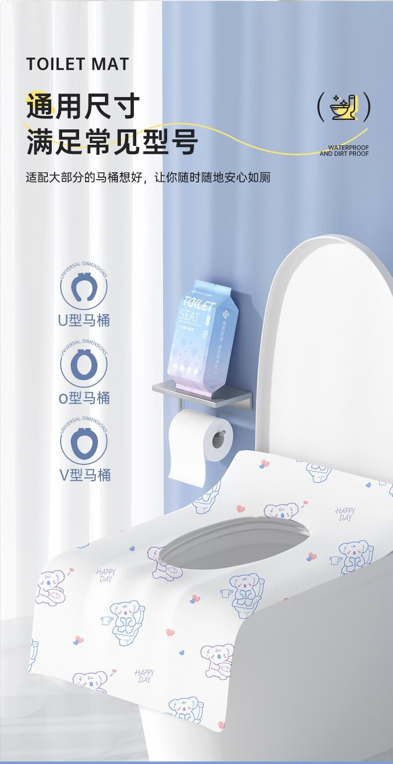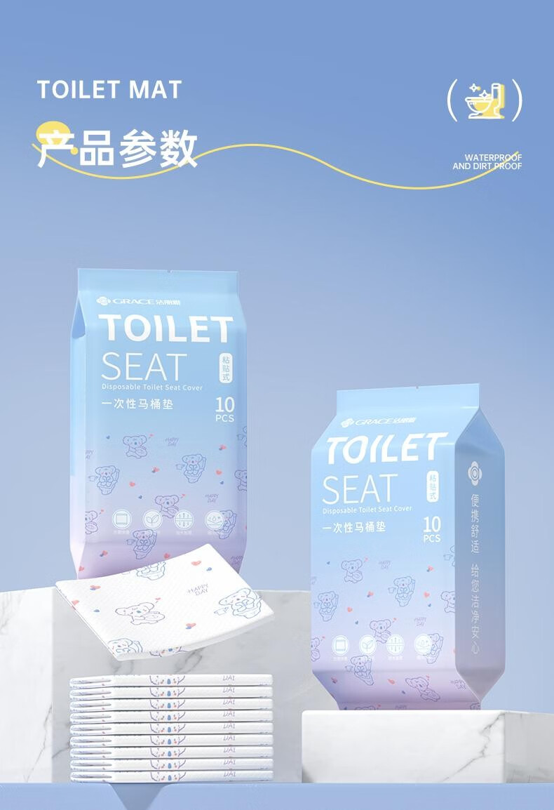 洁丽雅(Grace)一次性马桶垫20片印花款坐便垫旅行旅游坐垫纸