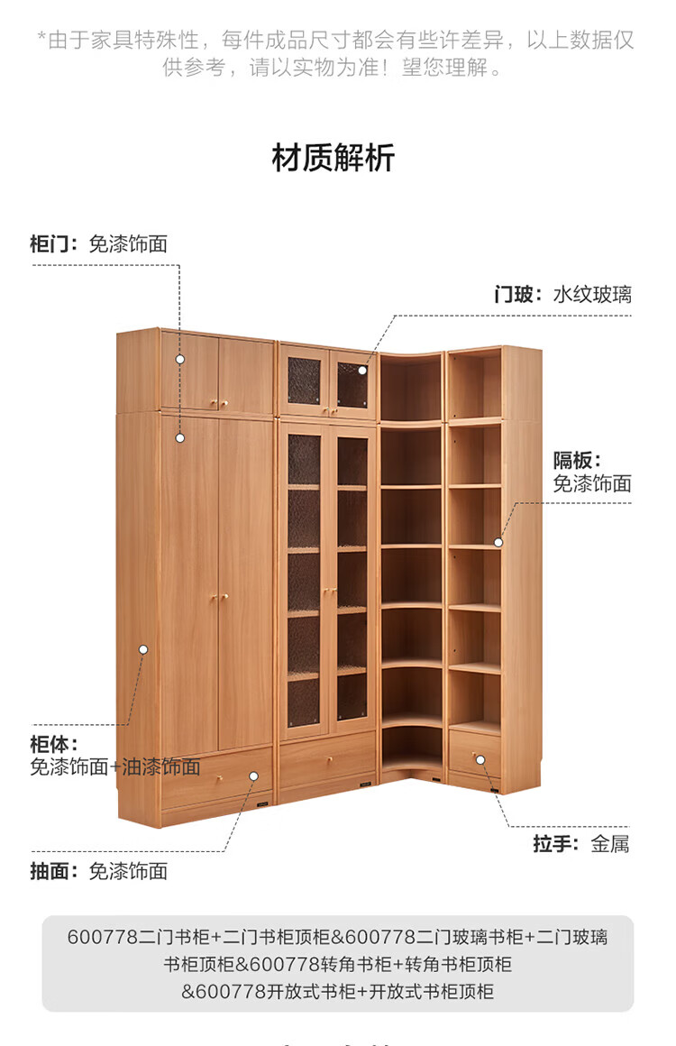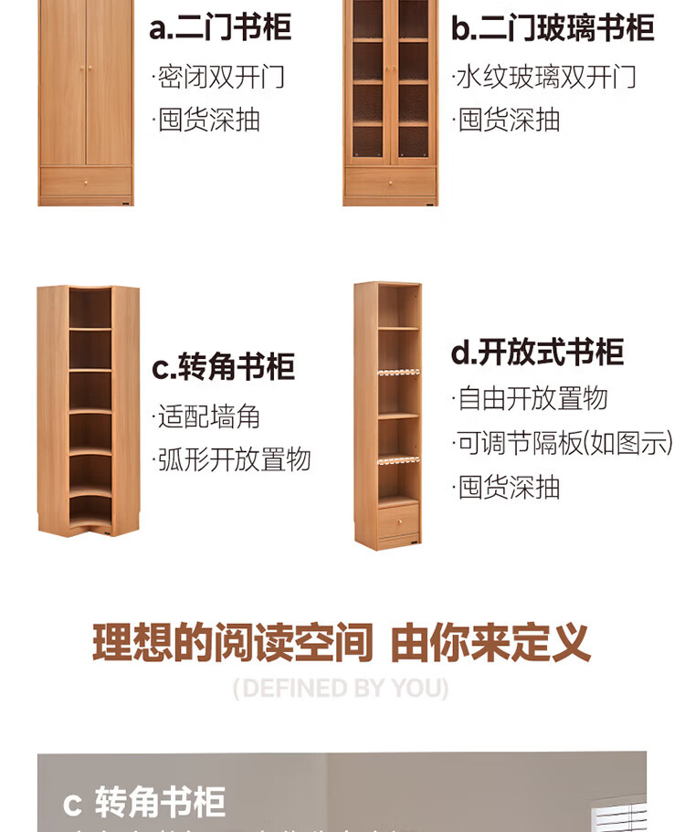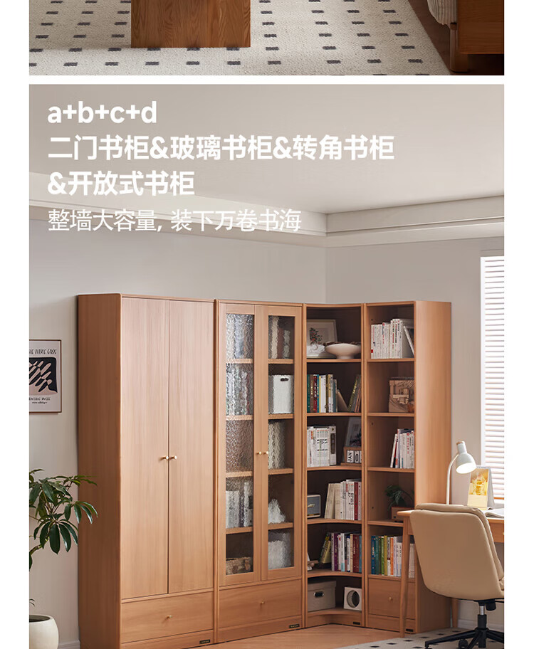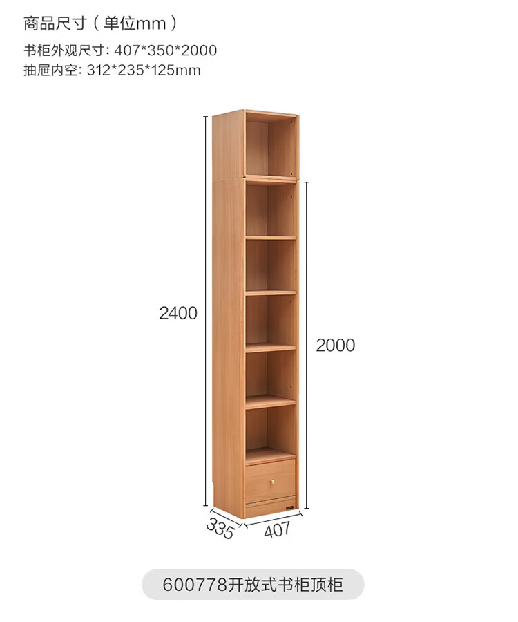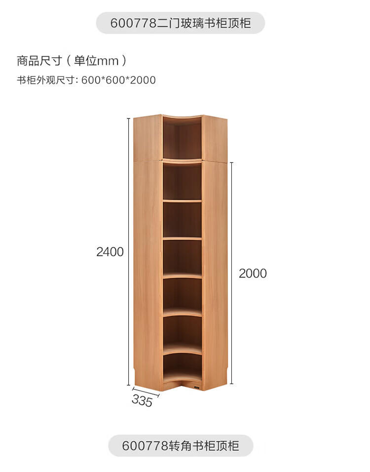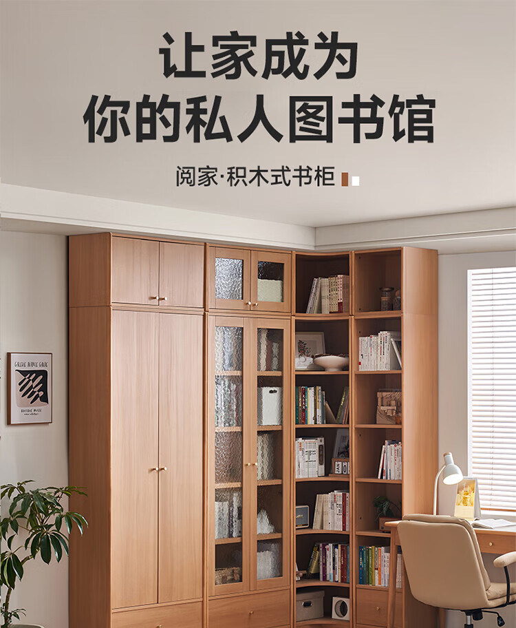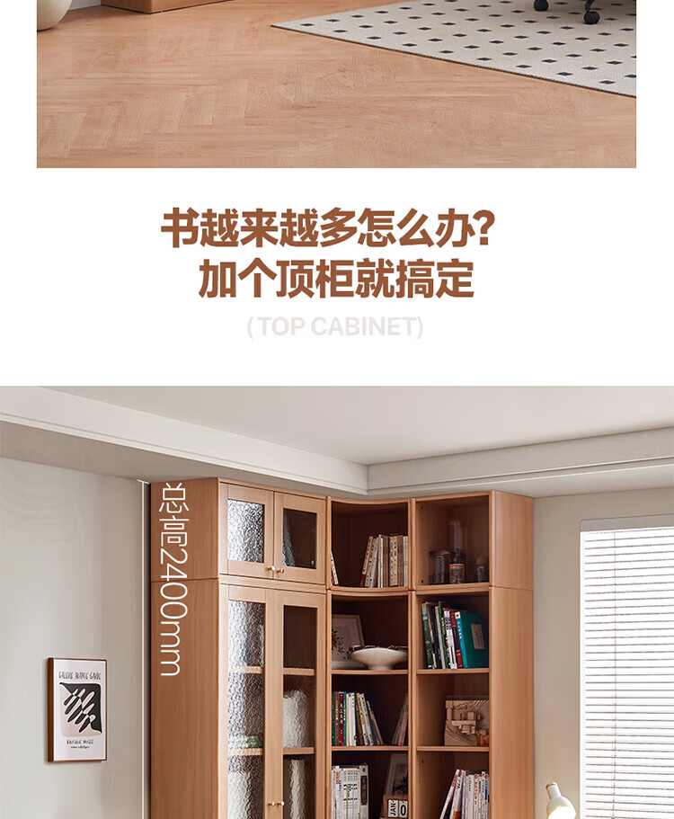 全友(QUANU)【迷瞪清仓货盘】组合书柜落地收纳储物柜一体靠墙转角书柜玻璃柜 【原木色】0.4米开放式书柜+顶柜
