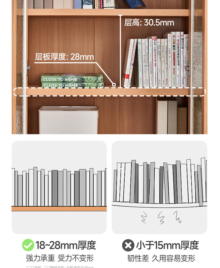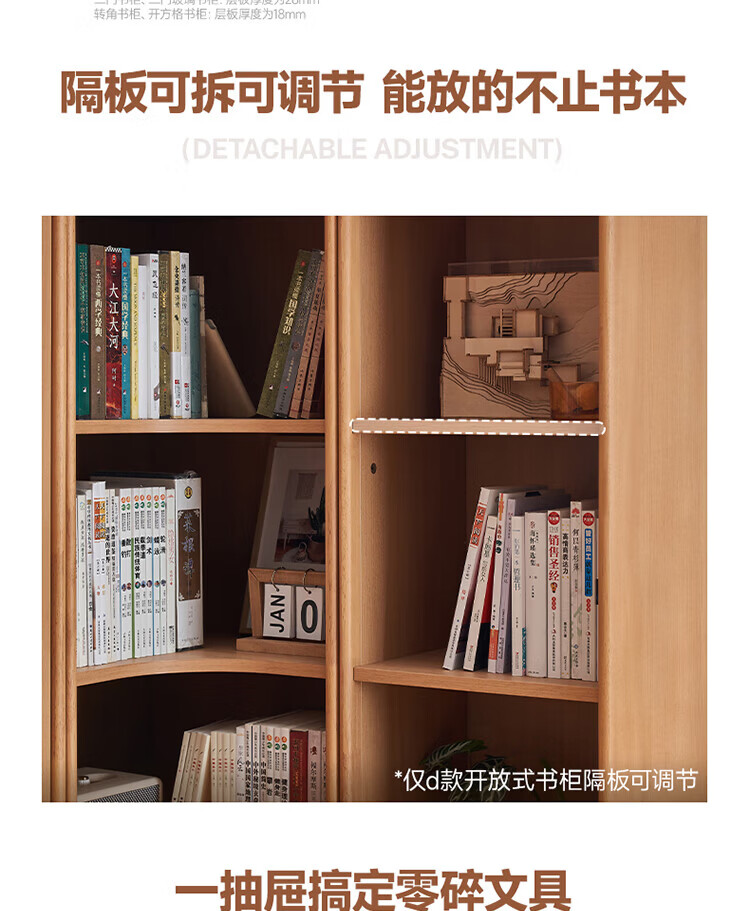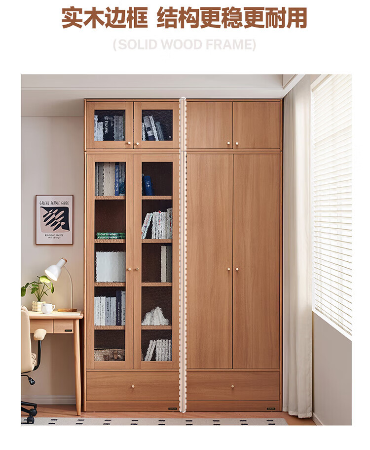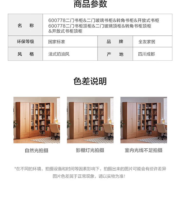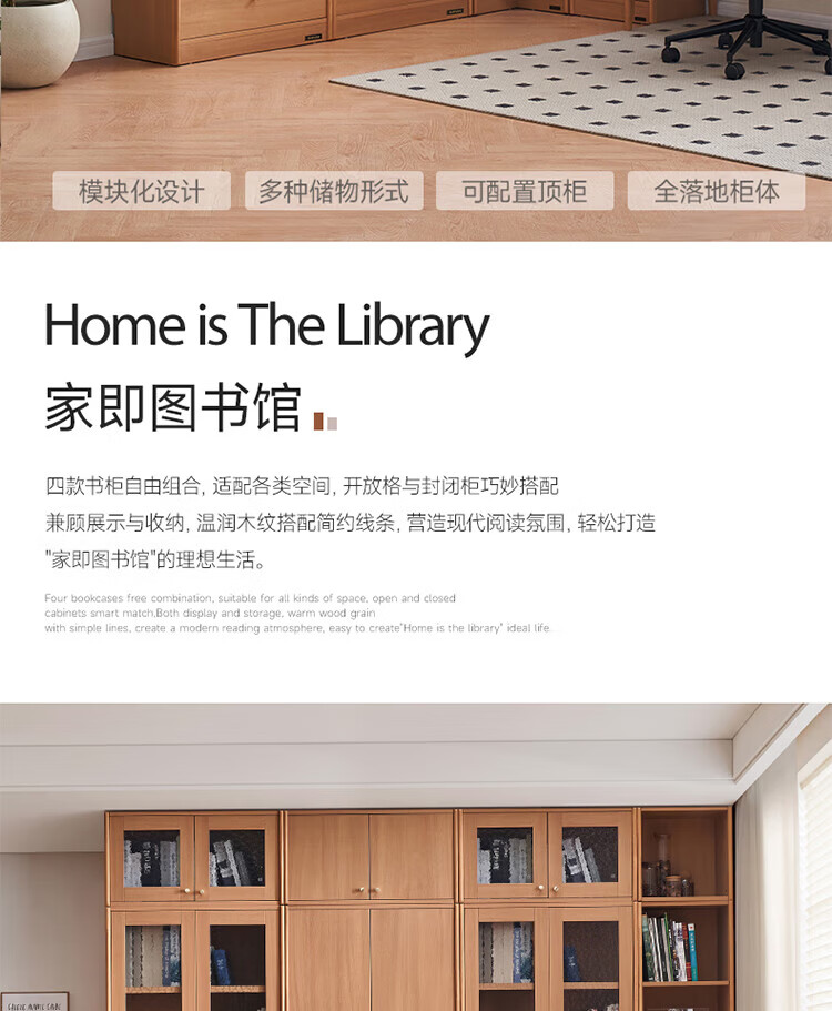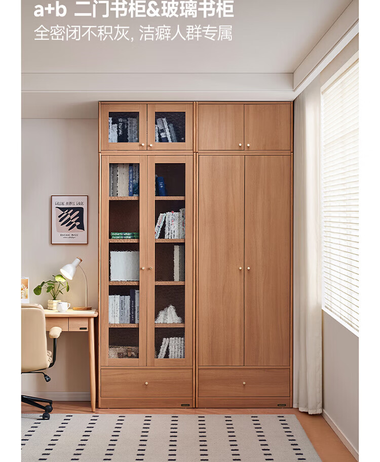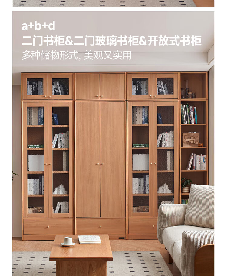 全友(QUANU)【迷瞪清仓货盘】组合书柜落地收纳储物柜一体靠墙转角书柜玻璃柜 【原木色】0.4米开放式书柜+顶柜