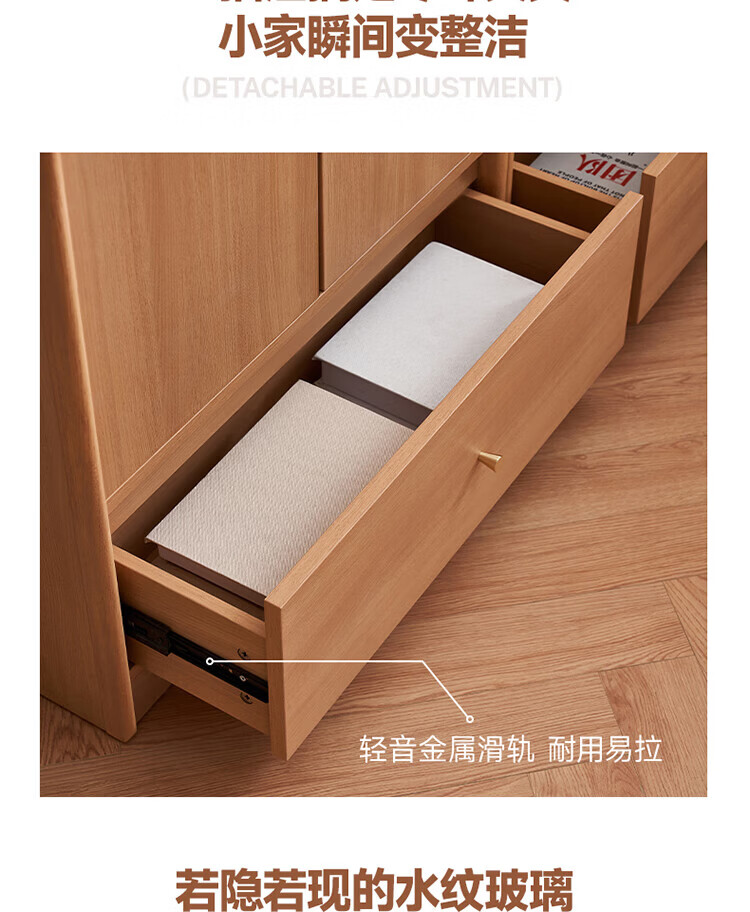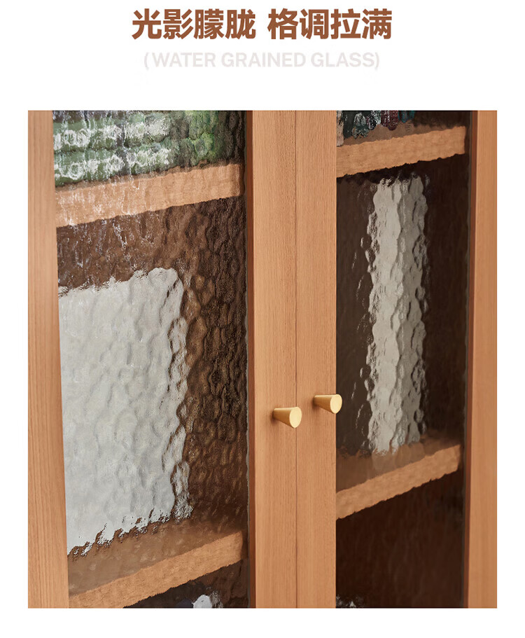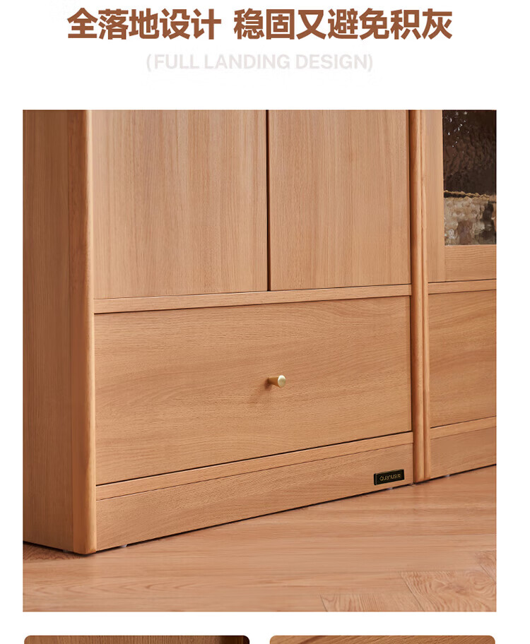 全友家居原木风实木餐边柜家用玻璃展示柜收纳储物小柜子沙发边柜KS 【樱桃木色|橡胶木】双门款餐边柜