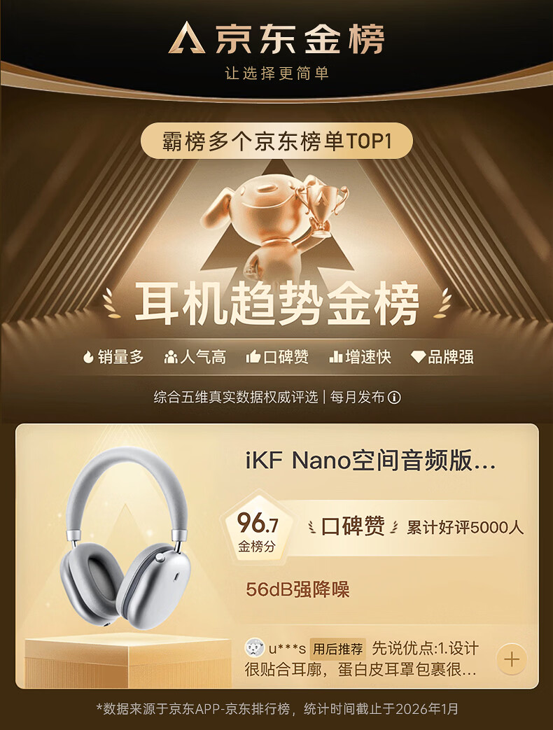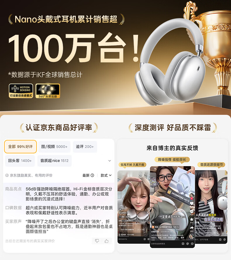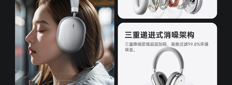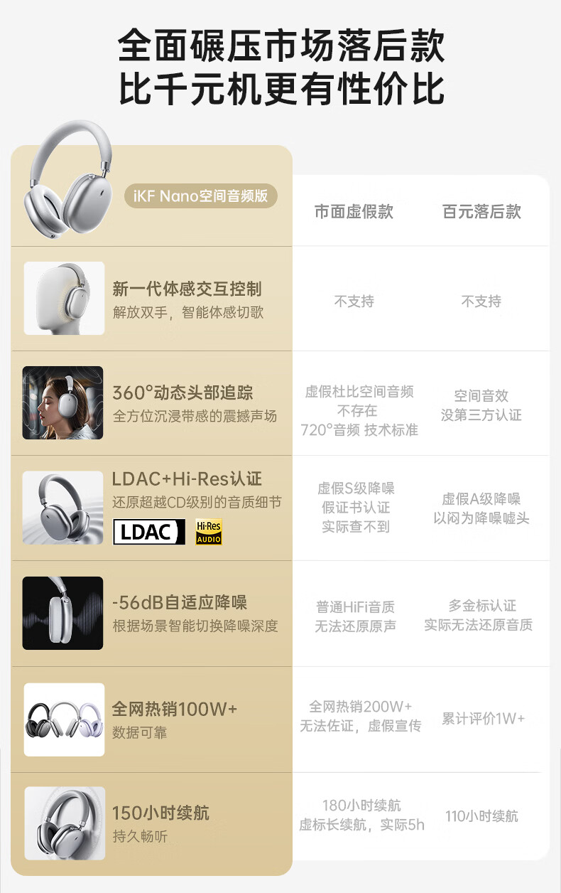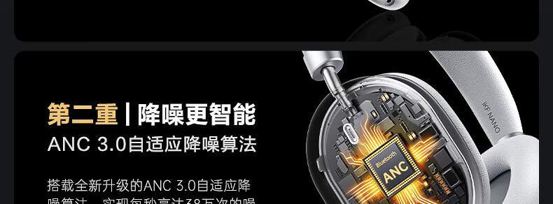 iKF Nano空间音频版【金榜推荐|56dB强劲降噪】头戴式主动降噪蓝牙耳机金标认证有线无线耳麦极光银