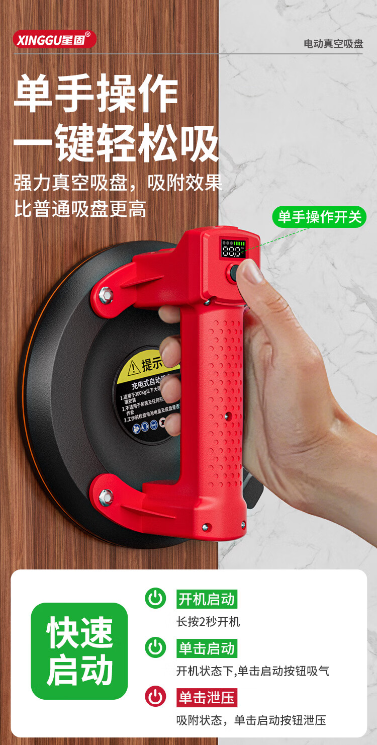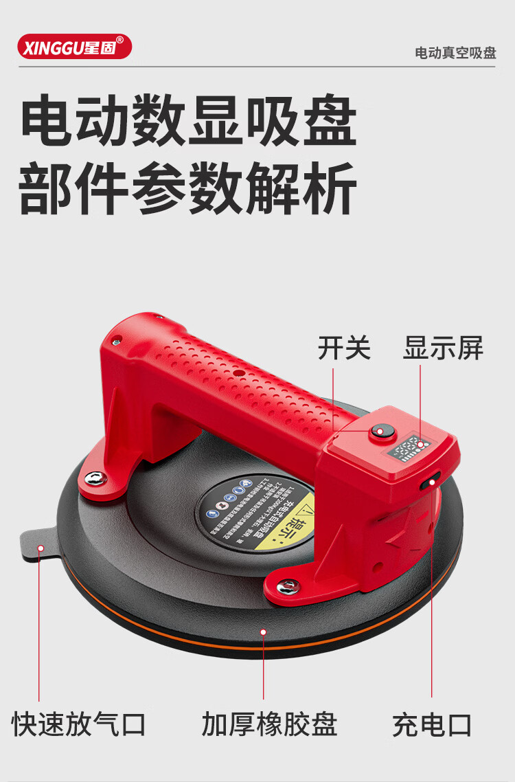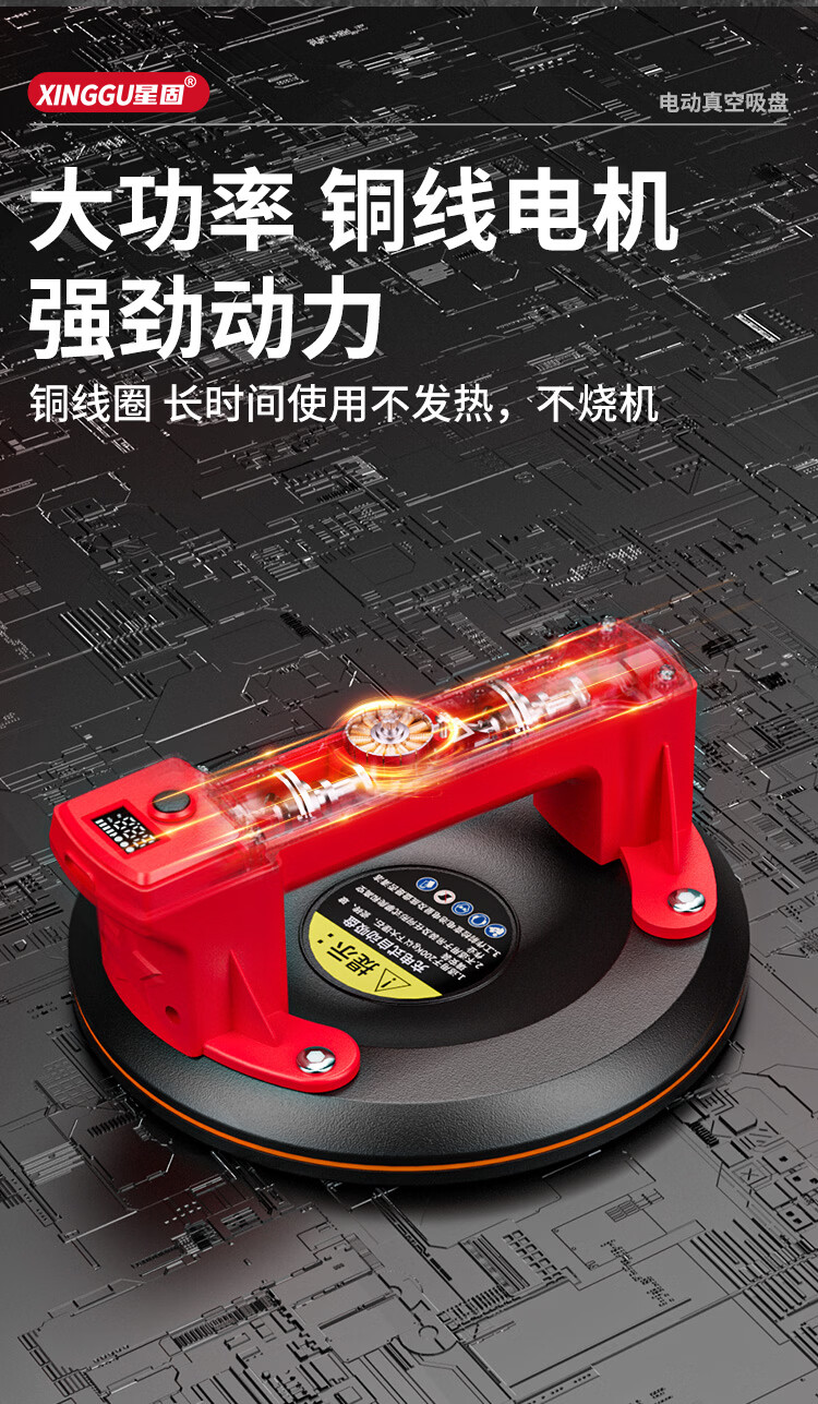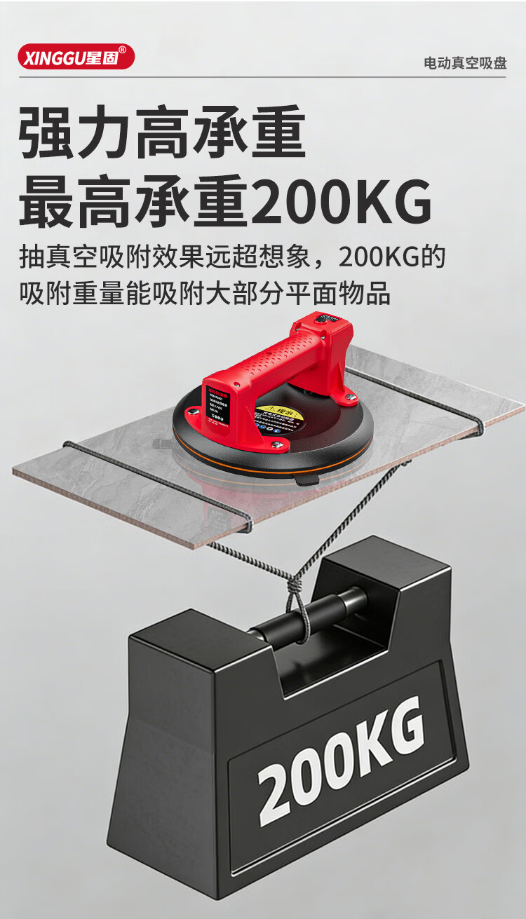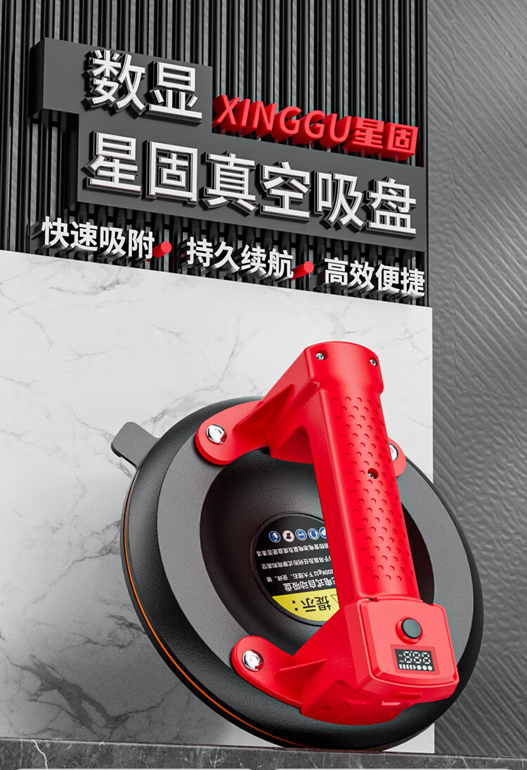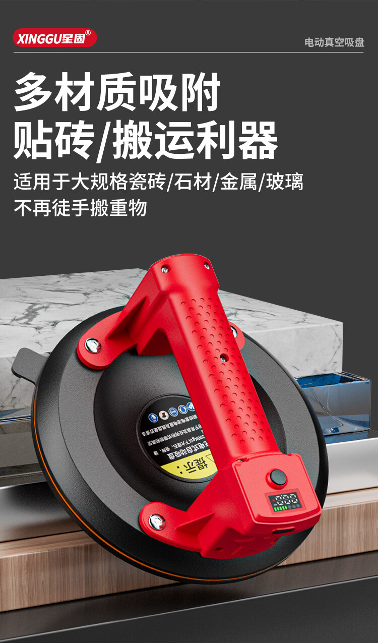 星固电动数显吸盘瓷砖平铺专用吸盘玻璃吸盘真空强力贴瓷砖辅助工具 加大数显款丨200KG吸力丨铜线电机