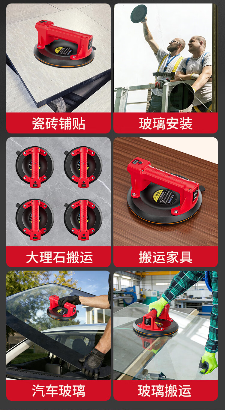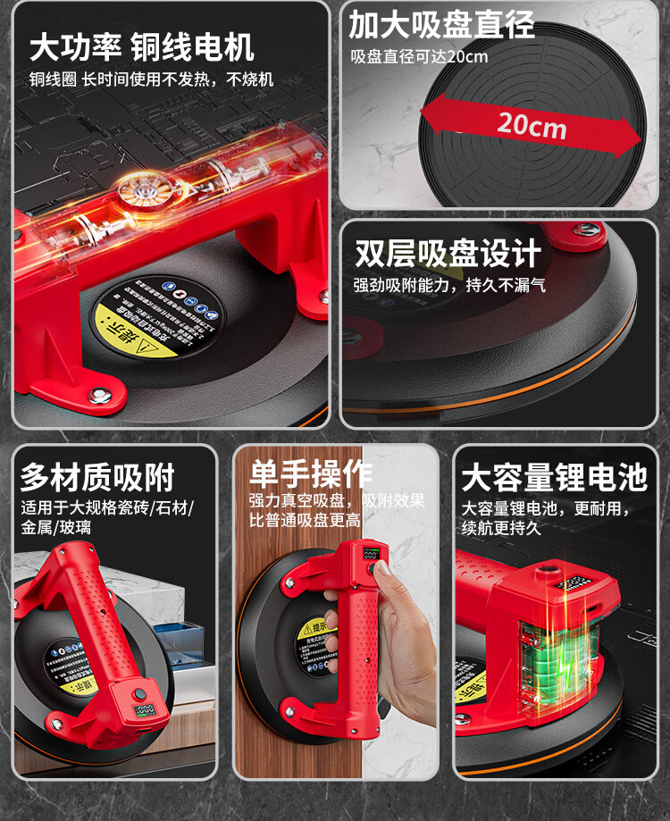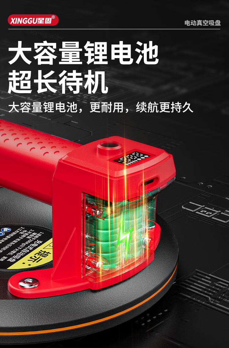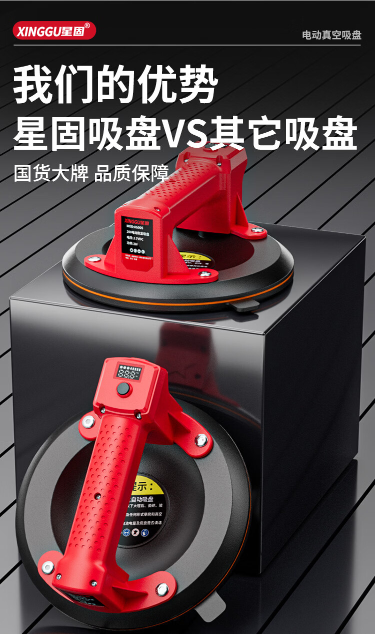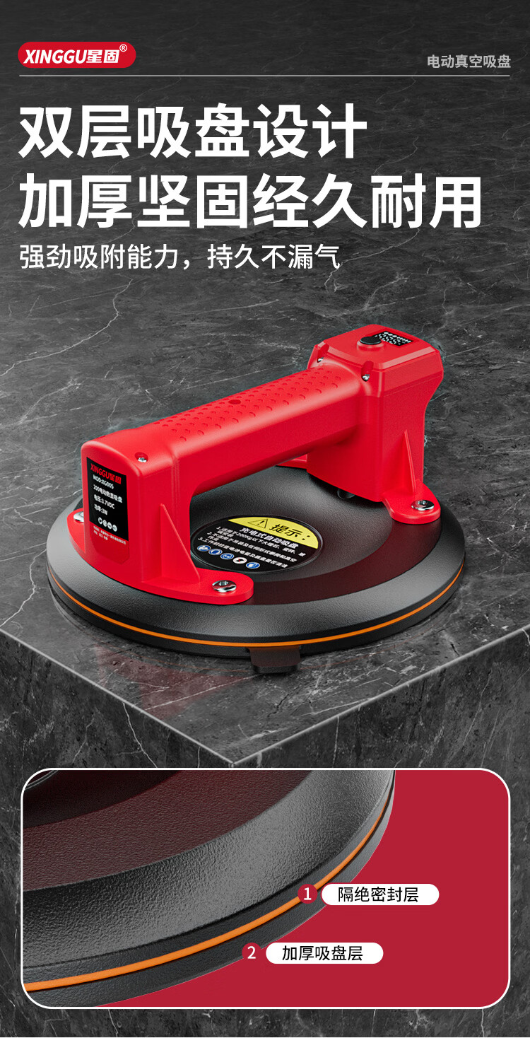 星固电动数显吸盘瓷砖平铺专用吸盘玻璃吸盘真空强力贴瓷砖辅助工具 加大数显款丨200KG吸力丨铜线电机