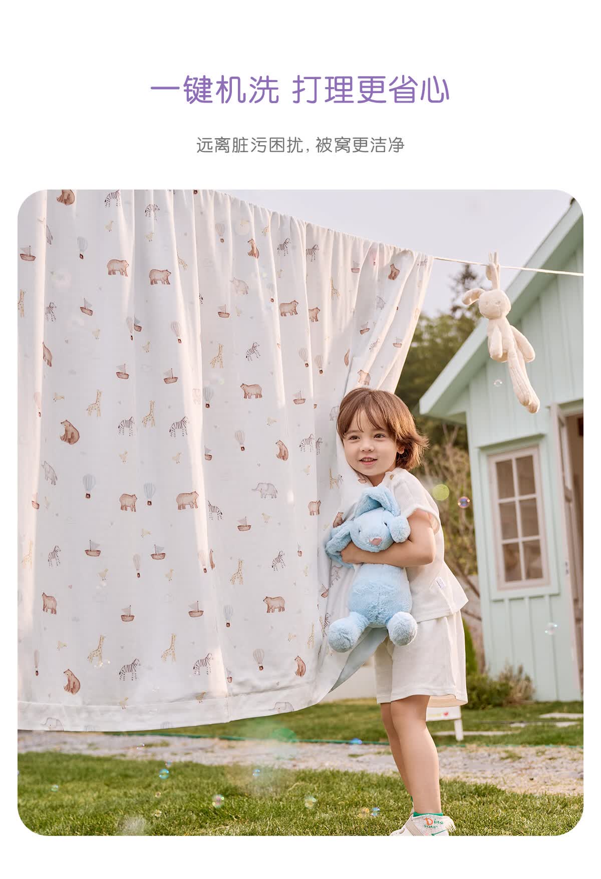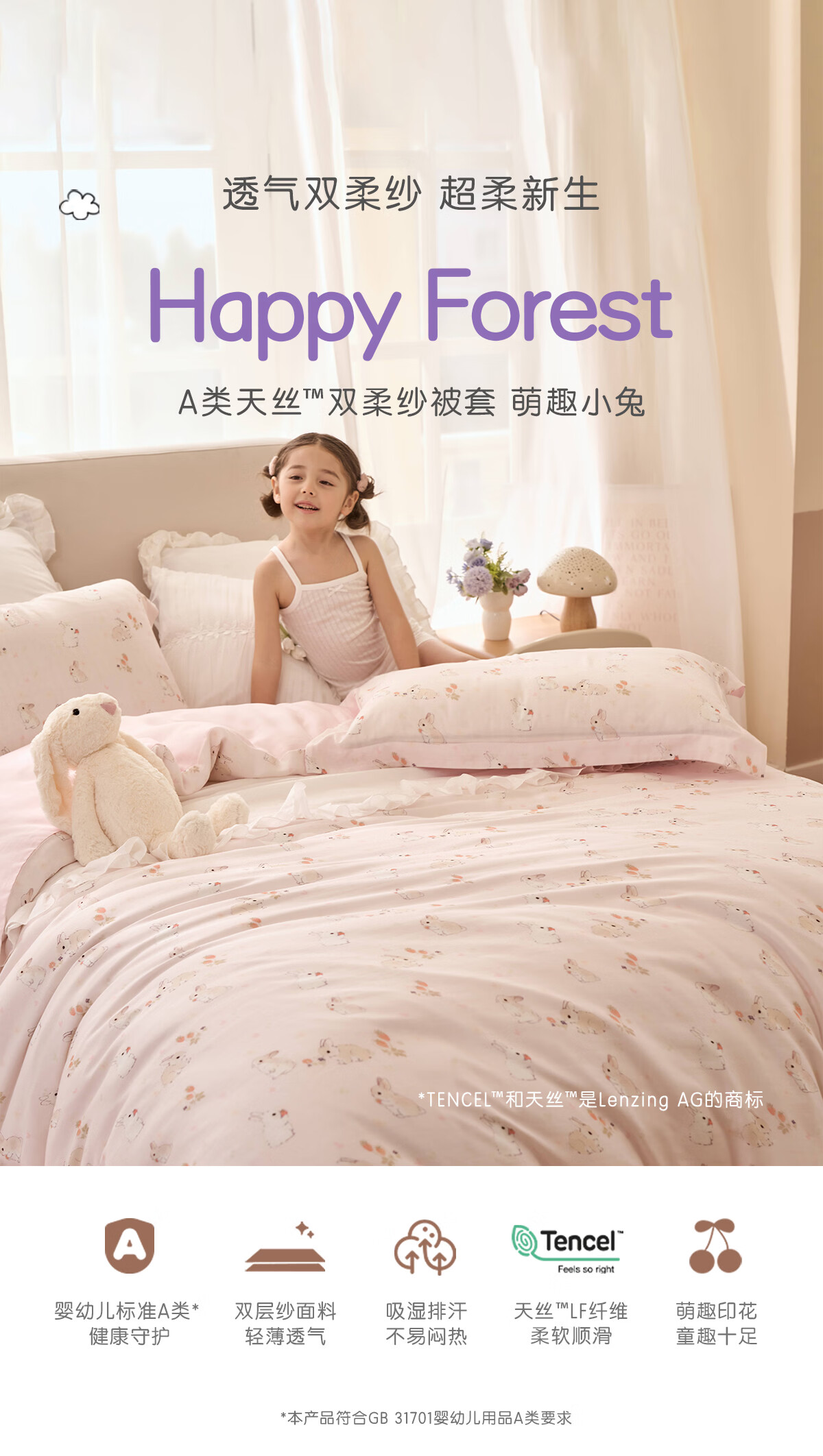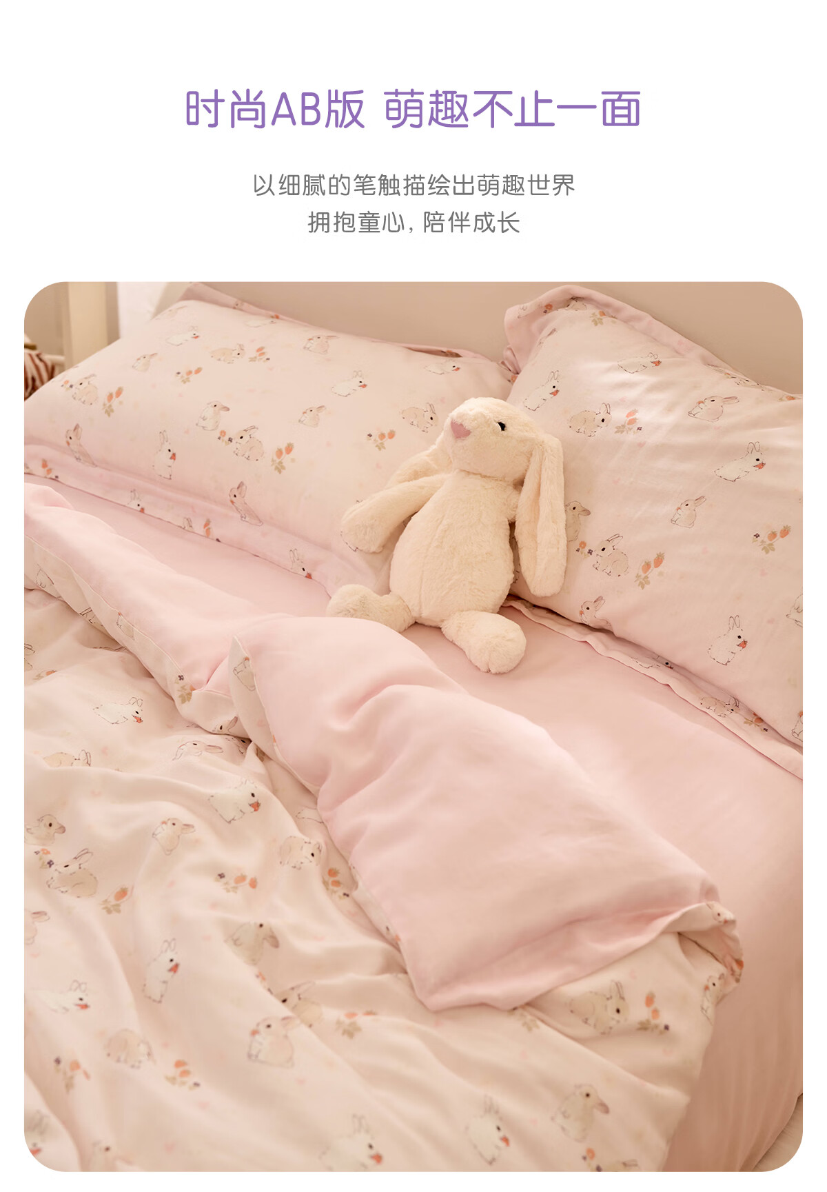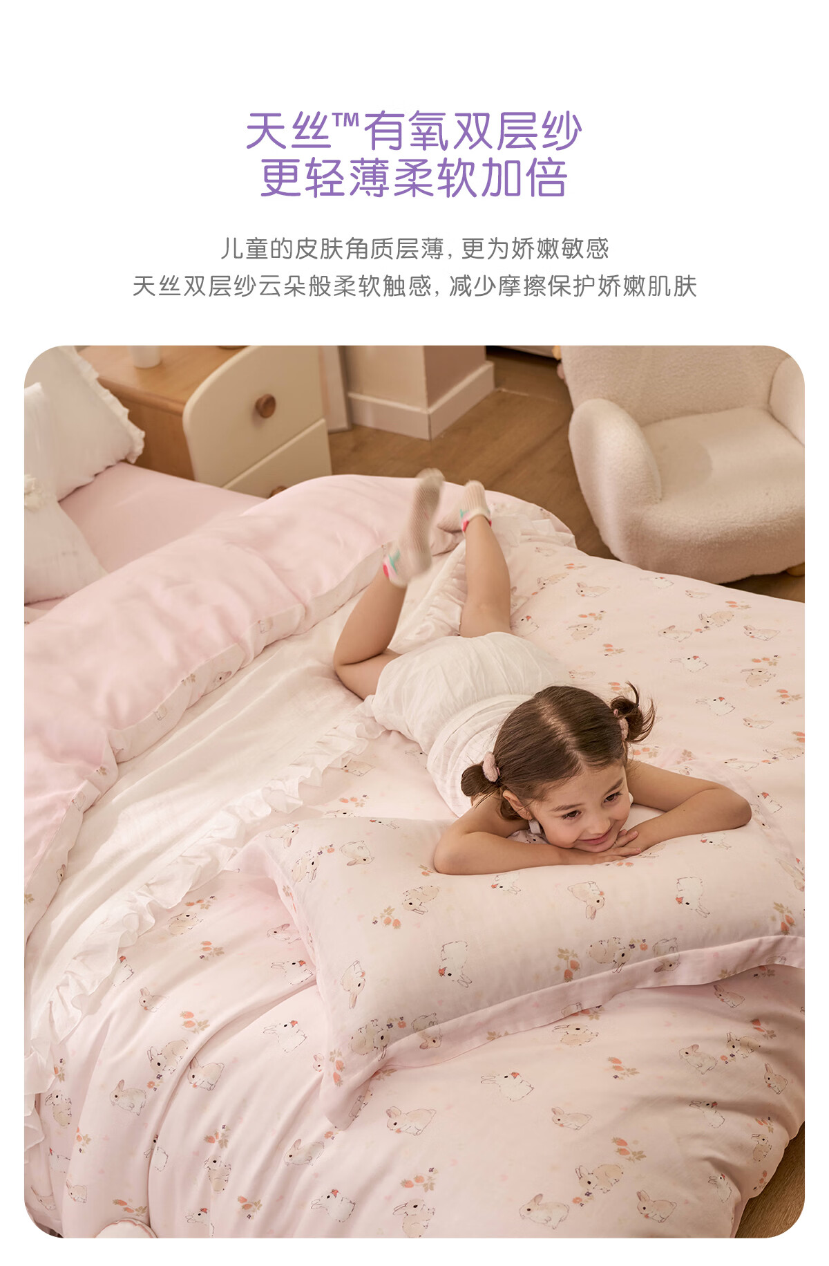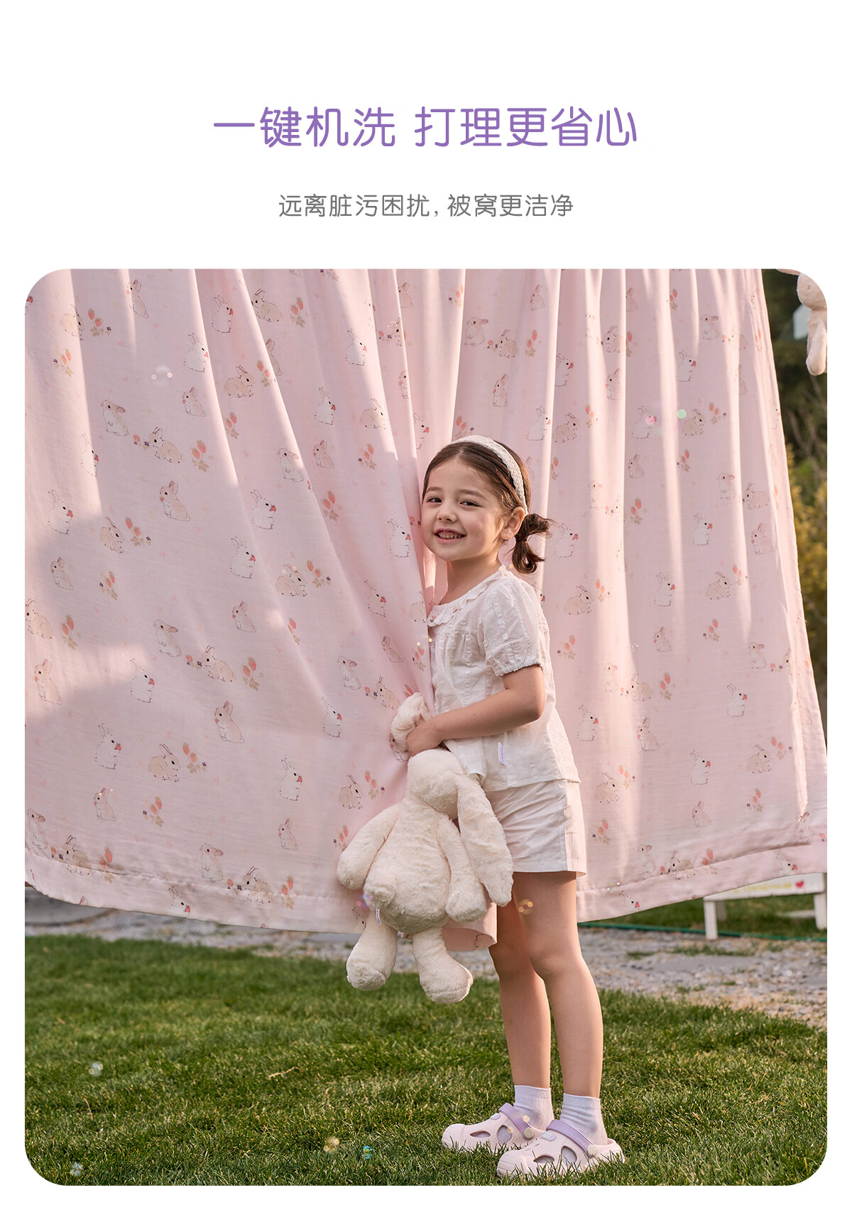 罗莱家纺婴幼儿A类天丝双柔纱儿童卡通被套 萌趣小兔双柔纱单卖被套 120cm*150cm