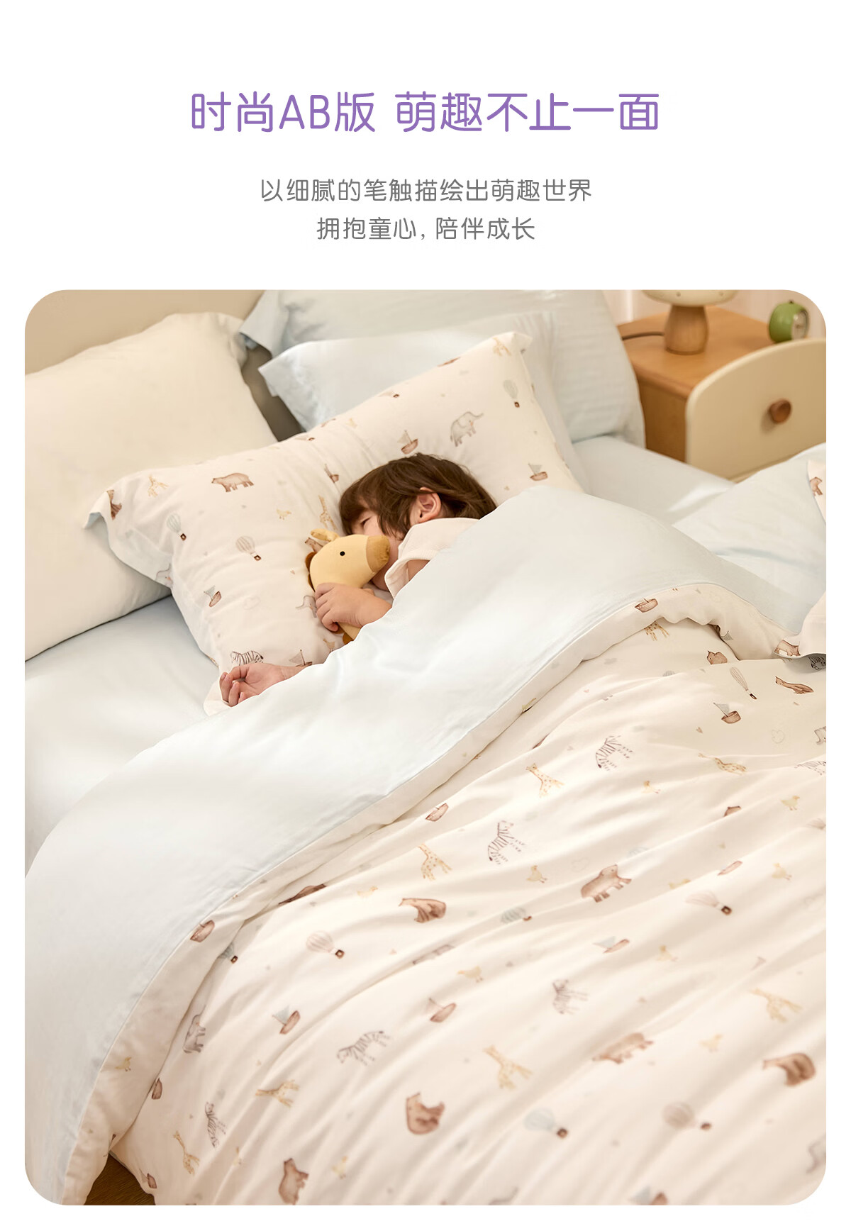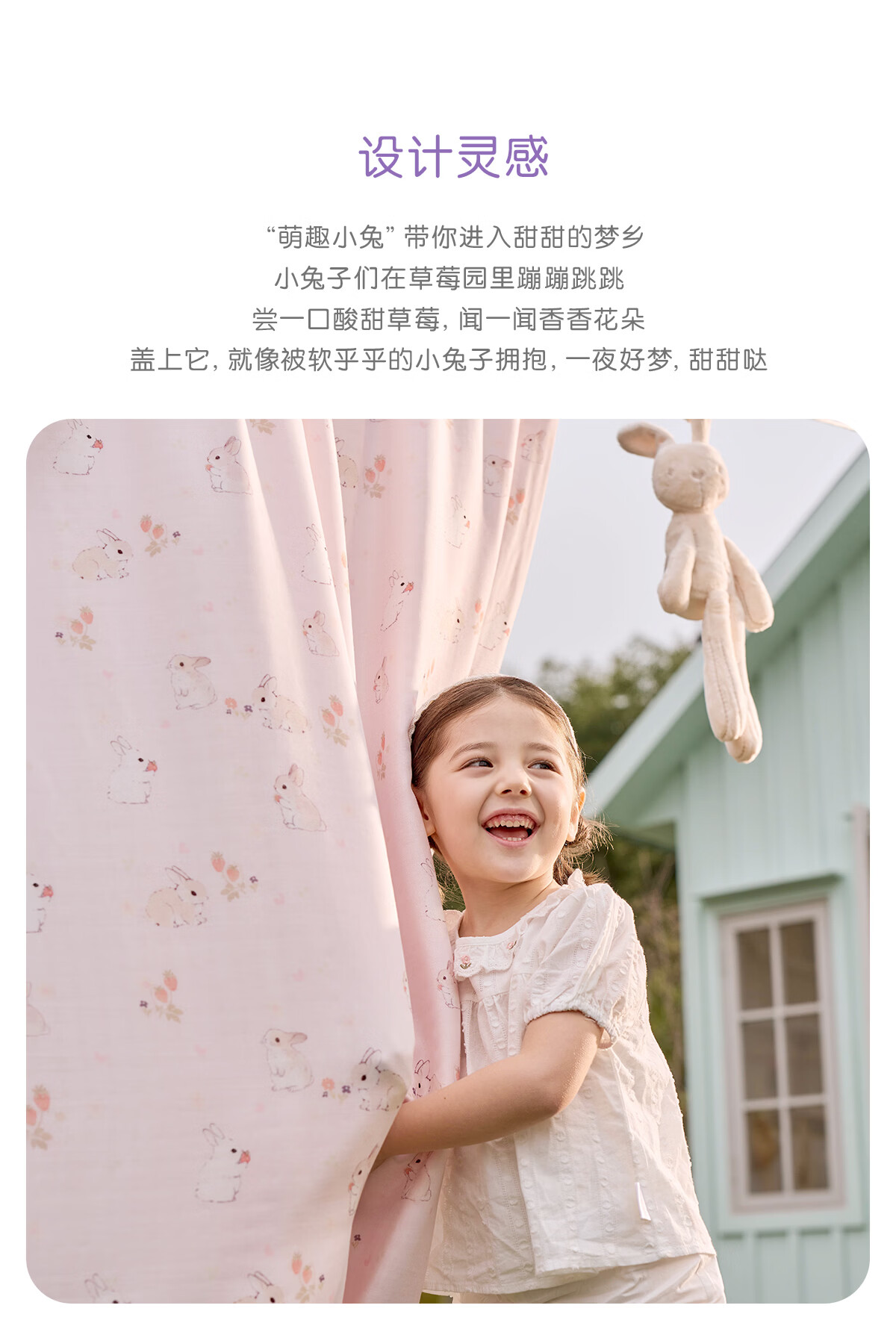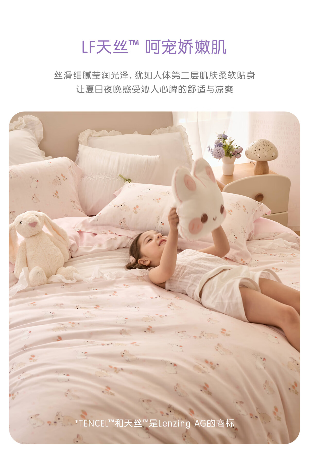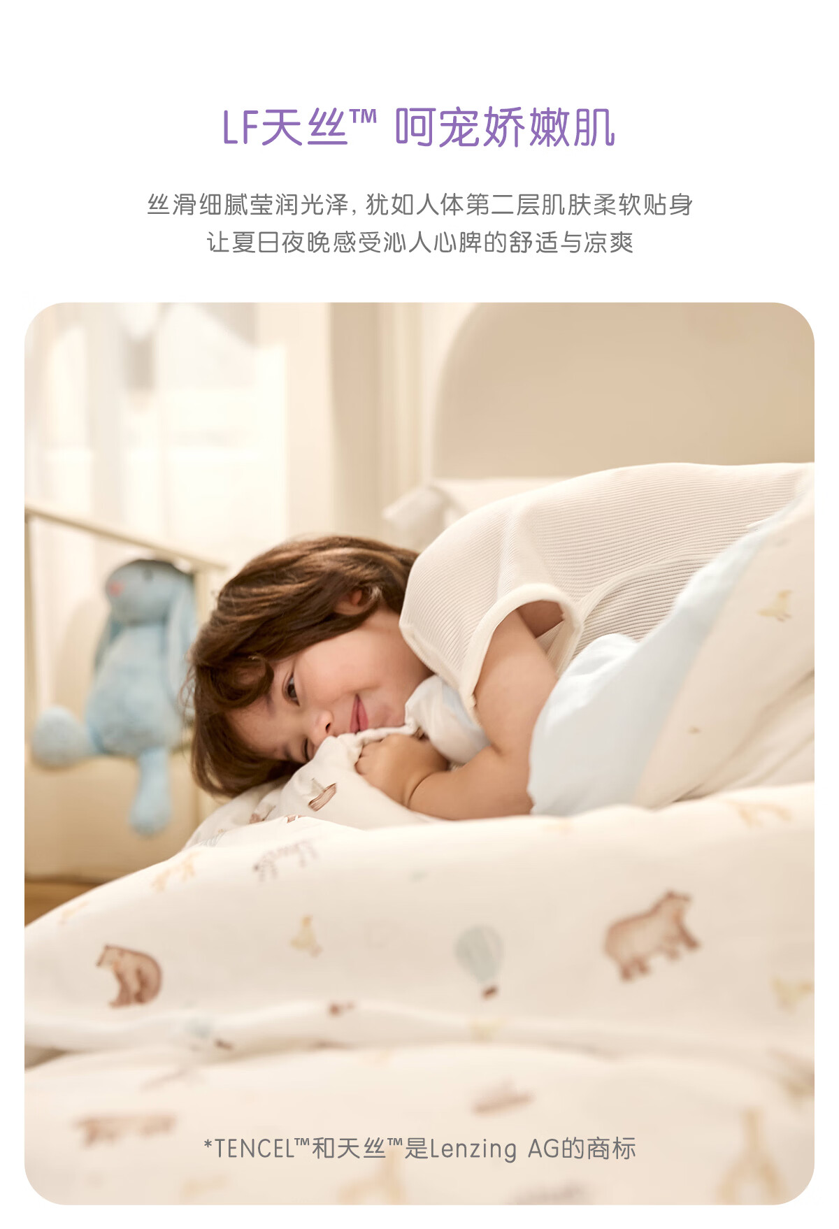 罗莱家纺婴幼儿A类天丝双柔纱儿童卡通被套 萌趣小兔双柔纱单卖被套 120cm*150cm