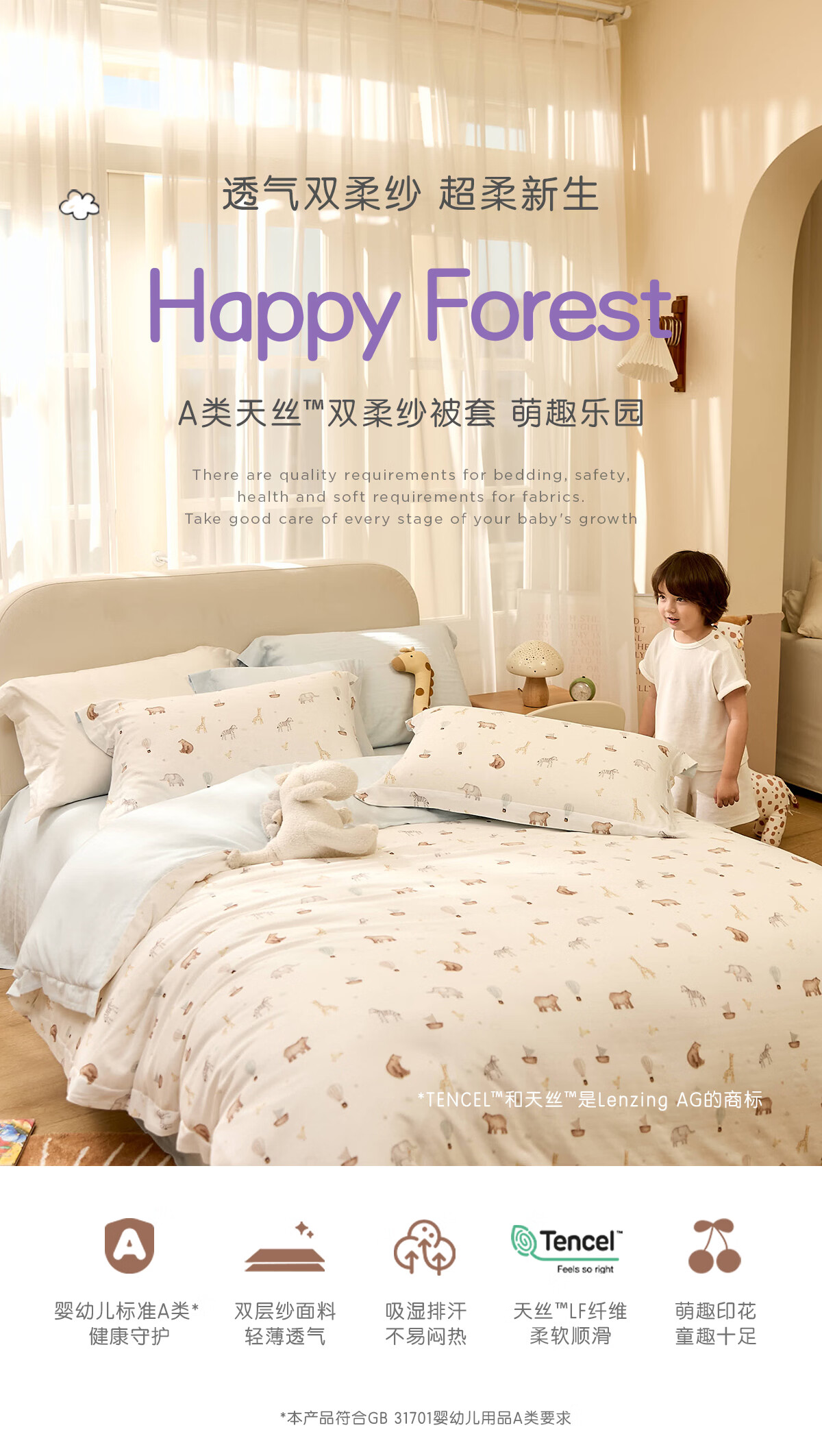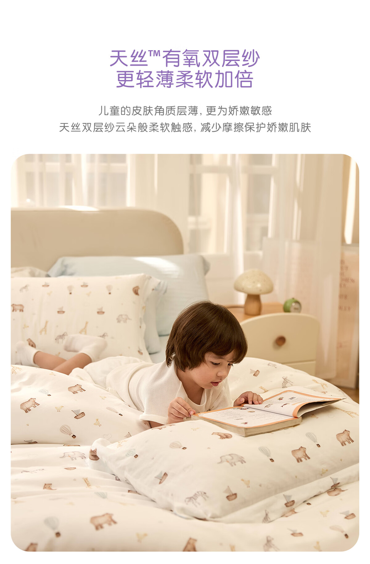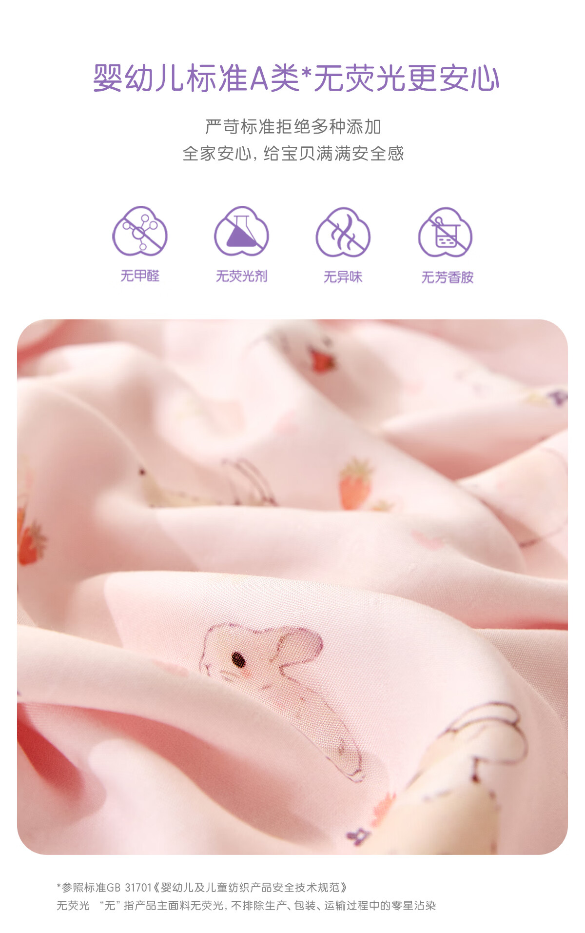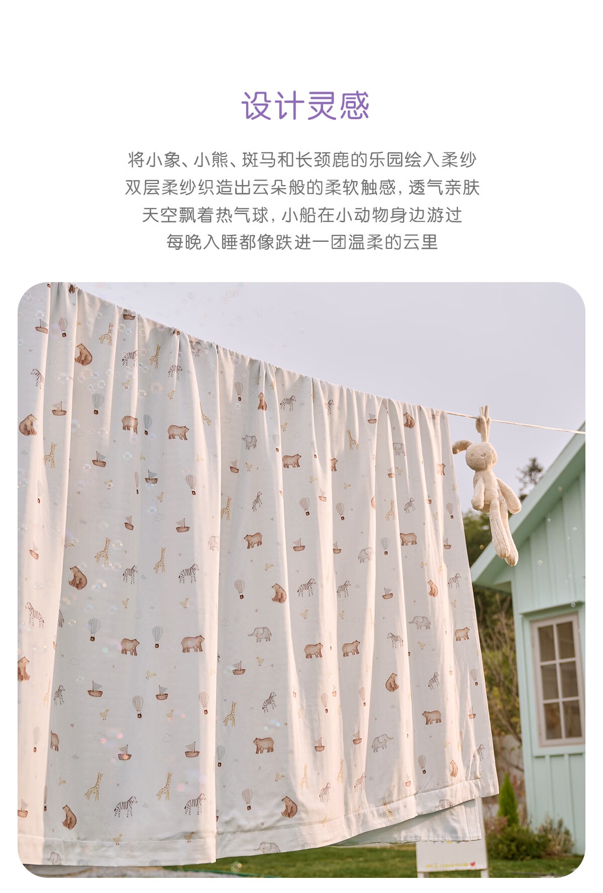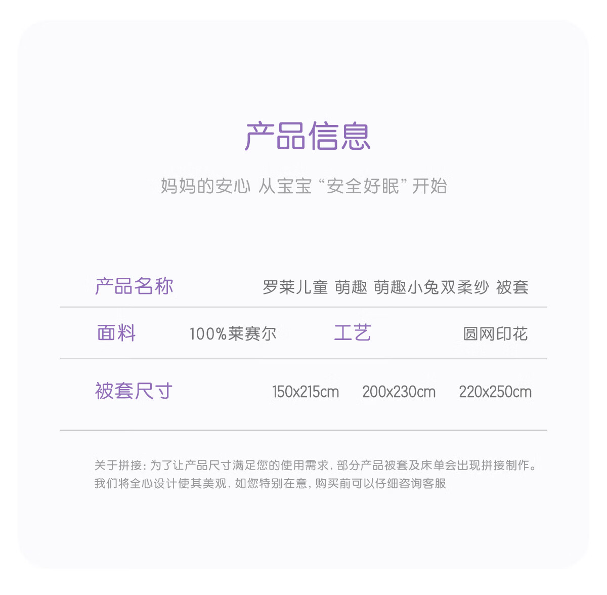 罗莱家纺婴幼儿A类天丝双柔纱儿童卡通被套 萌趣小兔双柔纱单卖被套 120cm*150cm