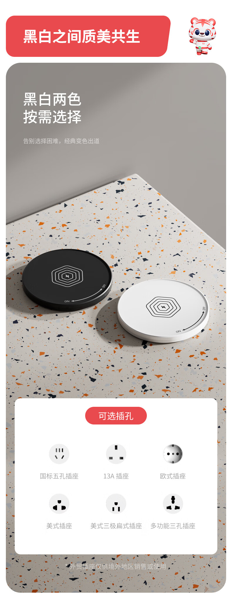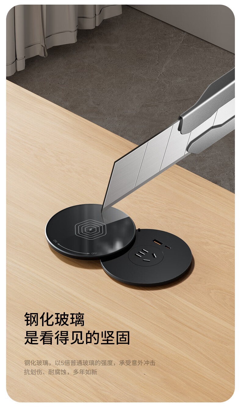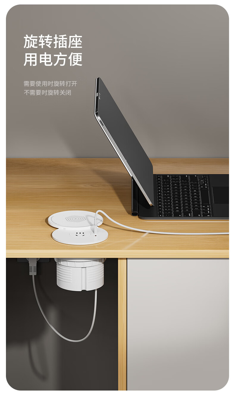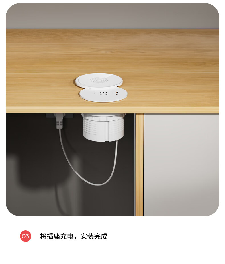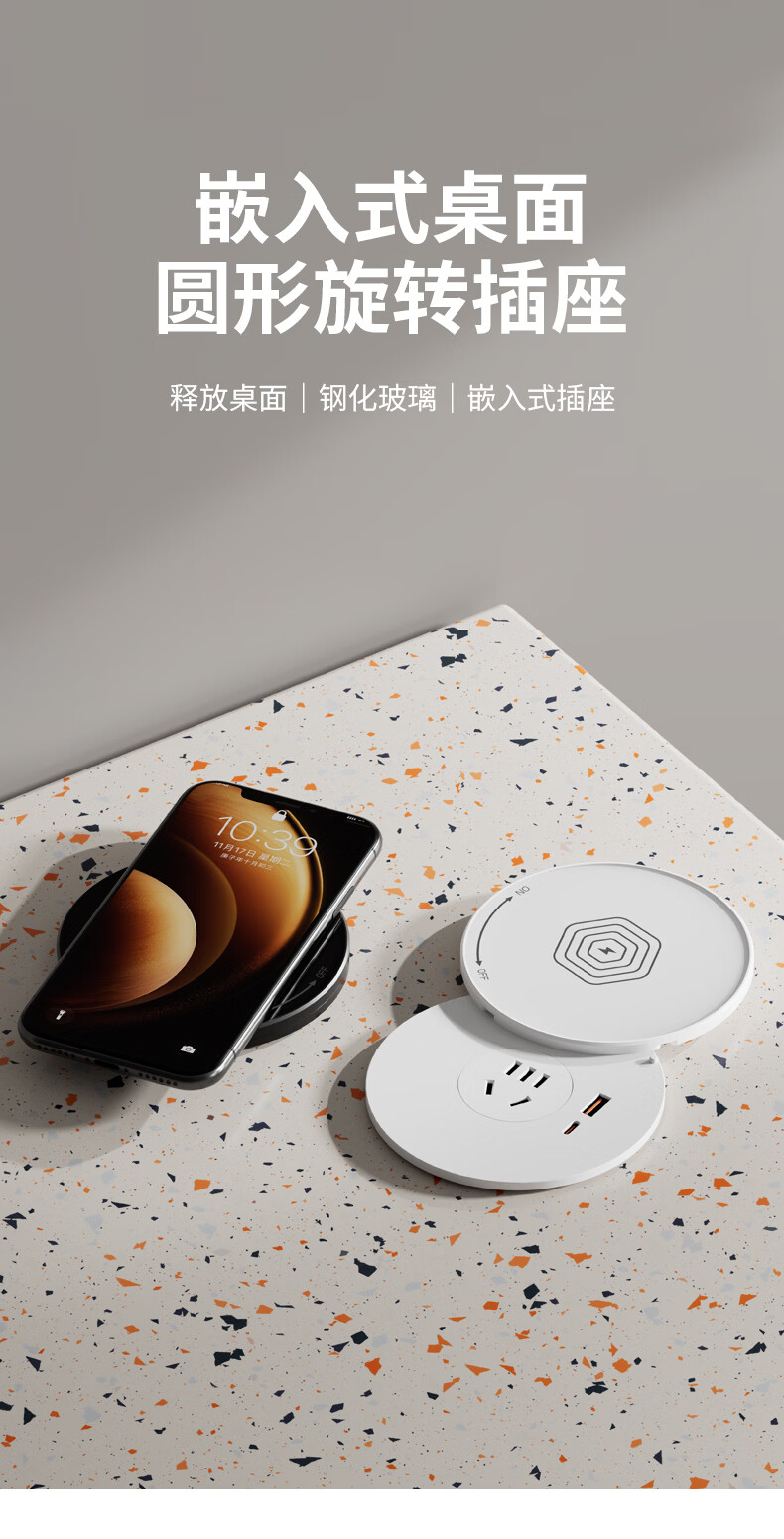 国际电工无线充电隐藏嵌入式旋转插座厨房桌面防水插排岛台会议桌快充插板 白色带线丨五孔插座+USB+Type-C