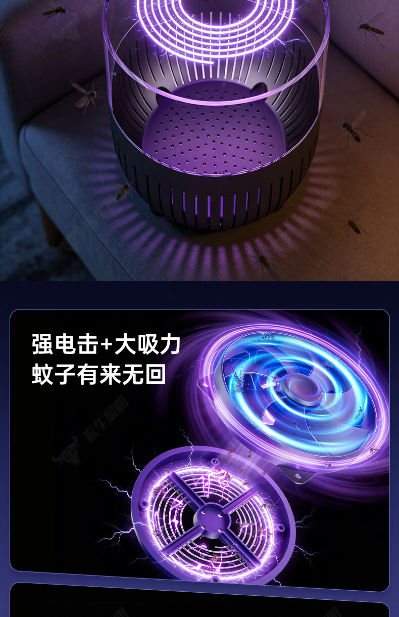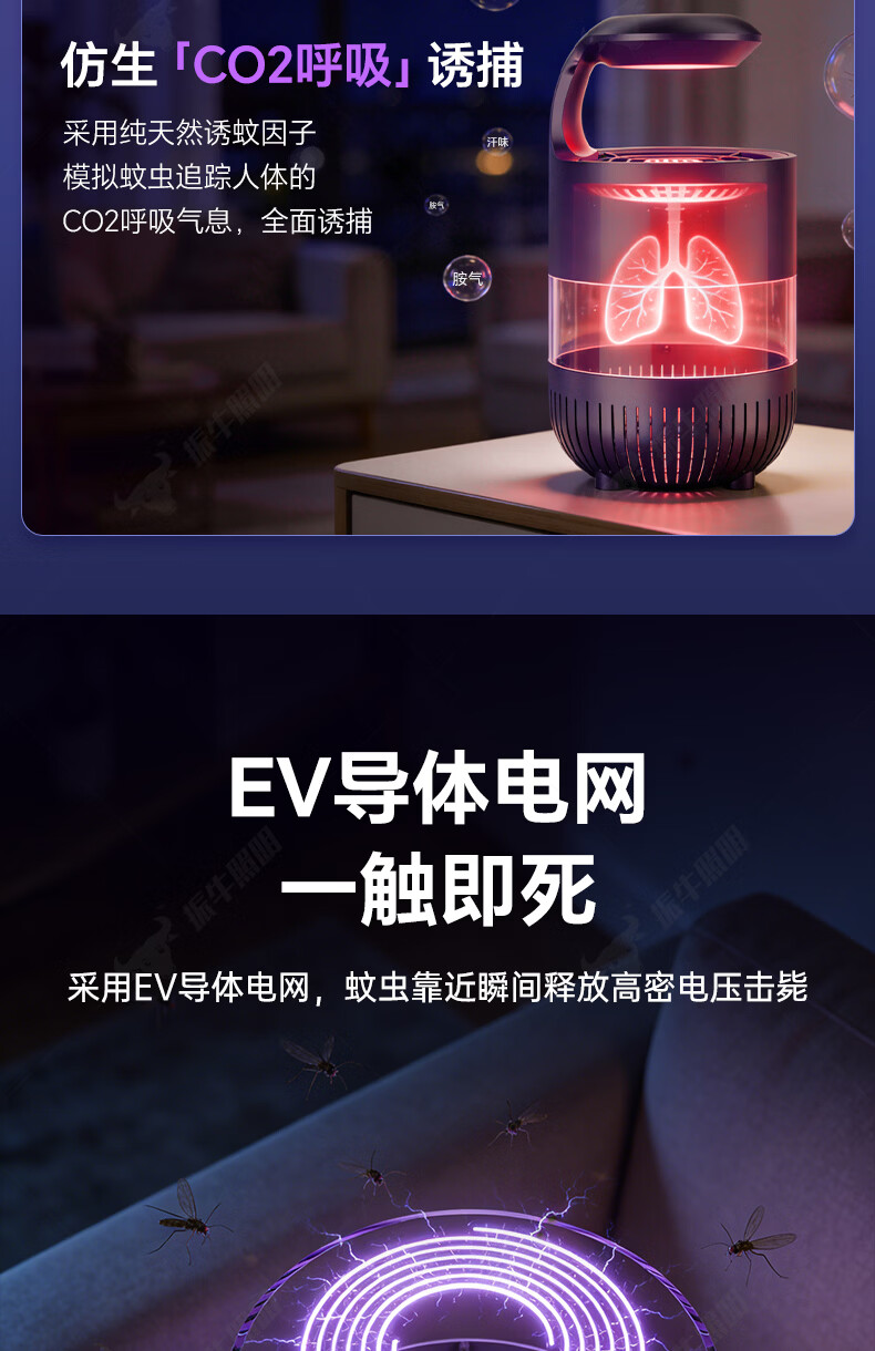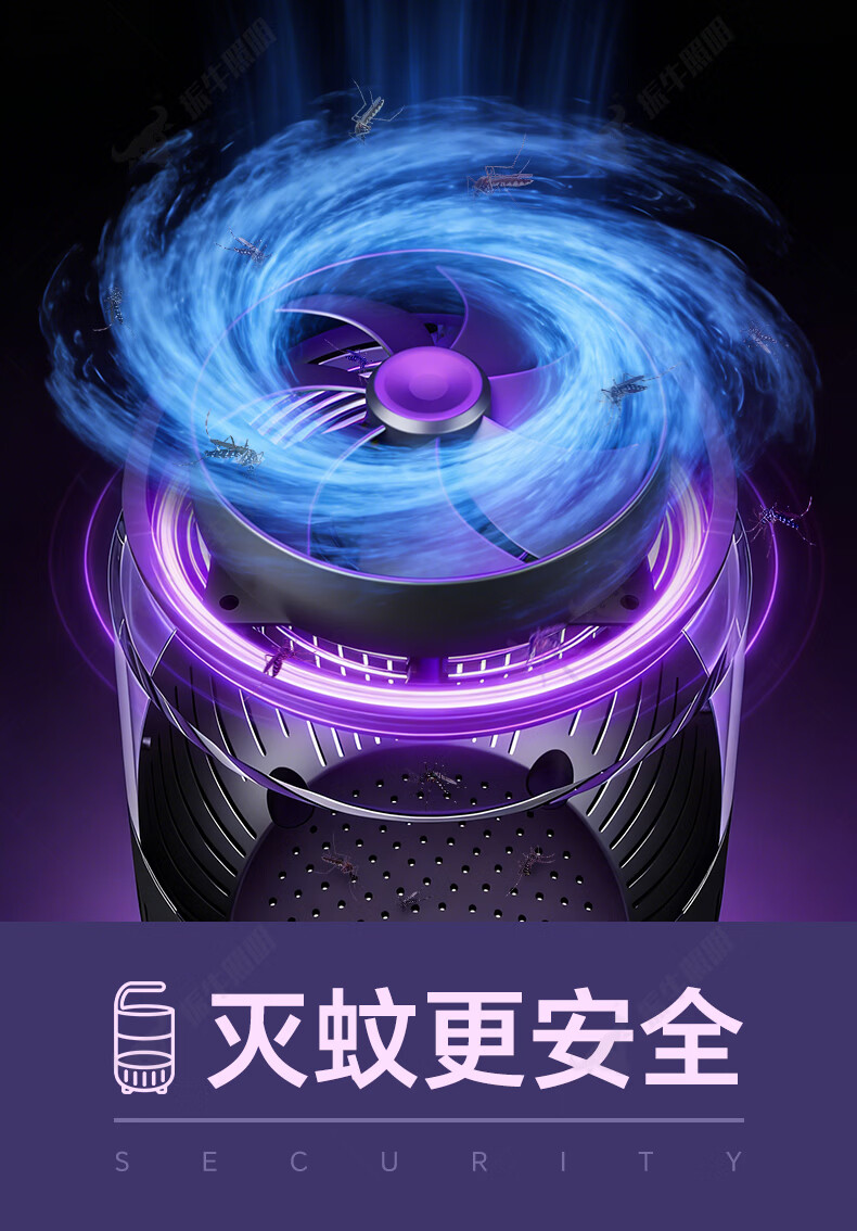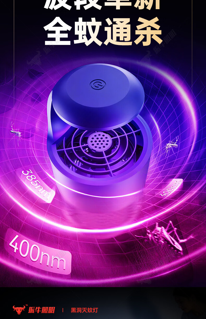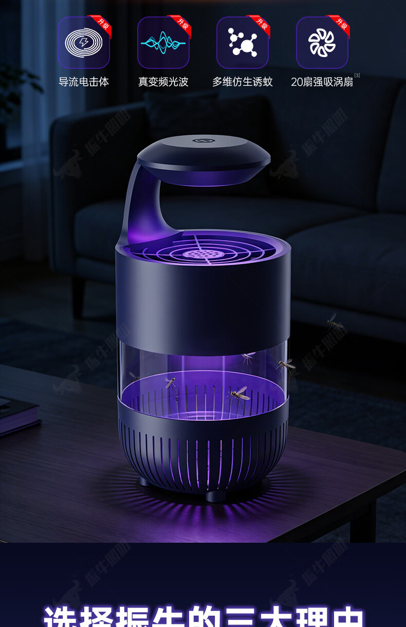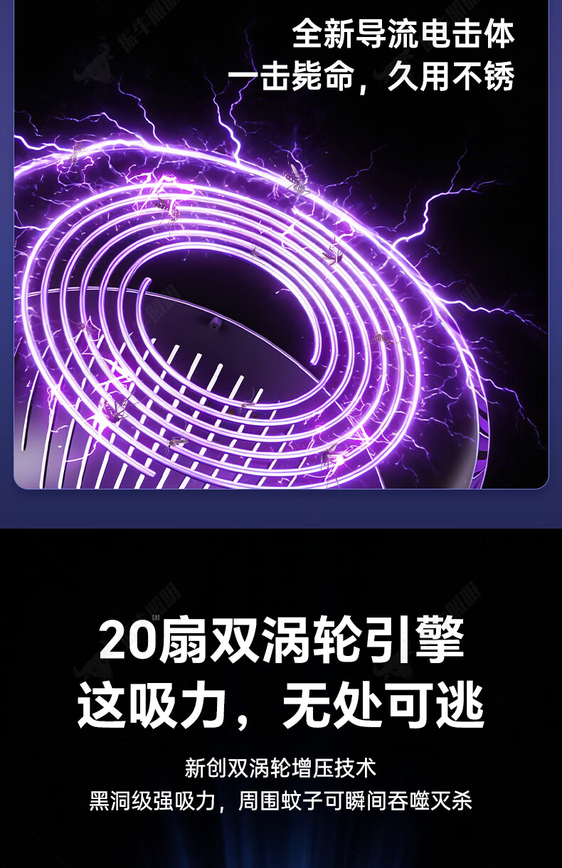 振牛灭蚊灯2026新款家用驱蚊神器强力诱捕吸电防蚊虫静音杀苍蝇专用 黑色强效母婴级灭蚊灯 特研专利 大面积灭蚊 8代超静音