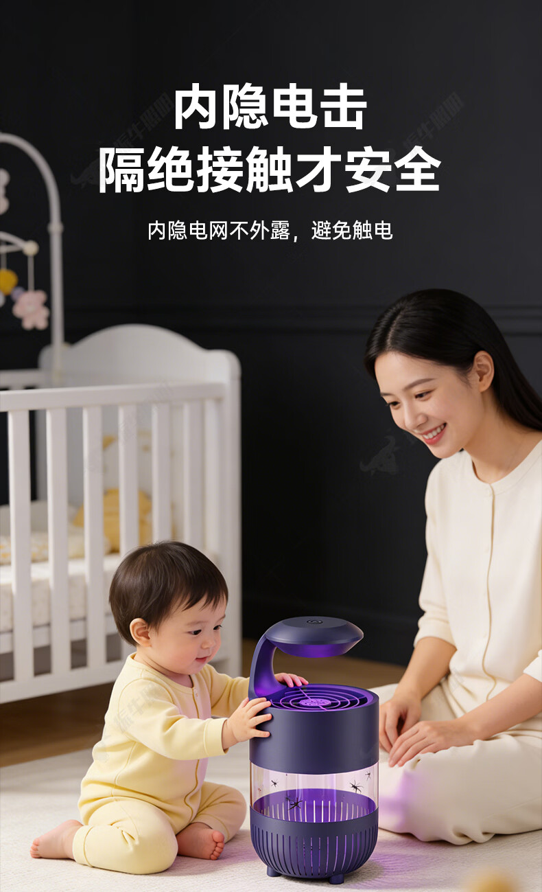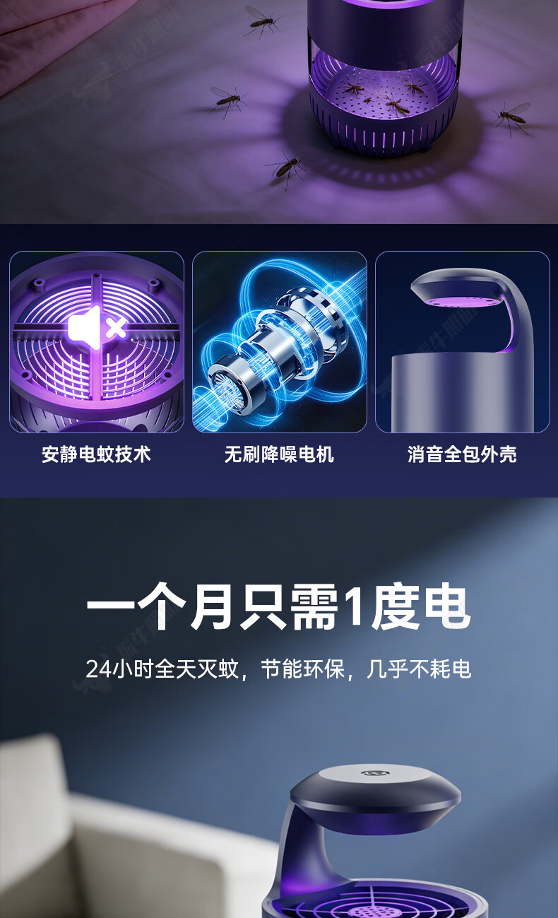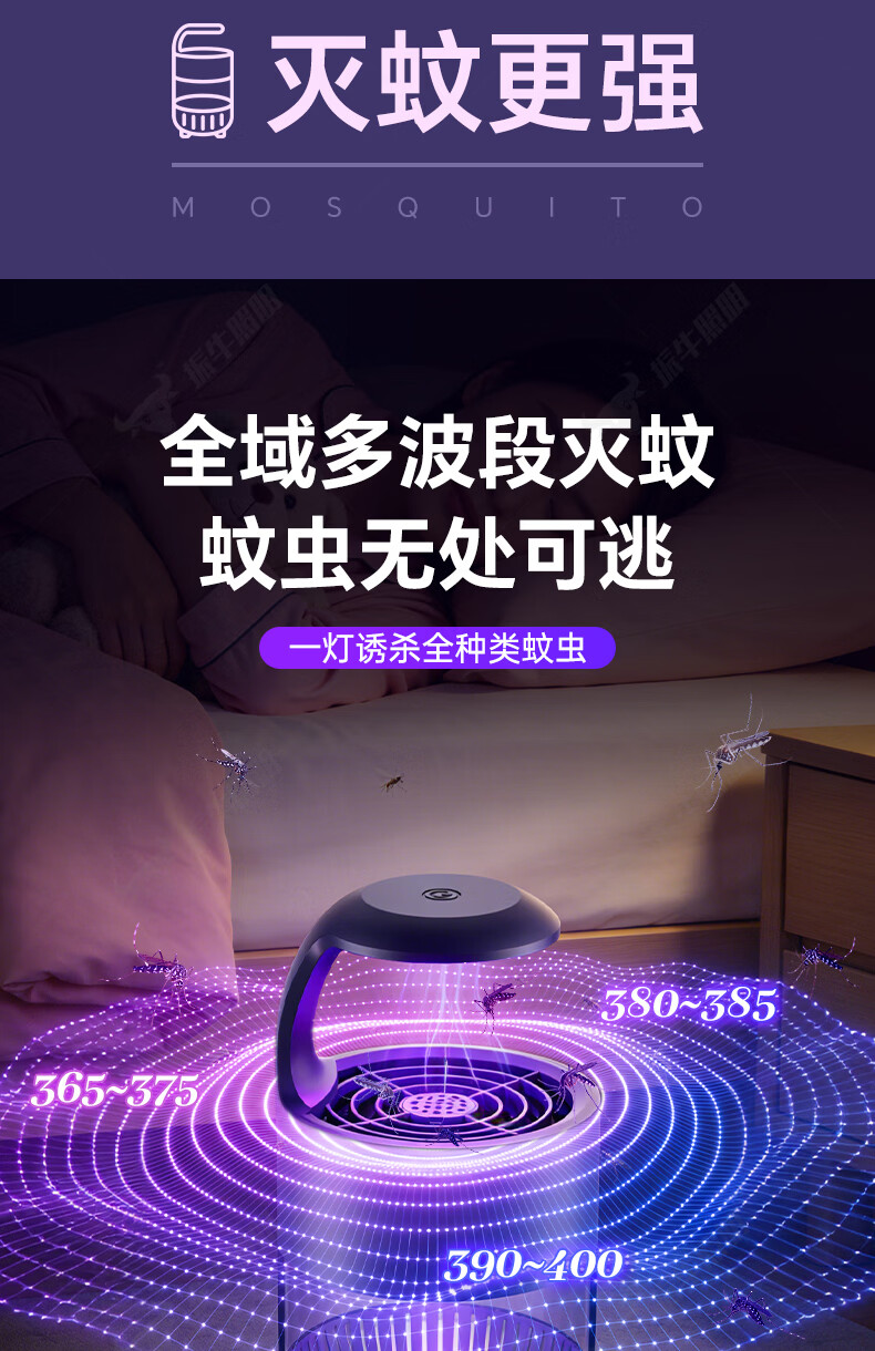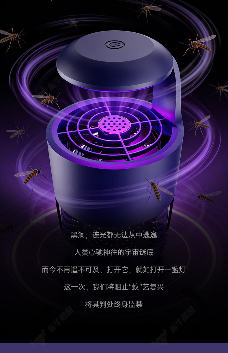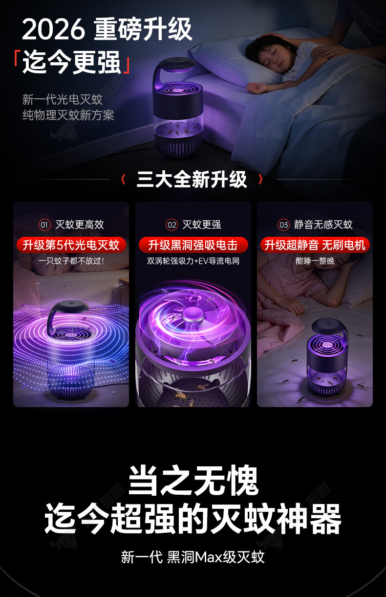 振牛灭蚊灯2026新款家用驱蚊神器强力诱捕吸电防蚊虫静音杀苍蝇专用 黑色强效母婴级灭蚊灯 特研专利 大面积灭蚊 8代超静音