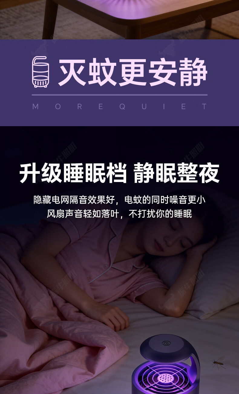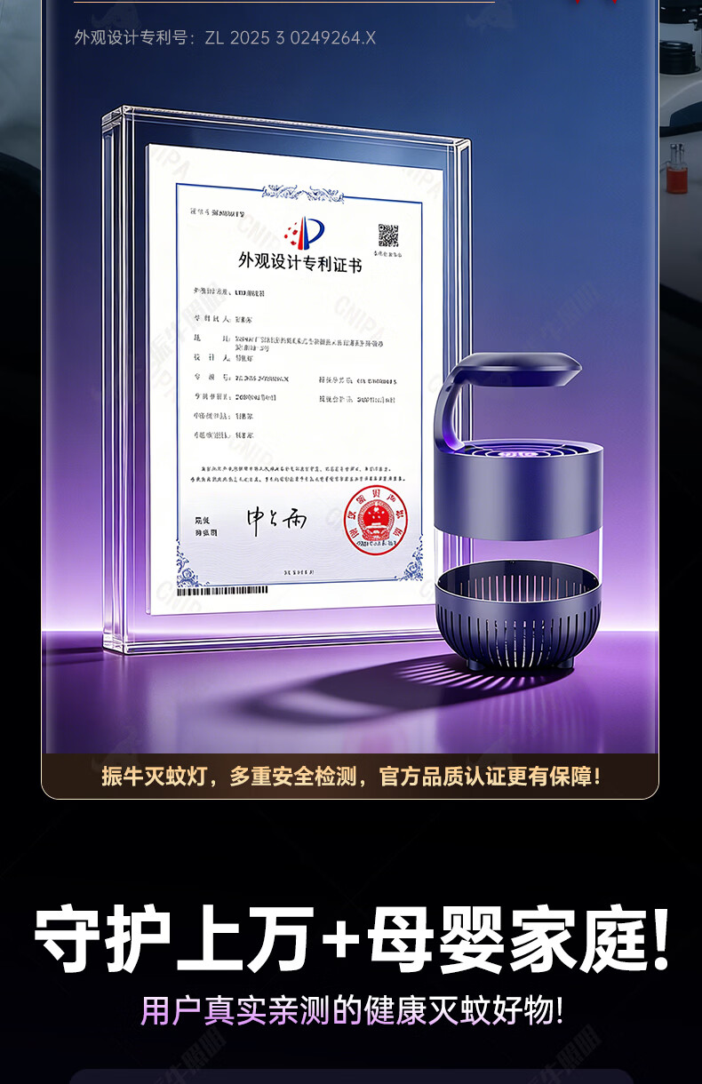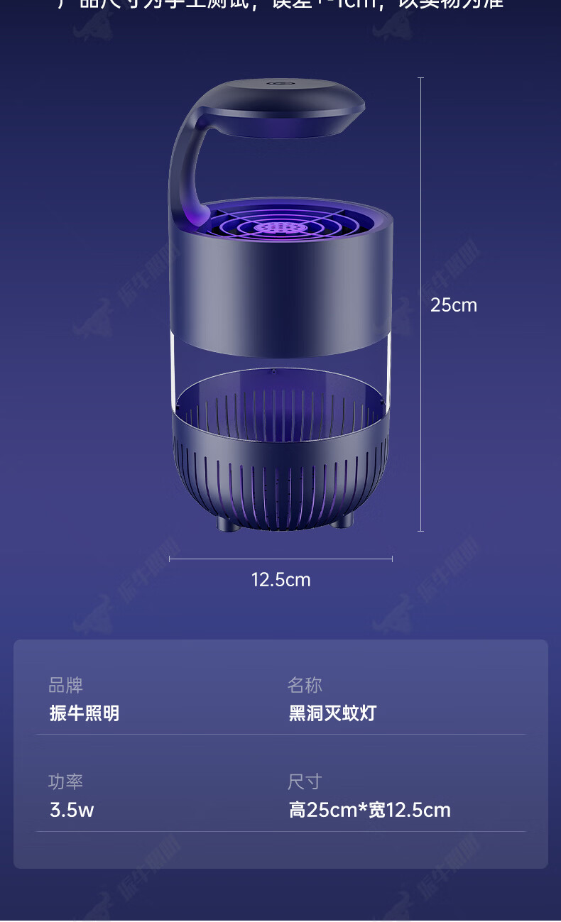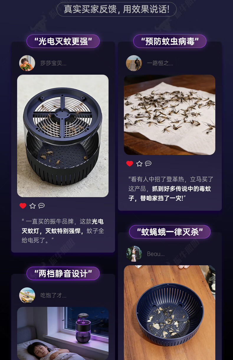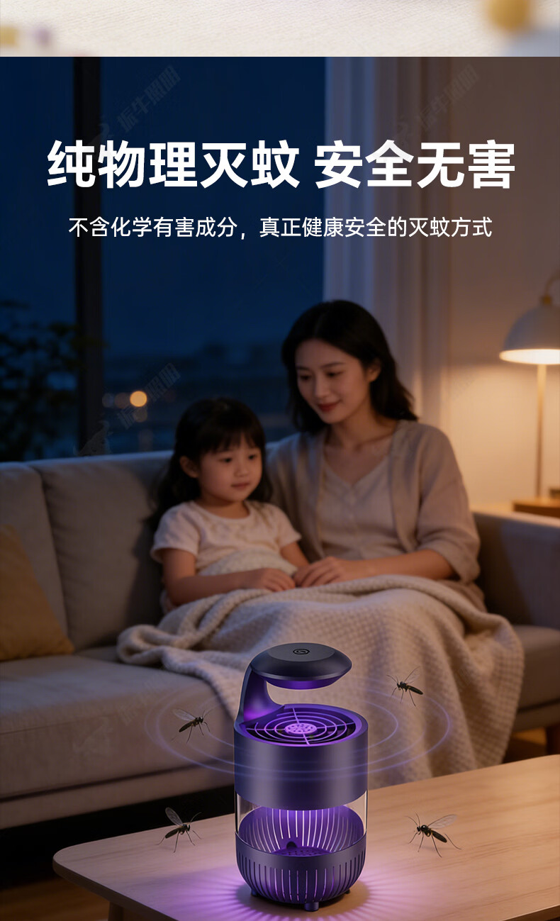 振牛灭蚊灯2026新款家用驱蚊神器强力诱捕吸电防蚊虫静音杀苍蝇专用 黑色强效母婴级灭蚊灯 特研专利 大面积灭蚊 8代超静音