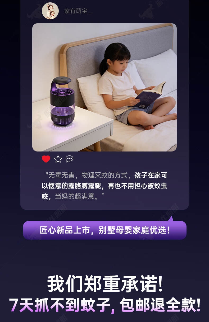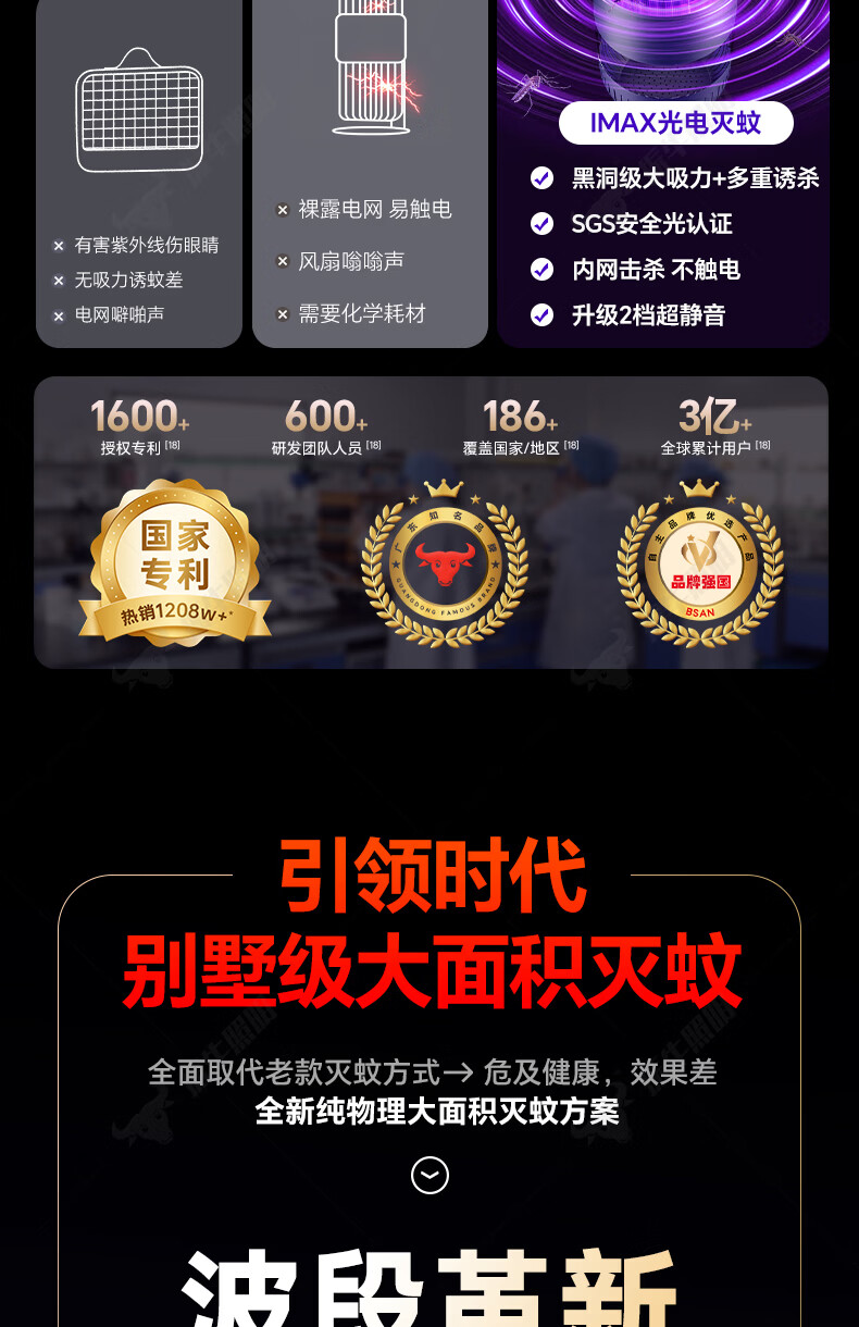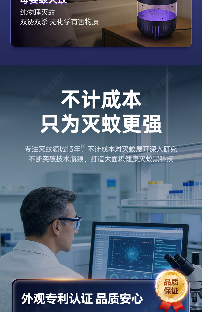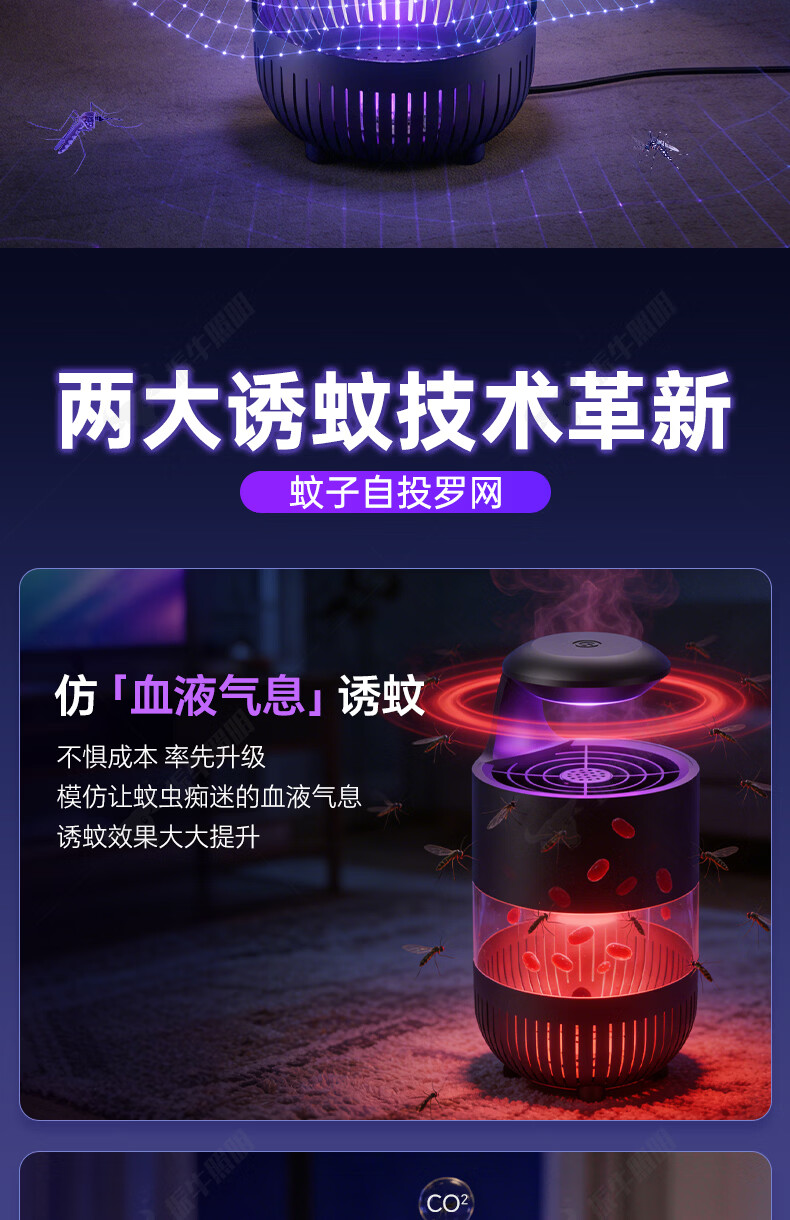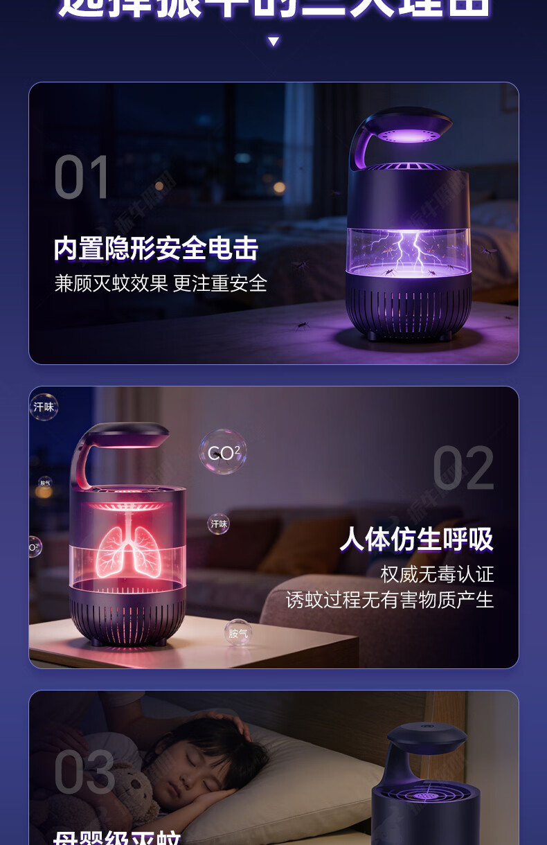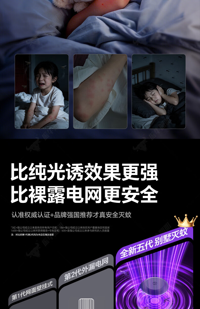 振牛灭蚊灯2026新款家用驱蚊神器强力诱捕吸电防蚊虫静音杀苍蝇专用 黑色强效母婴级灭蚊灯 特研专利 大面积灭蚊 8代超静音
