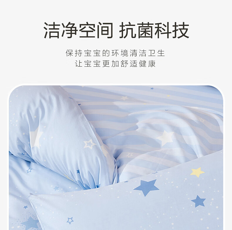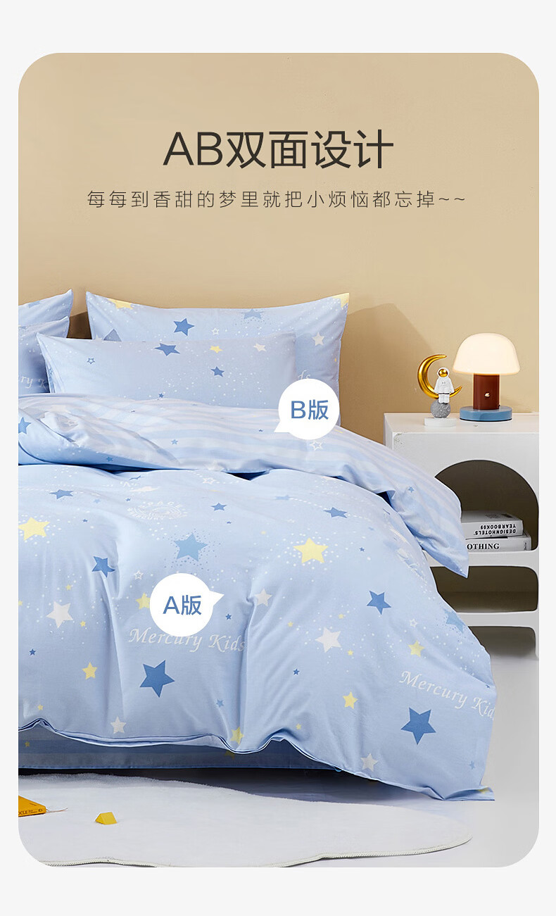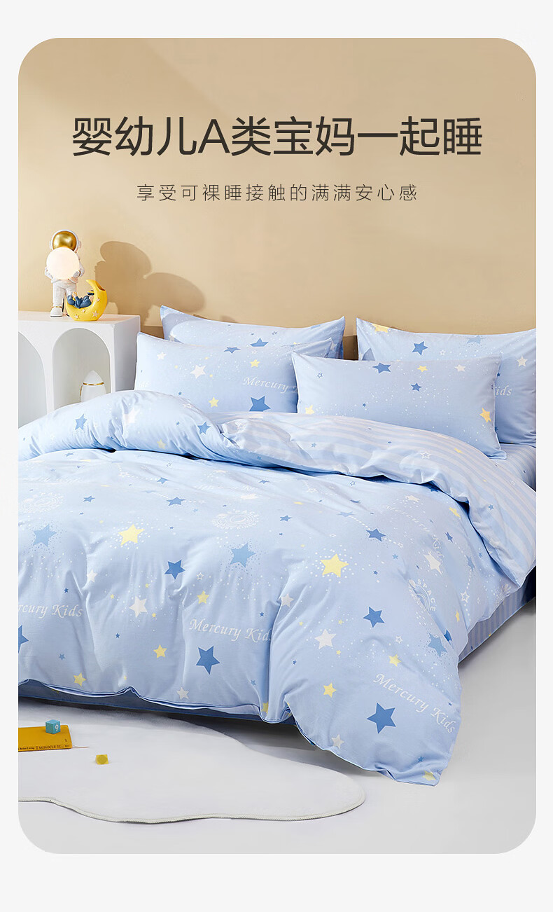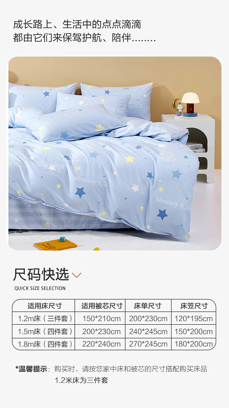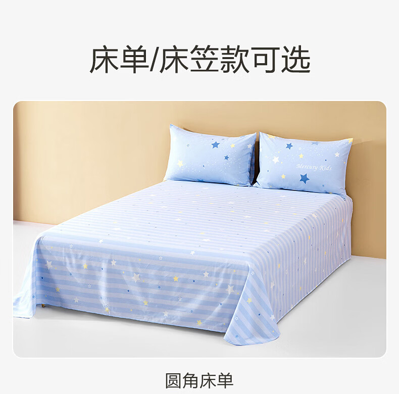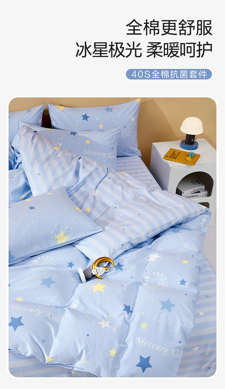 水星家纺四件套床上用品纯棉100%全棉婴幼儿A类儿童学生宿舍26年套件 冰极星 120cm×200cm 床单款 (被套150*210cm)