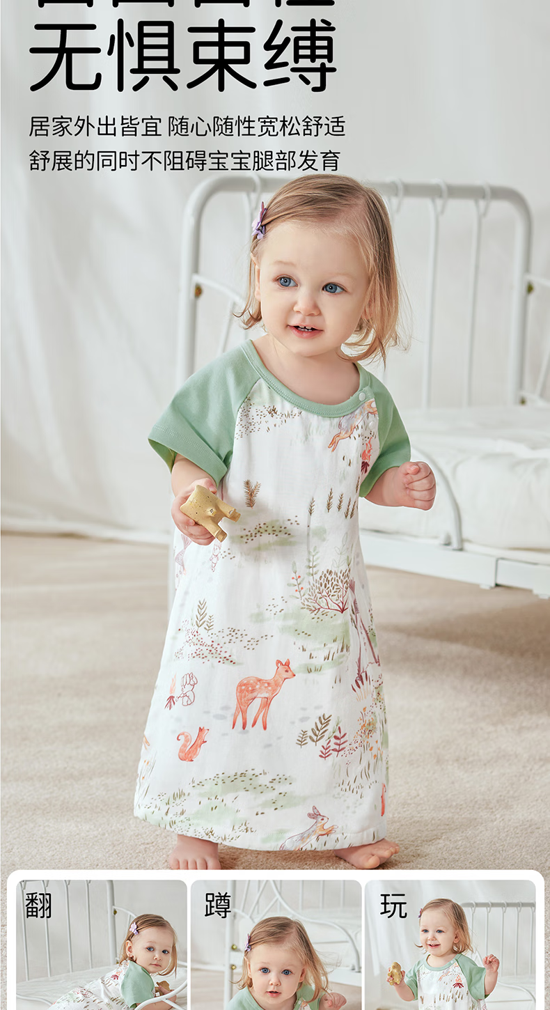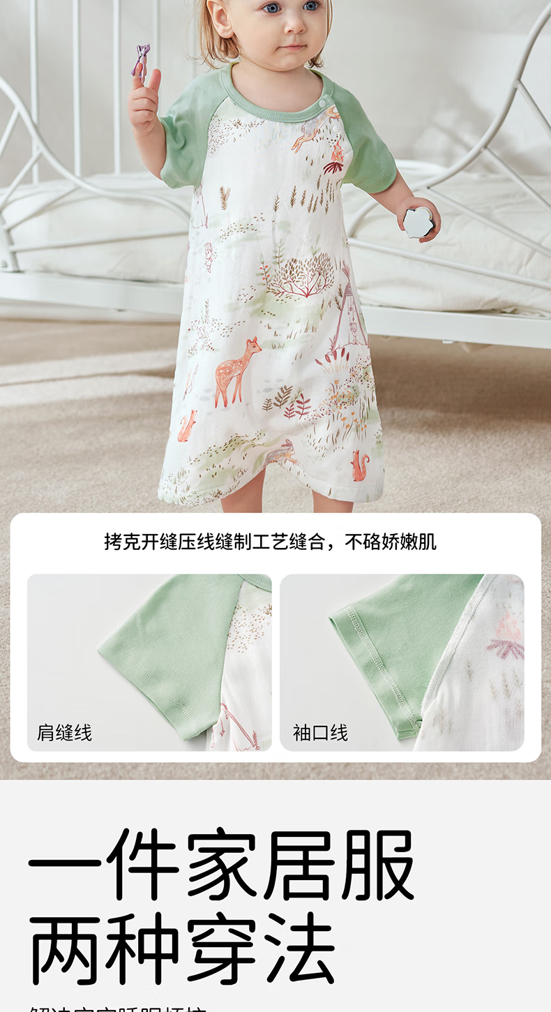 欧孕(OUYUN)儿童睡裙夏季竹棉薄款短袖家居服宝宝小孩睡衣新款裙子 花卉小鹿【前二后二】 90码