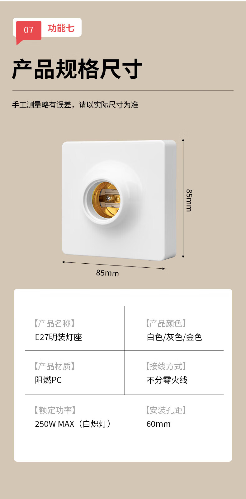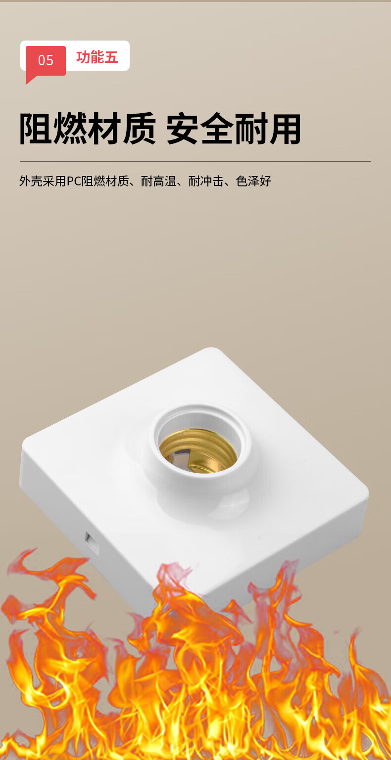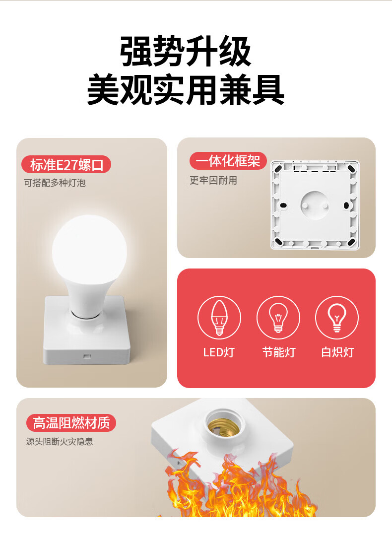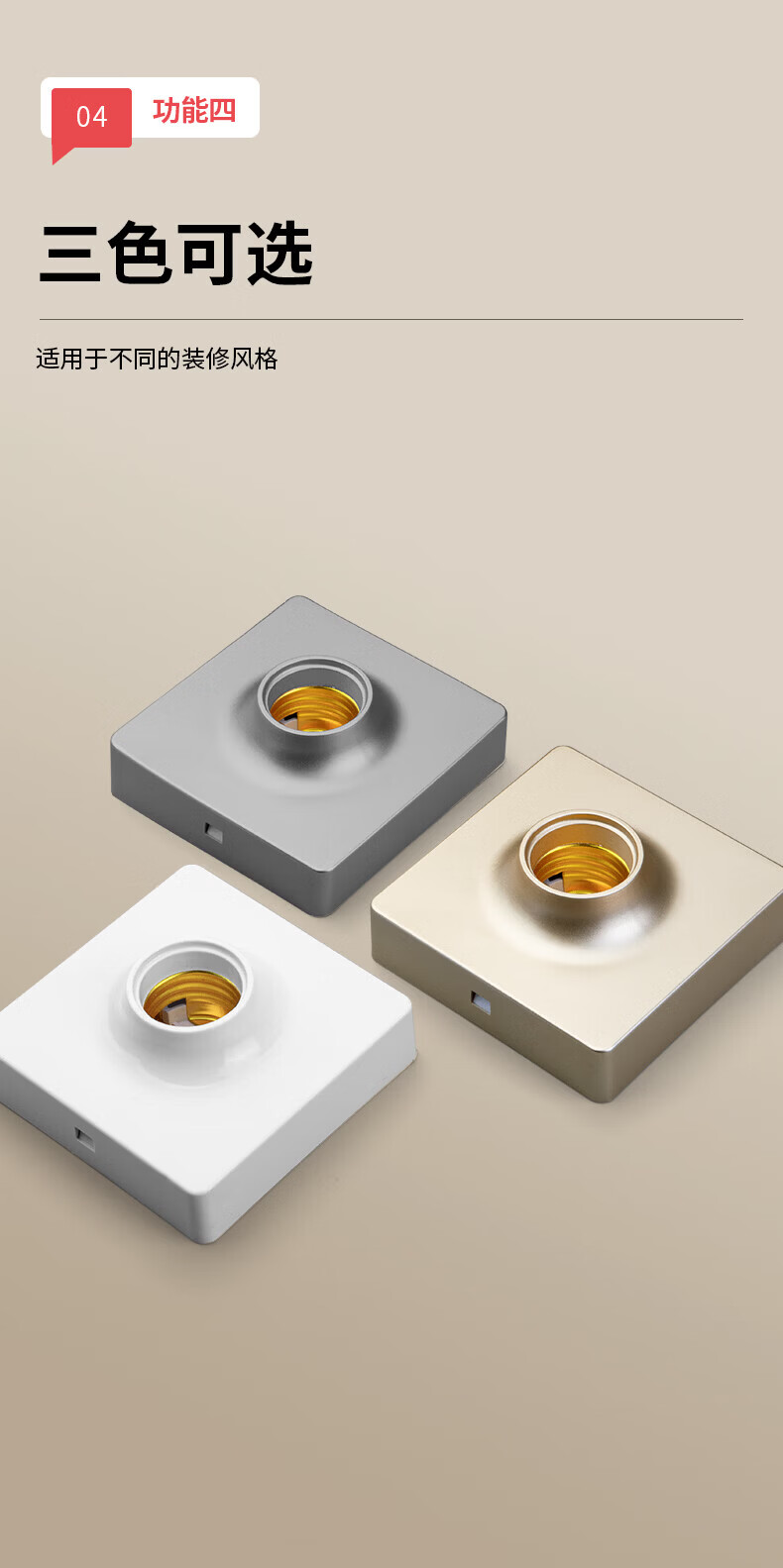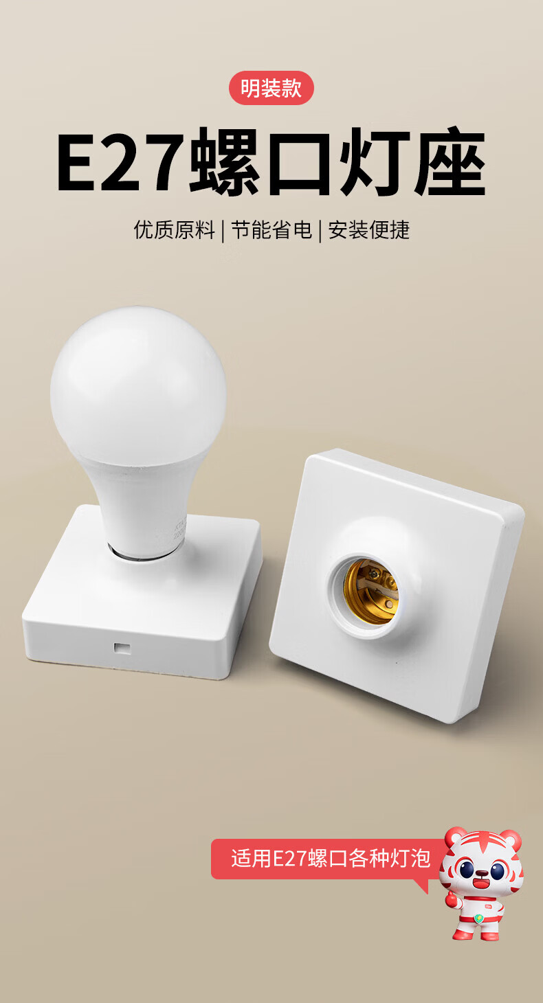 国际电工(FDD)明装E27螺口灯座LED灯泡螺旋灯头方形螺纹灯口家用节能灯底座 灰色明装灯座【1只装】