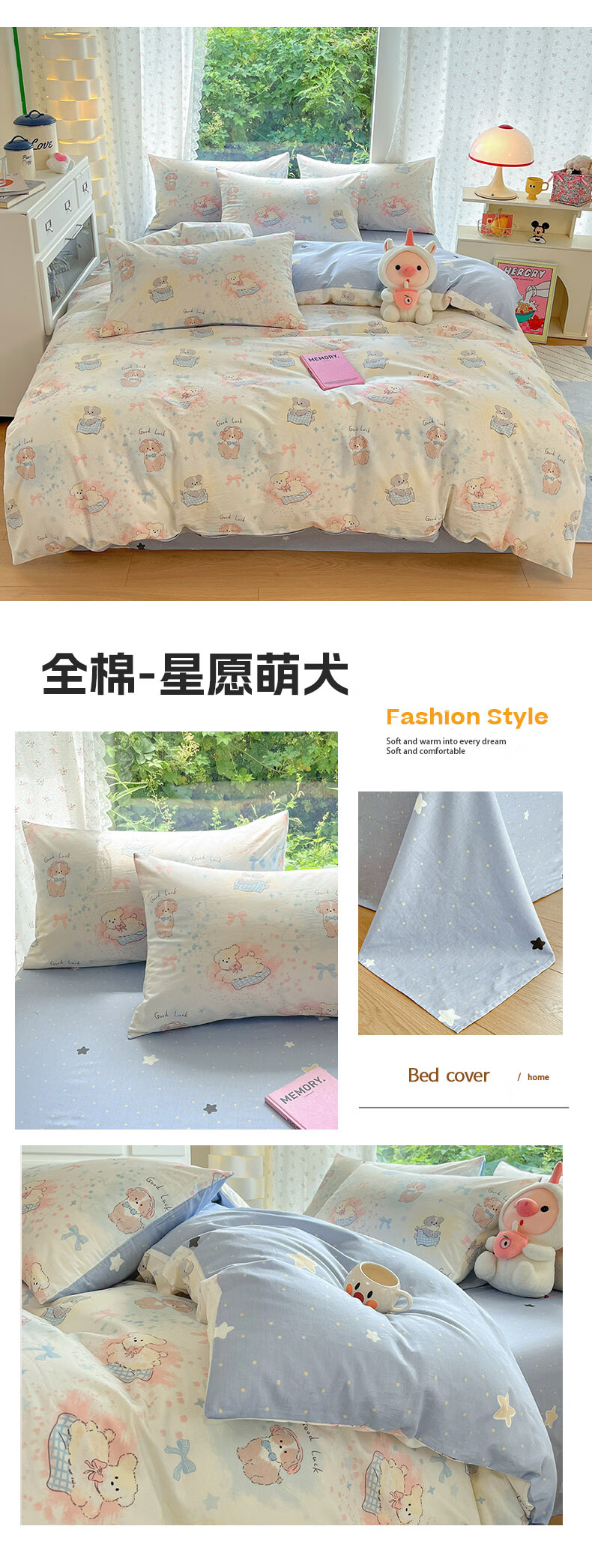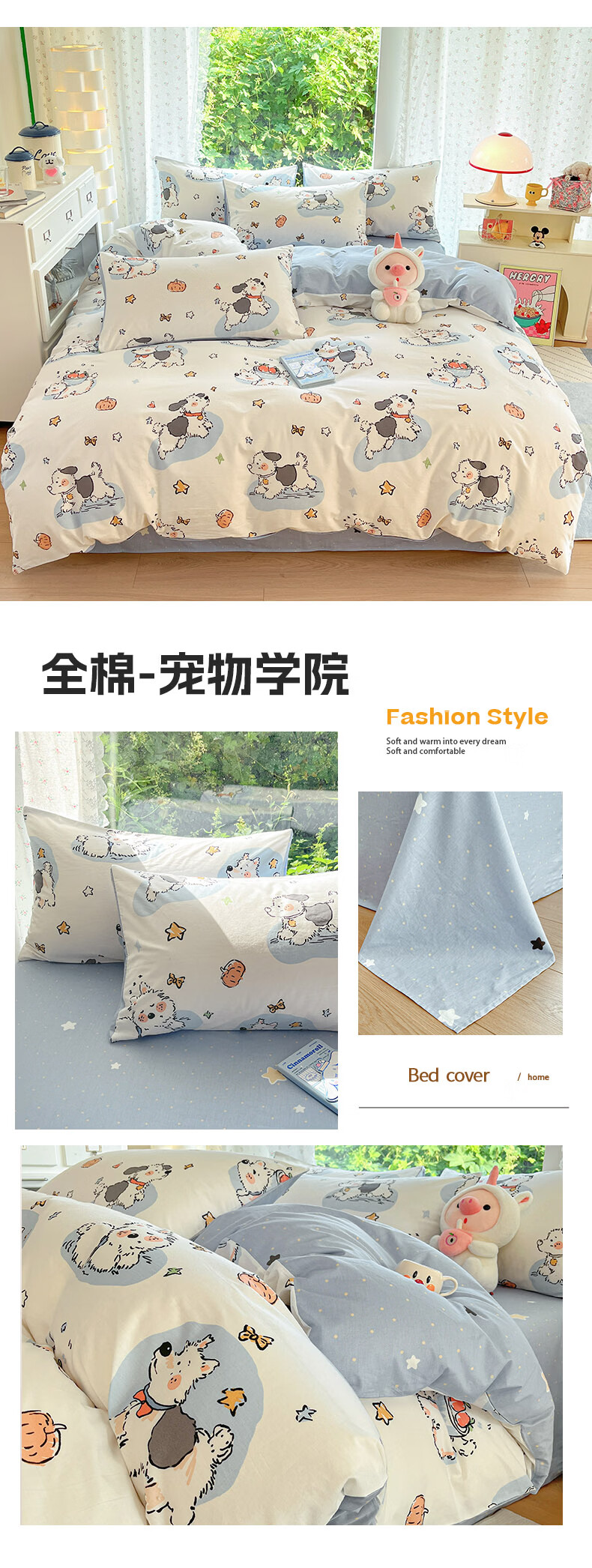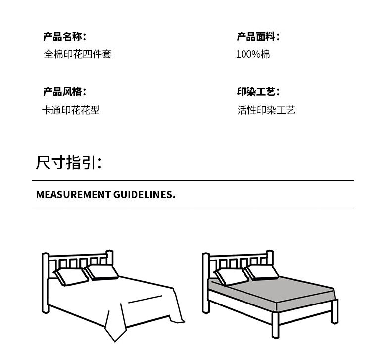 无印良品100%全棉床上四件套纯棉2026新款卡通狗狗被套床单床笠款床品套件 黑白西高地【100%全棉亲肤柔软】 床单款 1.8m四件套-被套200x230cm