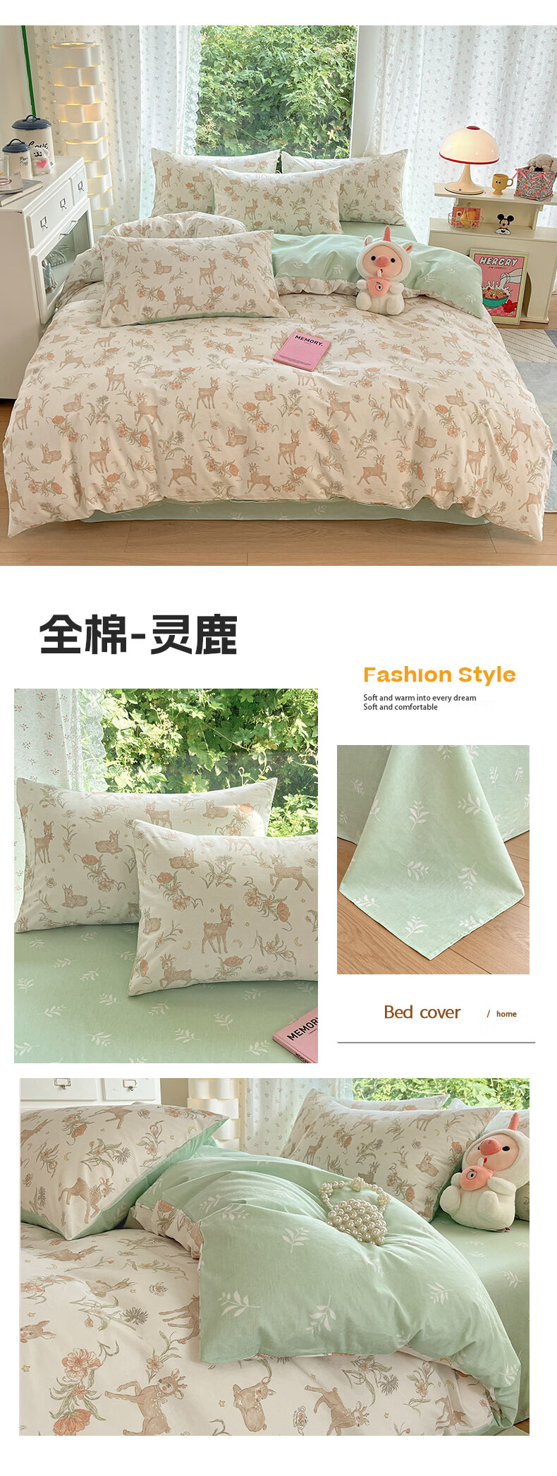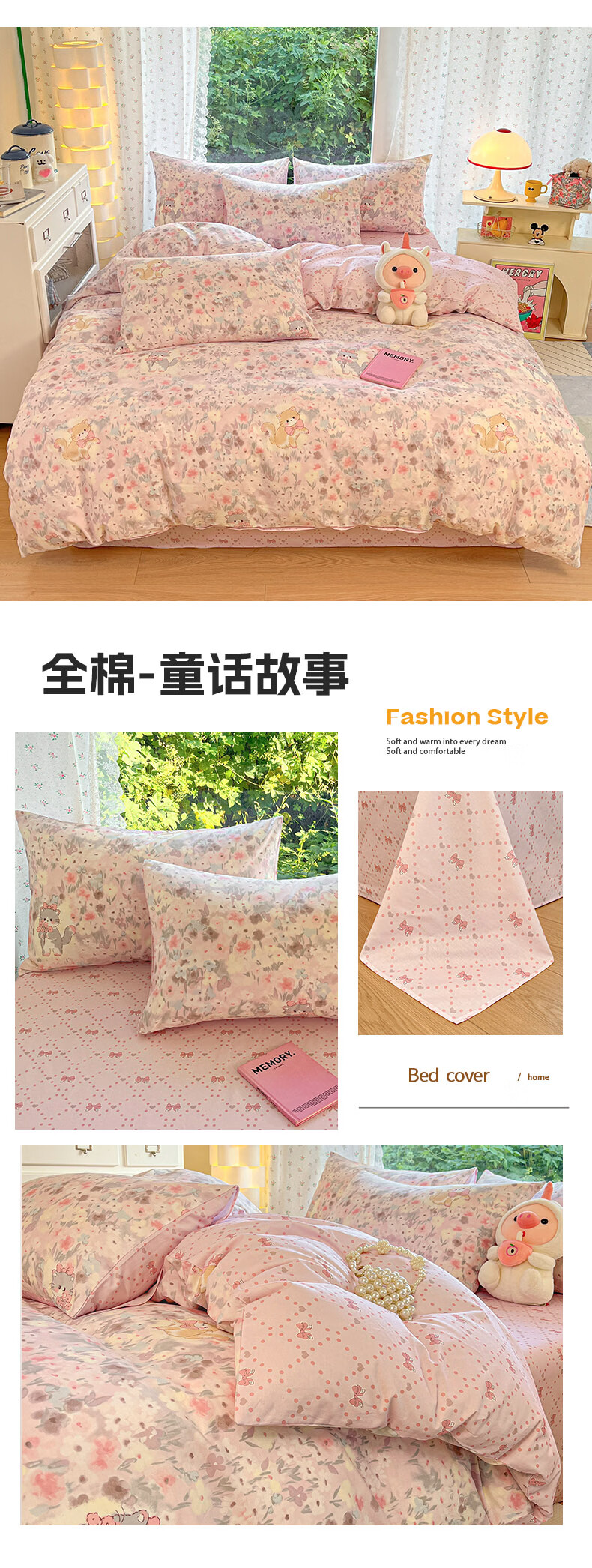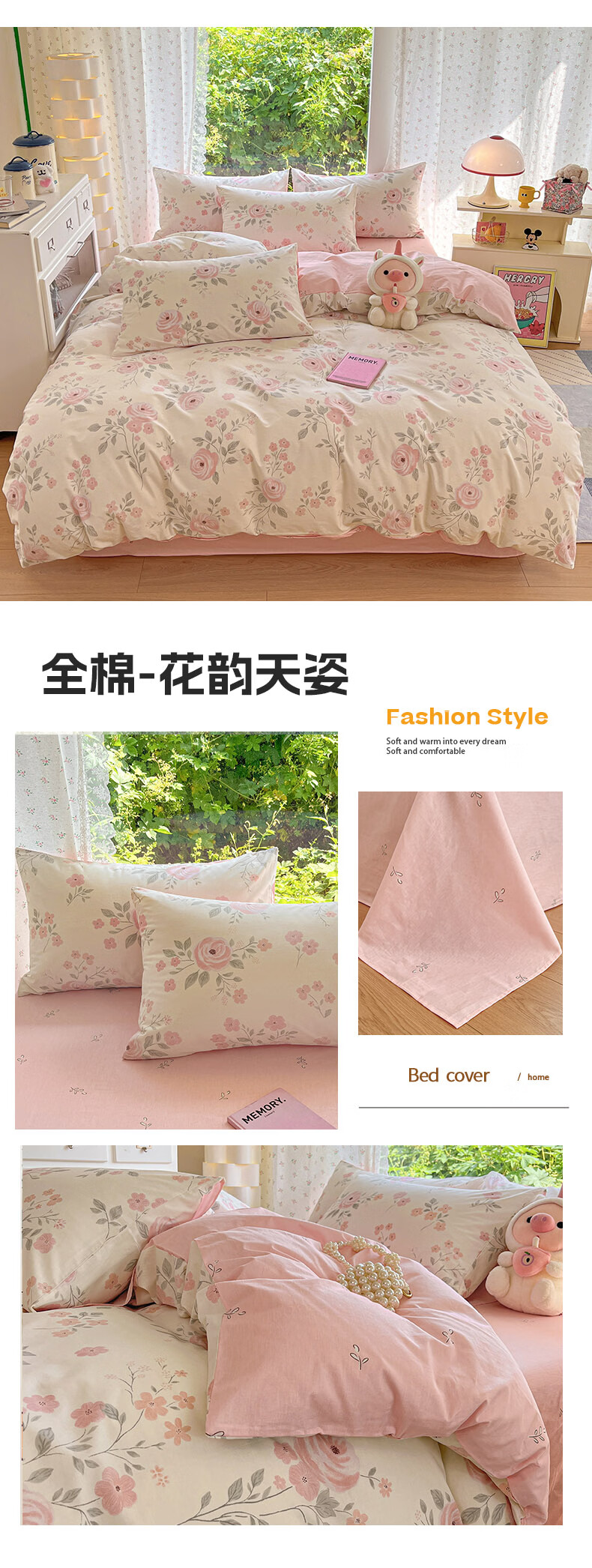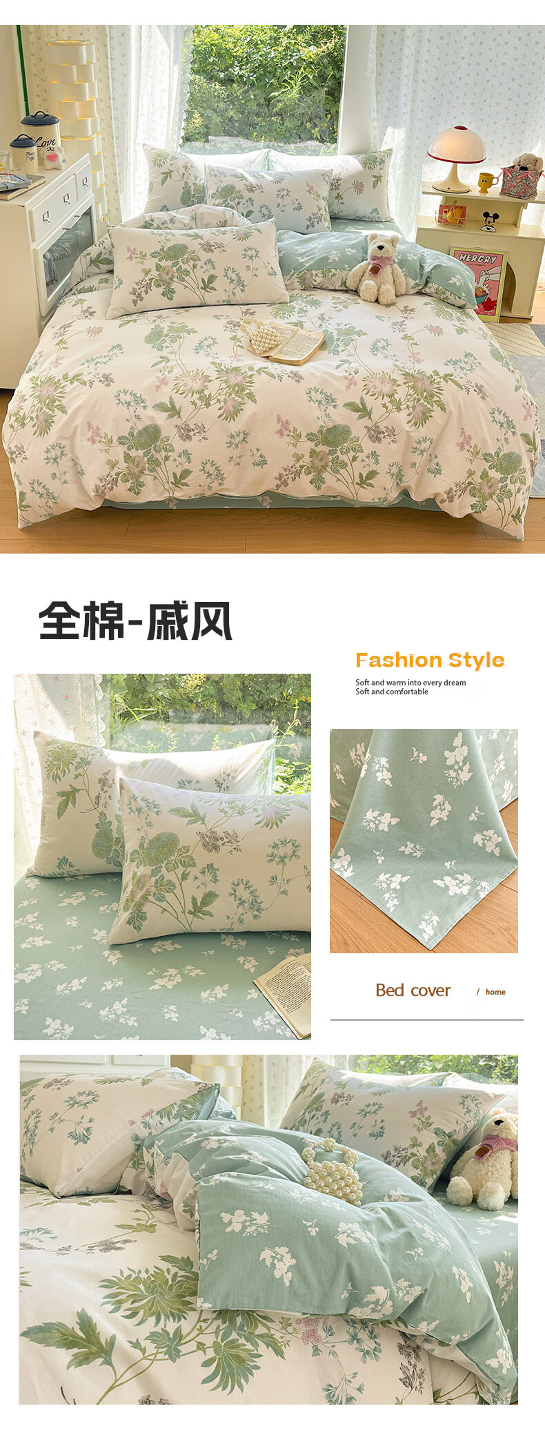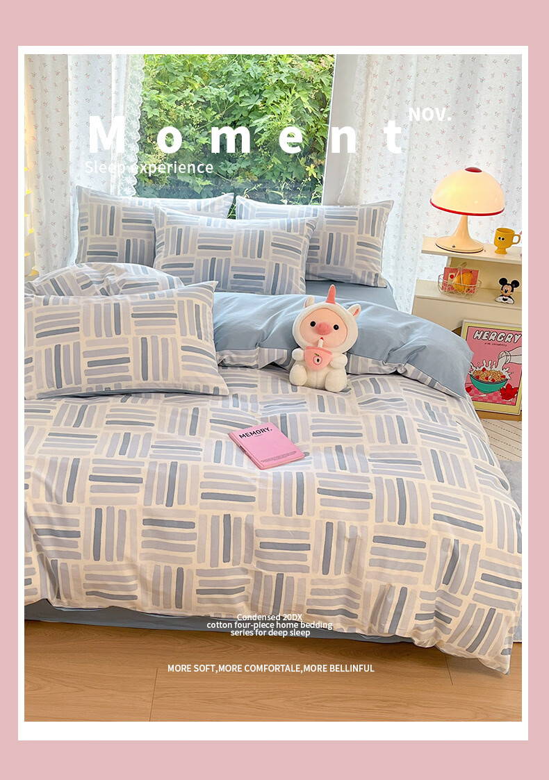 无印良品全棉床品四件套纯棉100%小清新花卉风单双人四季通用可裸睡三件套 苏屿【全棉面料 清新印花】 1.8m 床单款 被套200*230cm