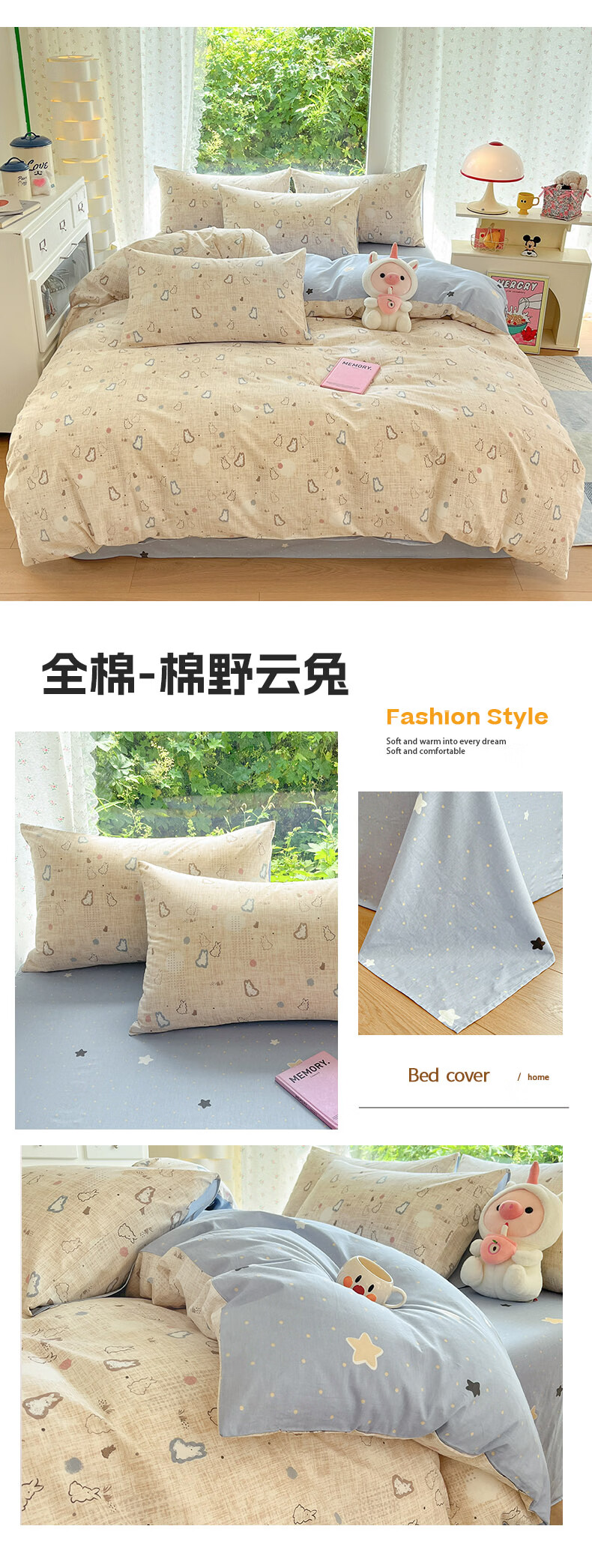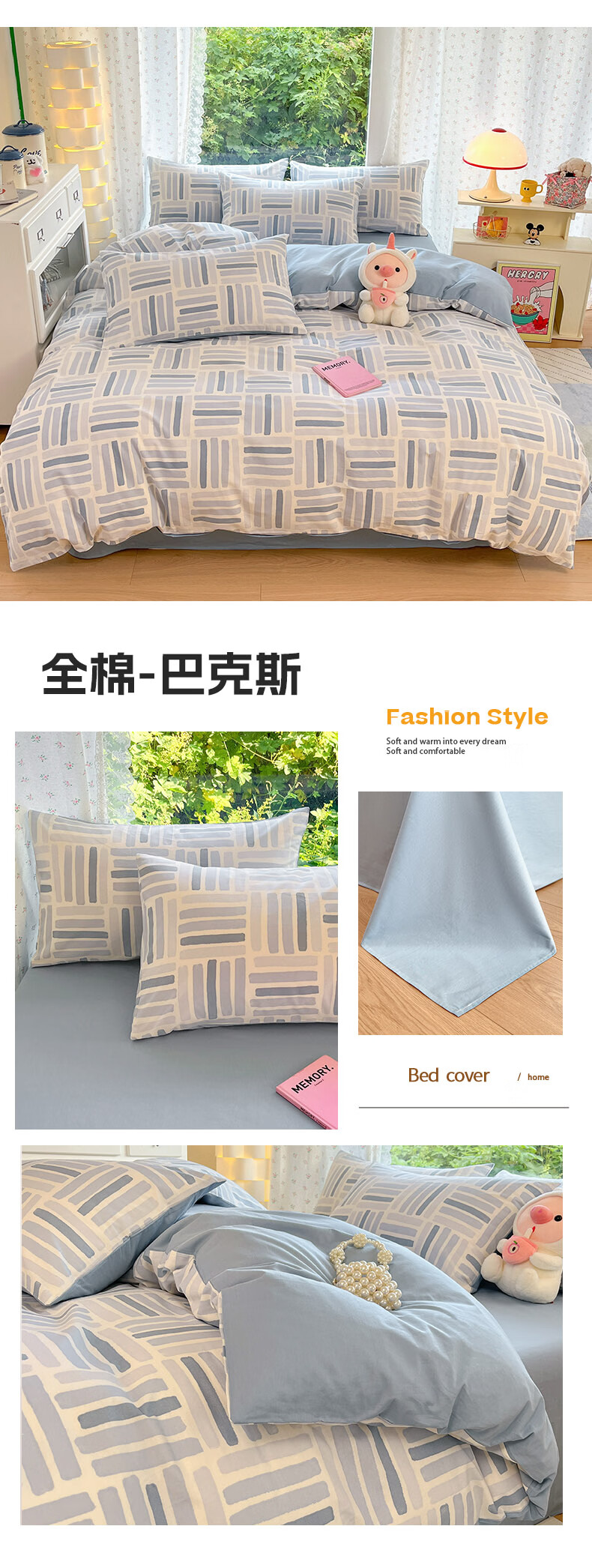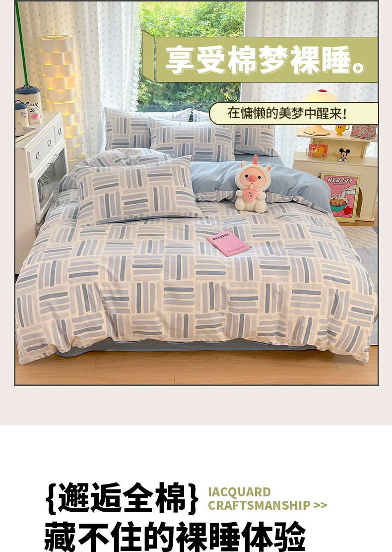 无印良品100%纯棉被套180cmx220cm单人被罩全棉26年新款宿舍家用4件套床品 巴克斯【精梳全棉 亲肤透气】 150cm*200cm 单被套