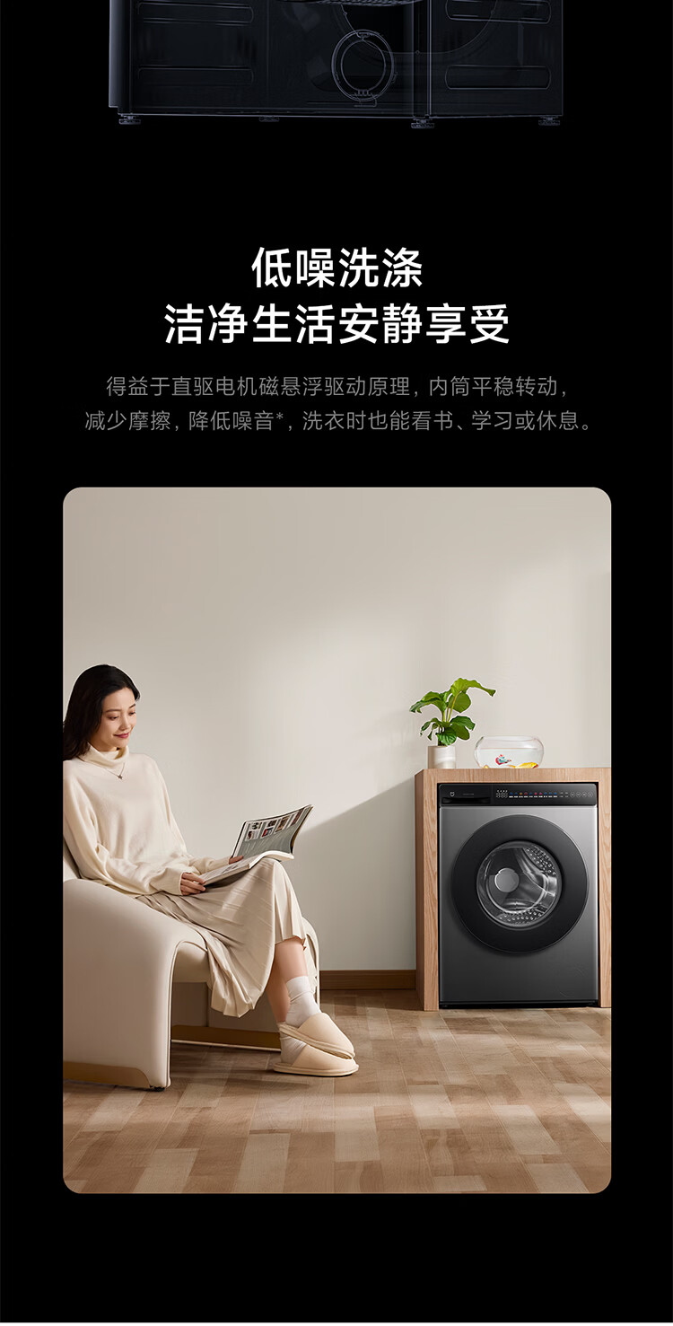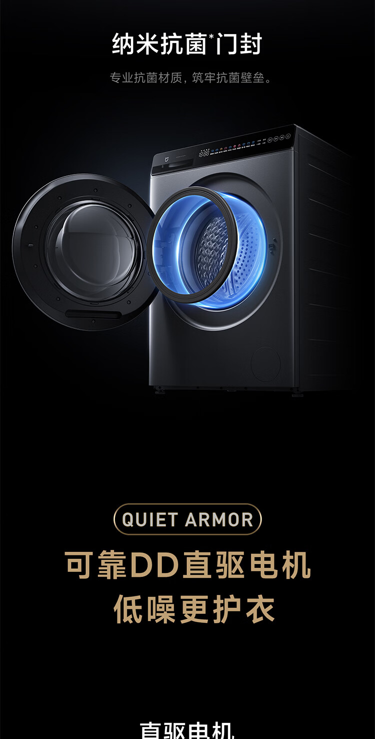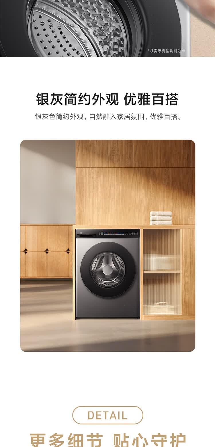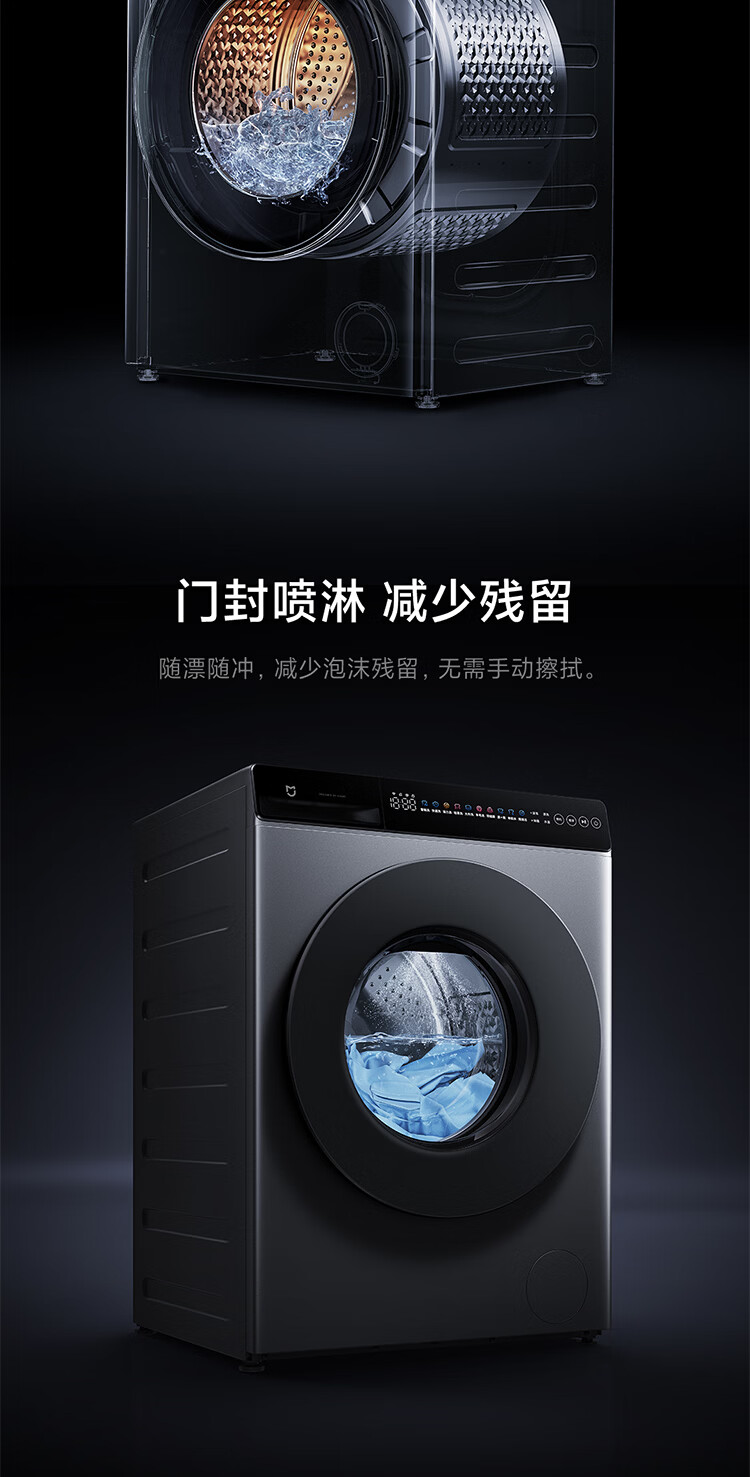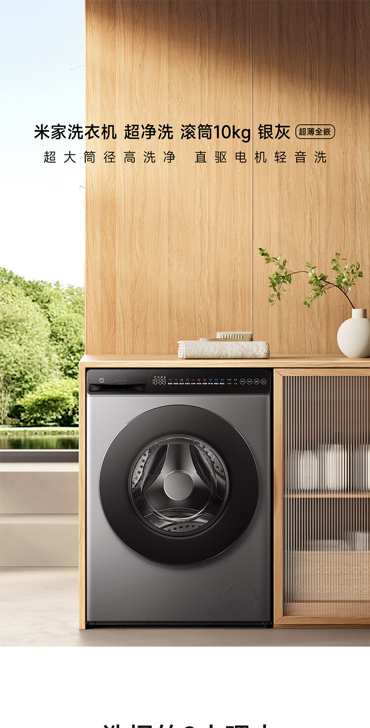 米家 10kg超净洗银灰 滚筒超净洗直驱变频全自动滚筒洗衣机 超大筒径超薄机身银灰色 XQG100MJ107 滚筒单洗