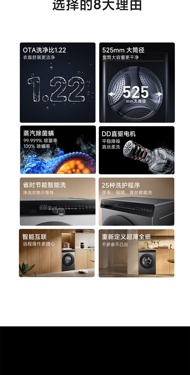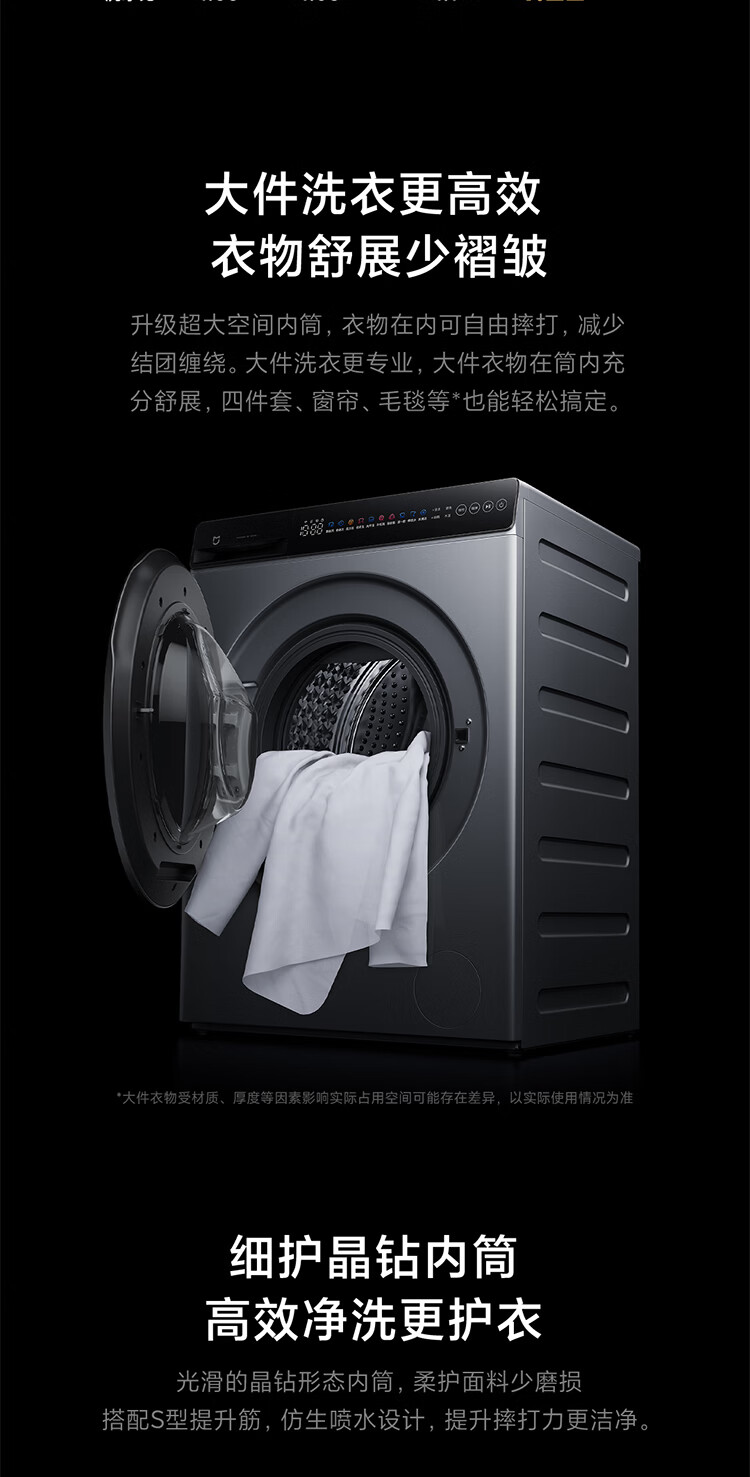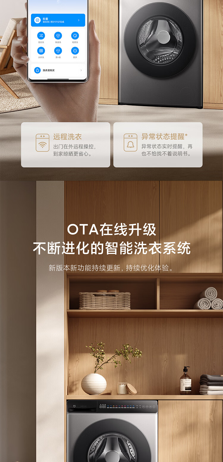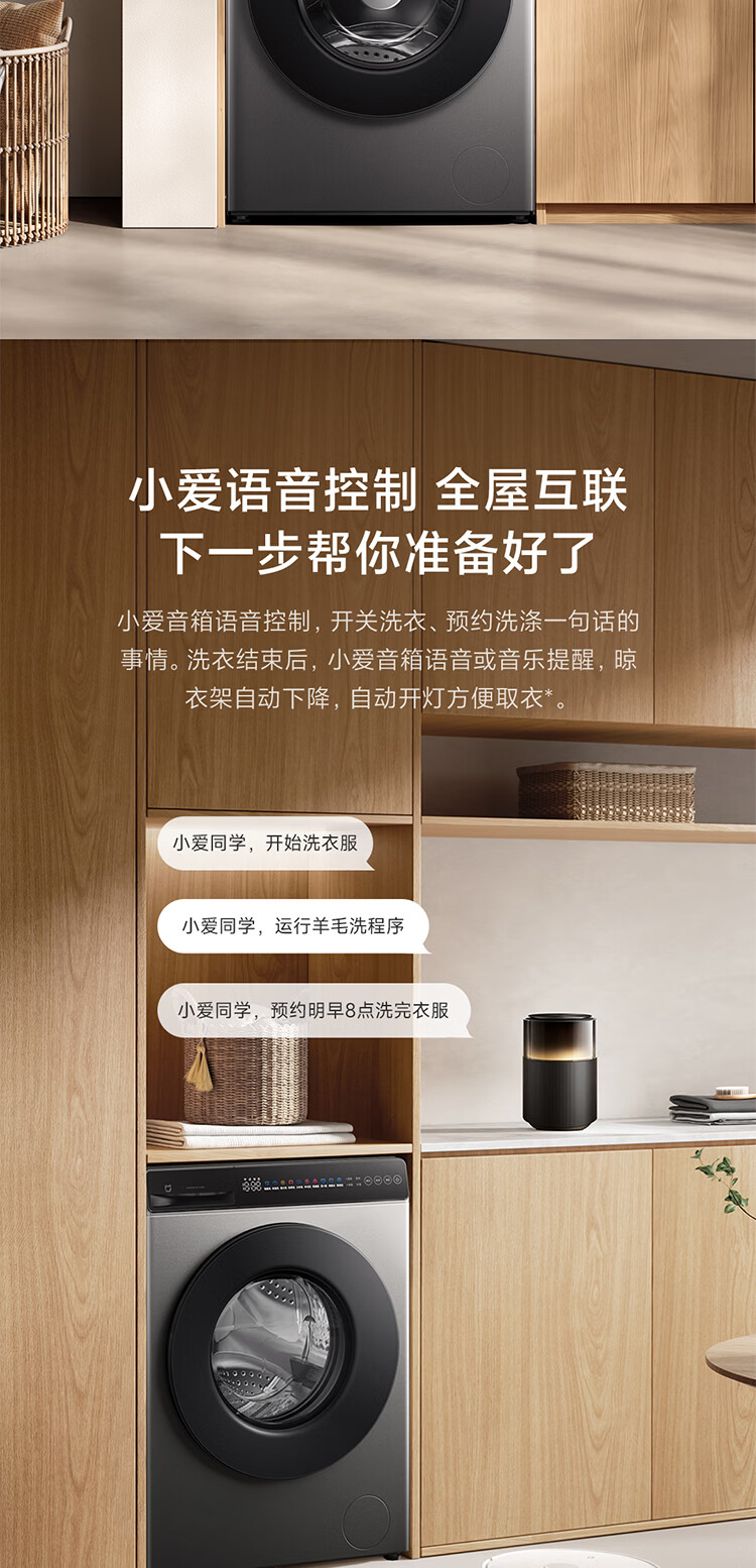 米家 10kg超净洗银灰 滚筒超净洗直驱变频全自动滚筒洗衣机 超大筒径超薄机身银灰色 XQG100MJ107 滚筒单洗