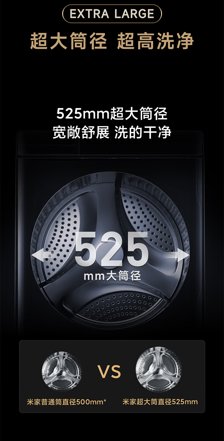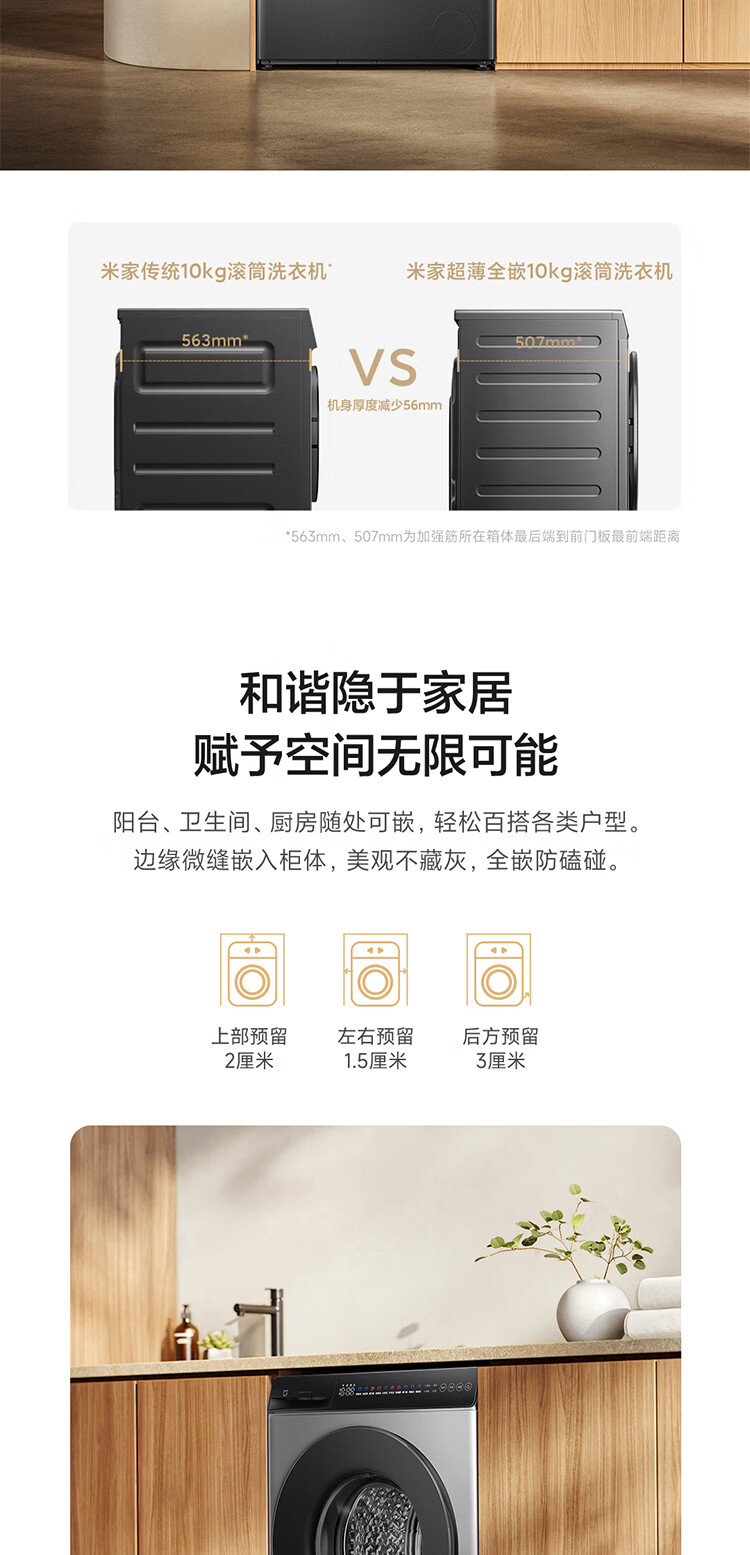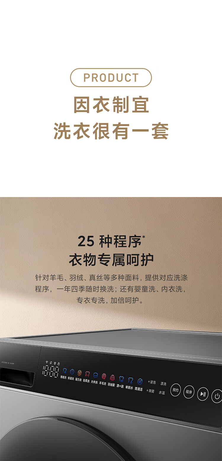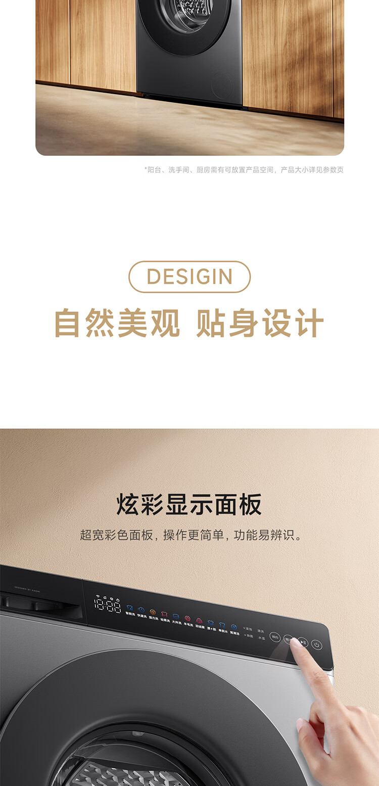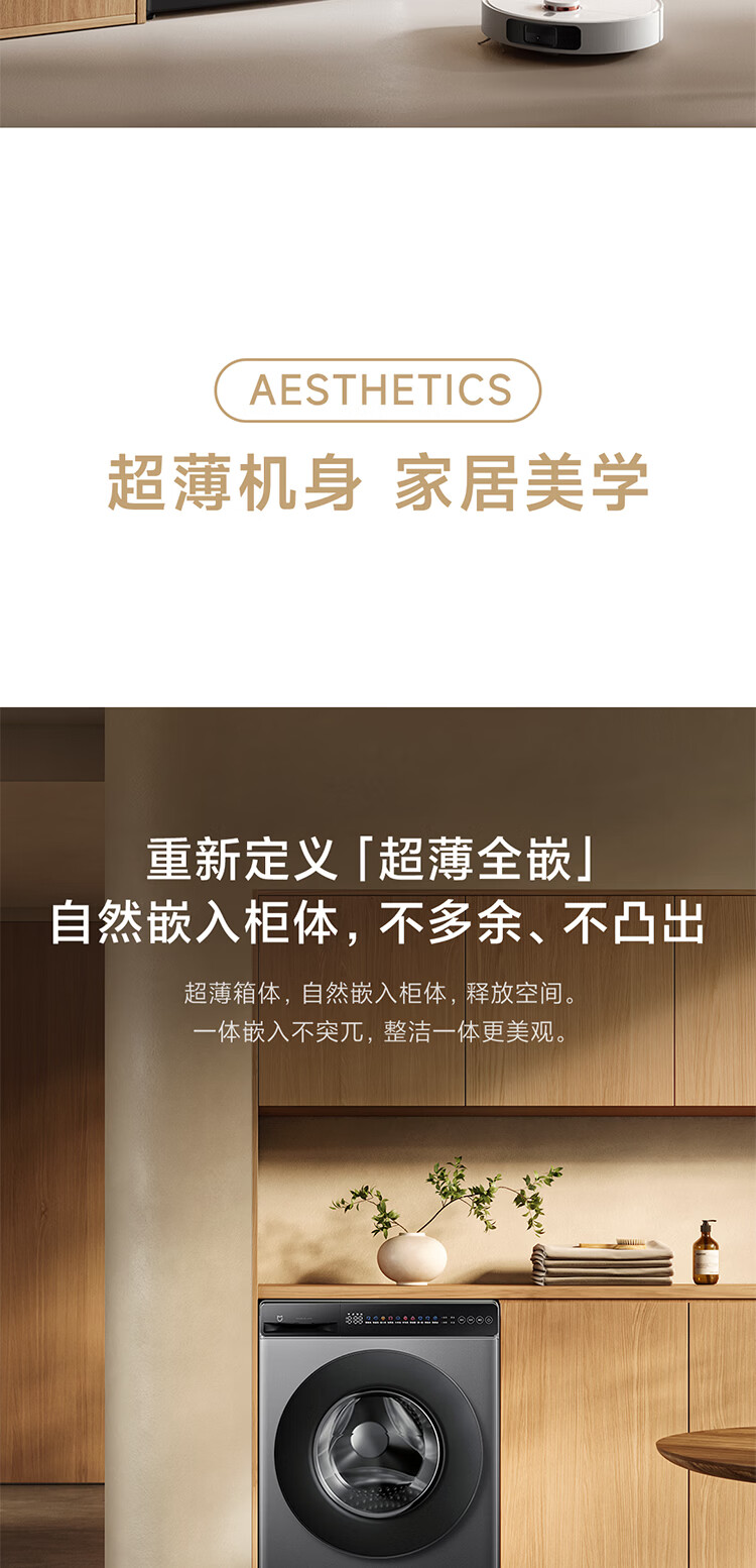 米家 10kg超净洗银灰 滚筒超净洗直驱变频全自动滚筒洗衣机 超大筒径超薄机身银灰色 XQG100MJ107 滚筒单洗