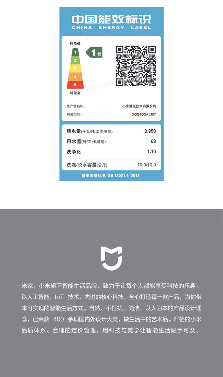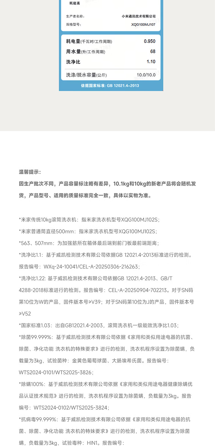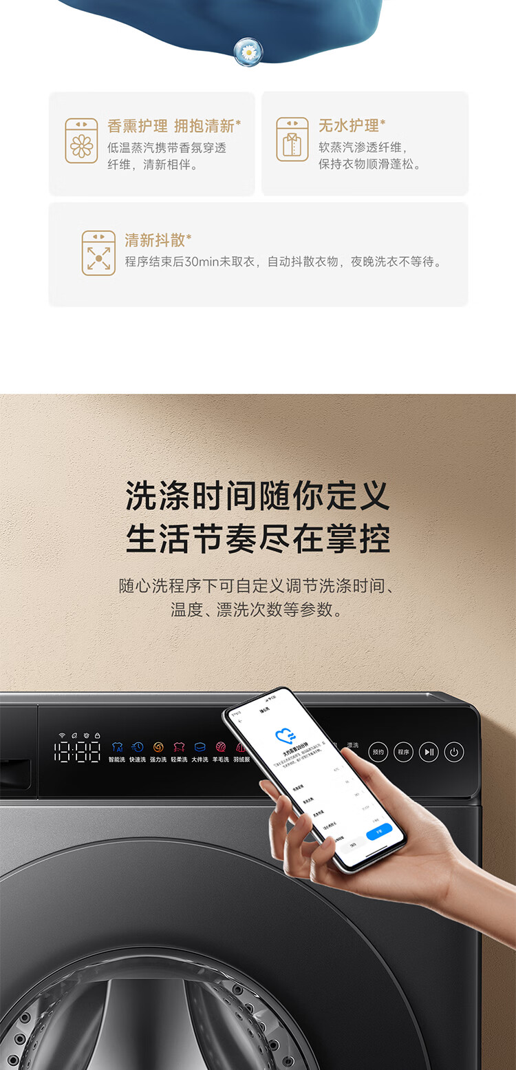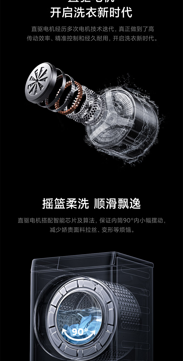米家 10kg超净洗银灰 滚筒超净洗直驱变频全自动滚筒洗衣机 超大筒径超薄机身银灰色 XQG100MJ107 滚筒单洗