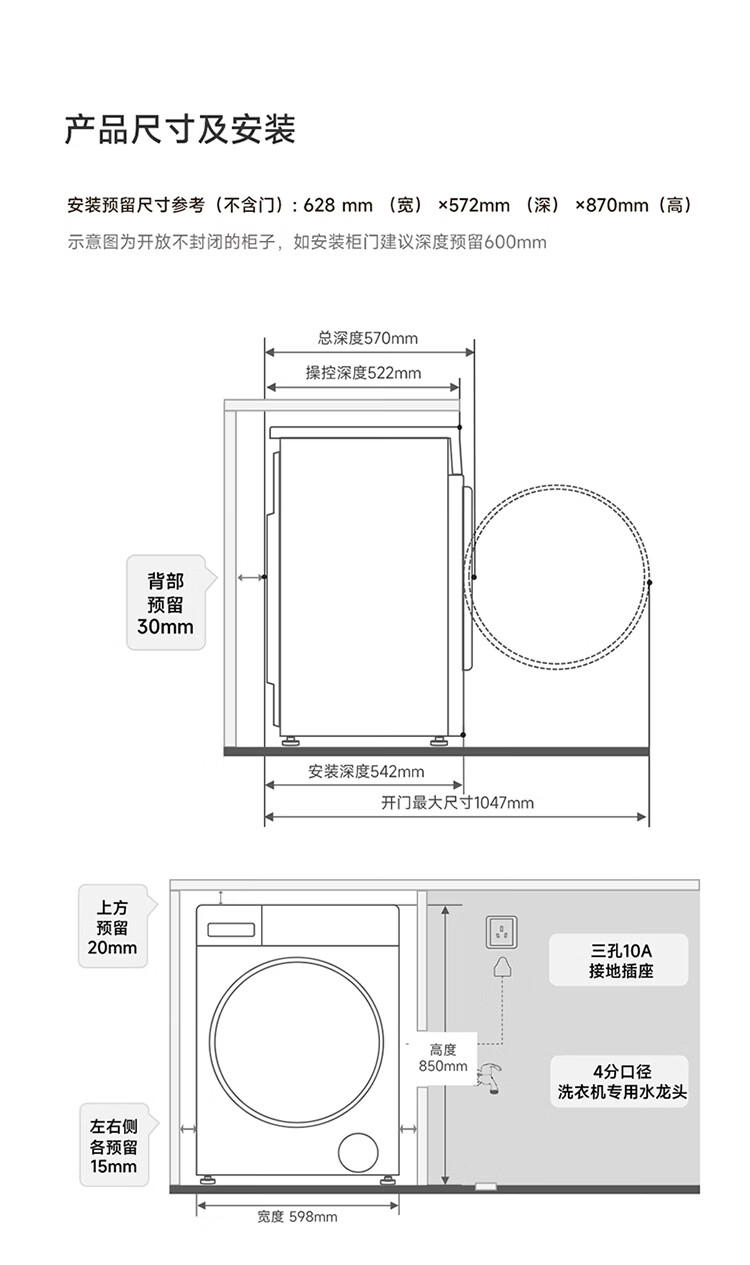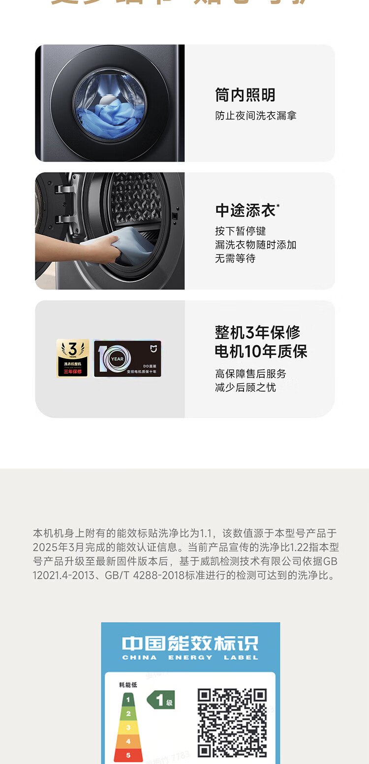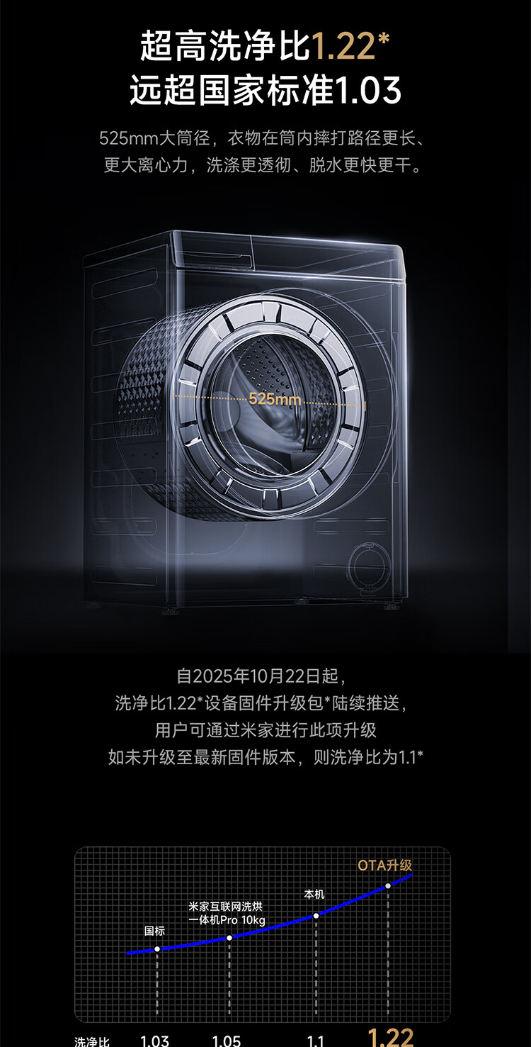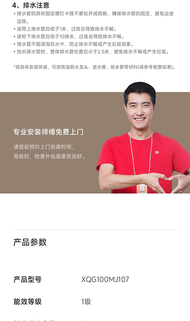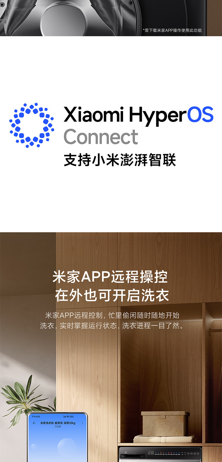 米家 10kg超净洗银灰 滚筒超净洗直驱变频全自动滚筒洗衣机 超大筒径超薄机身银灰色 XQG100MJ107 滚筒单洗