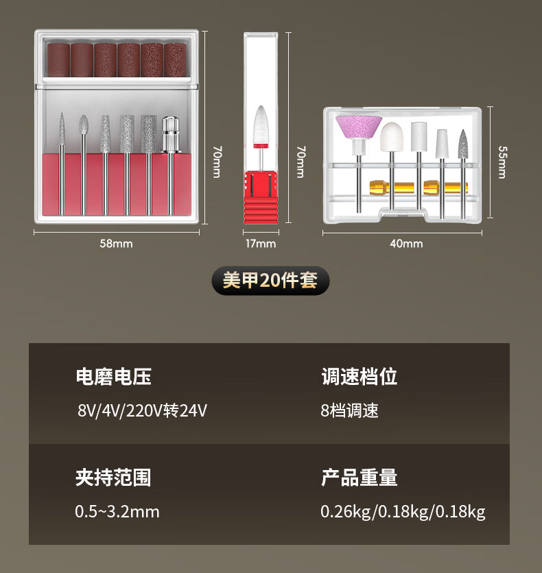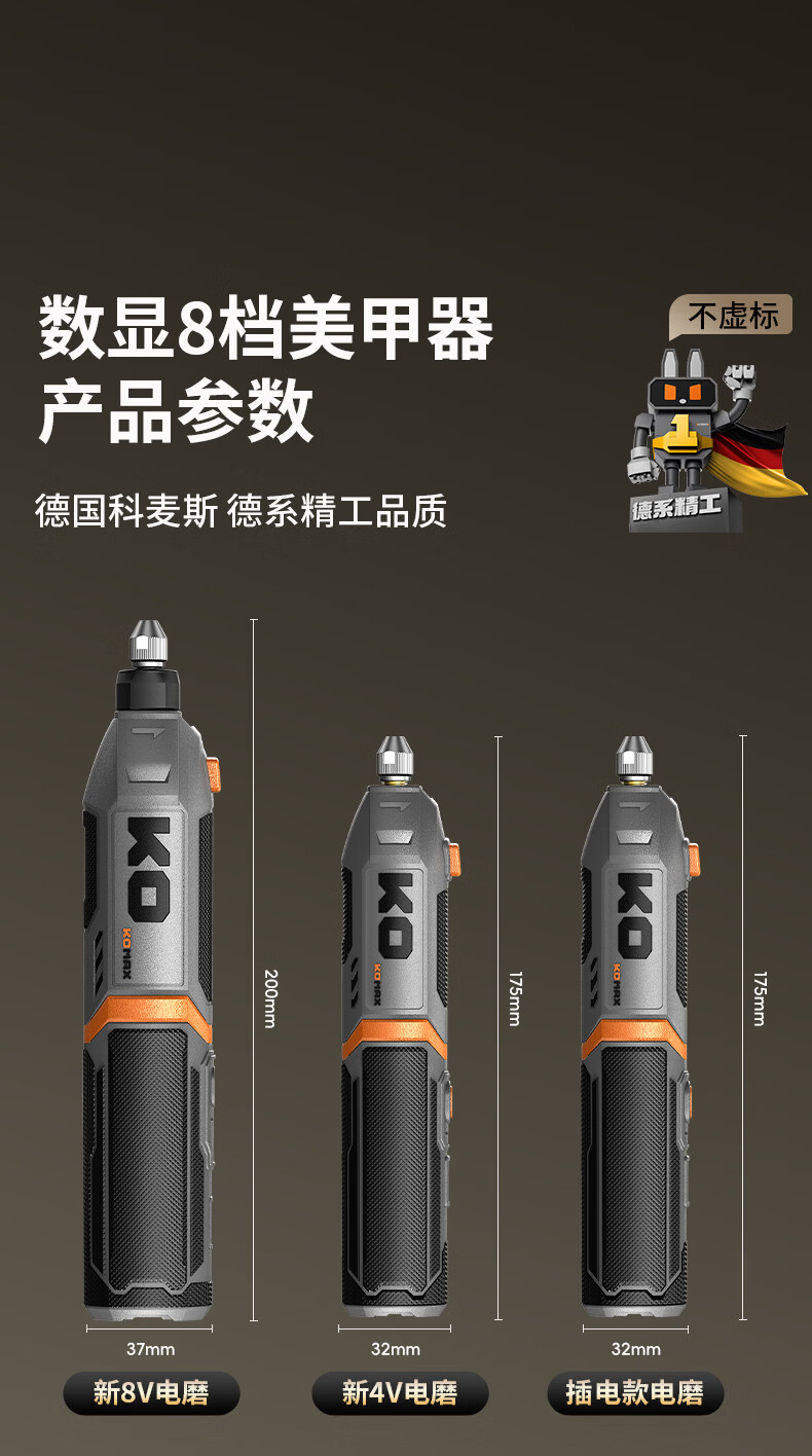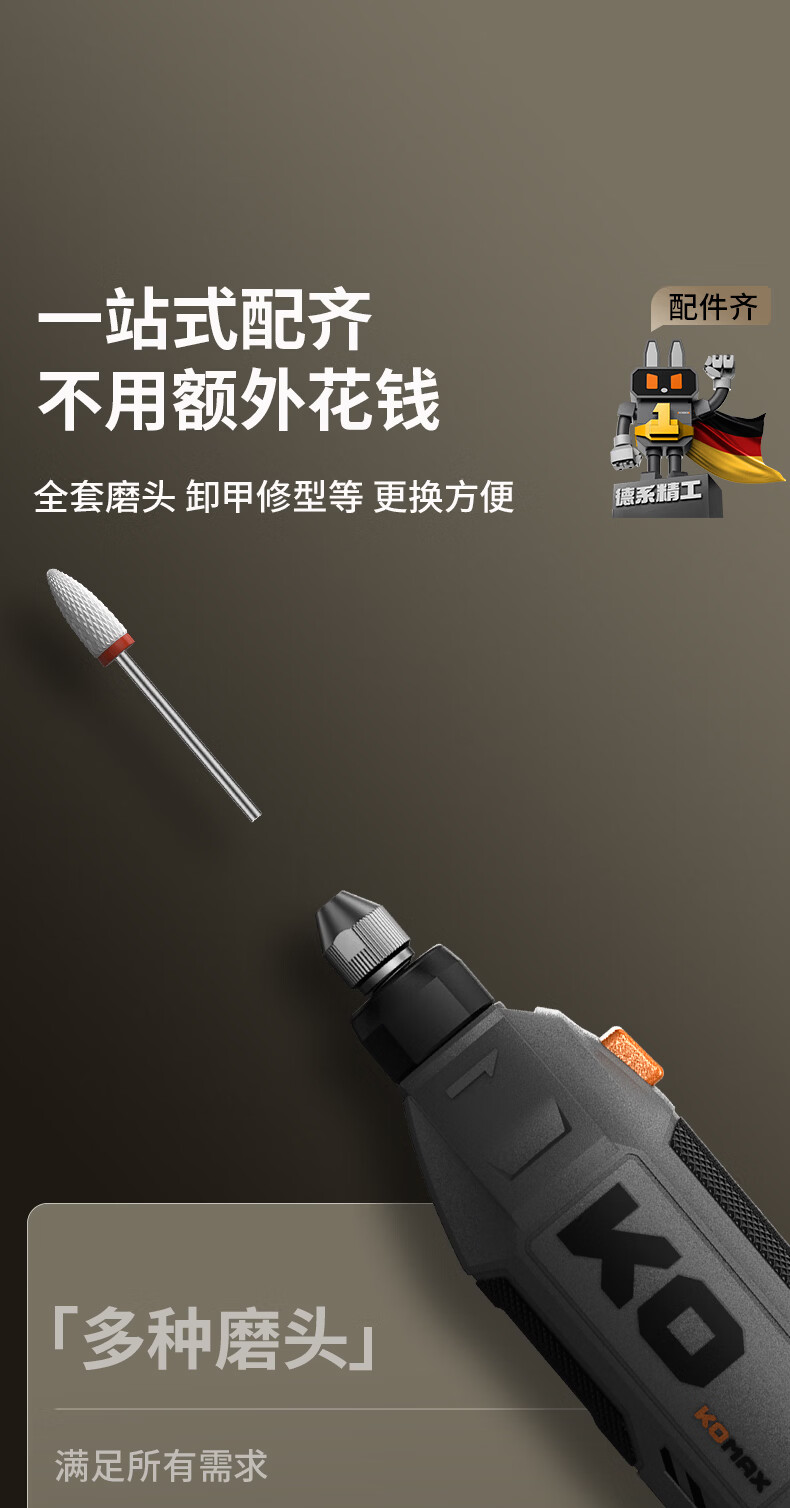 科麦斯(KOMAX)小型手持锂电电磨机多功能美甲打磨抛光手持式大功率五金电动工具 【数显8档调速】K0插电款电磨+美甲20件套
