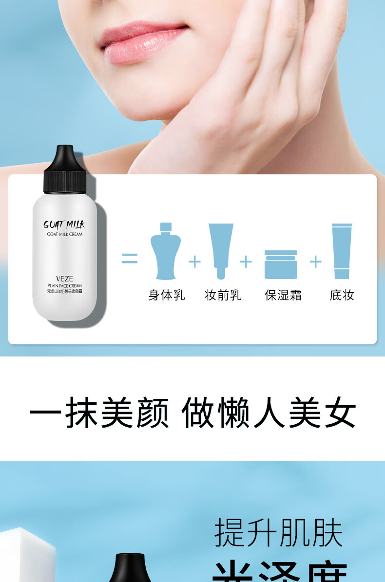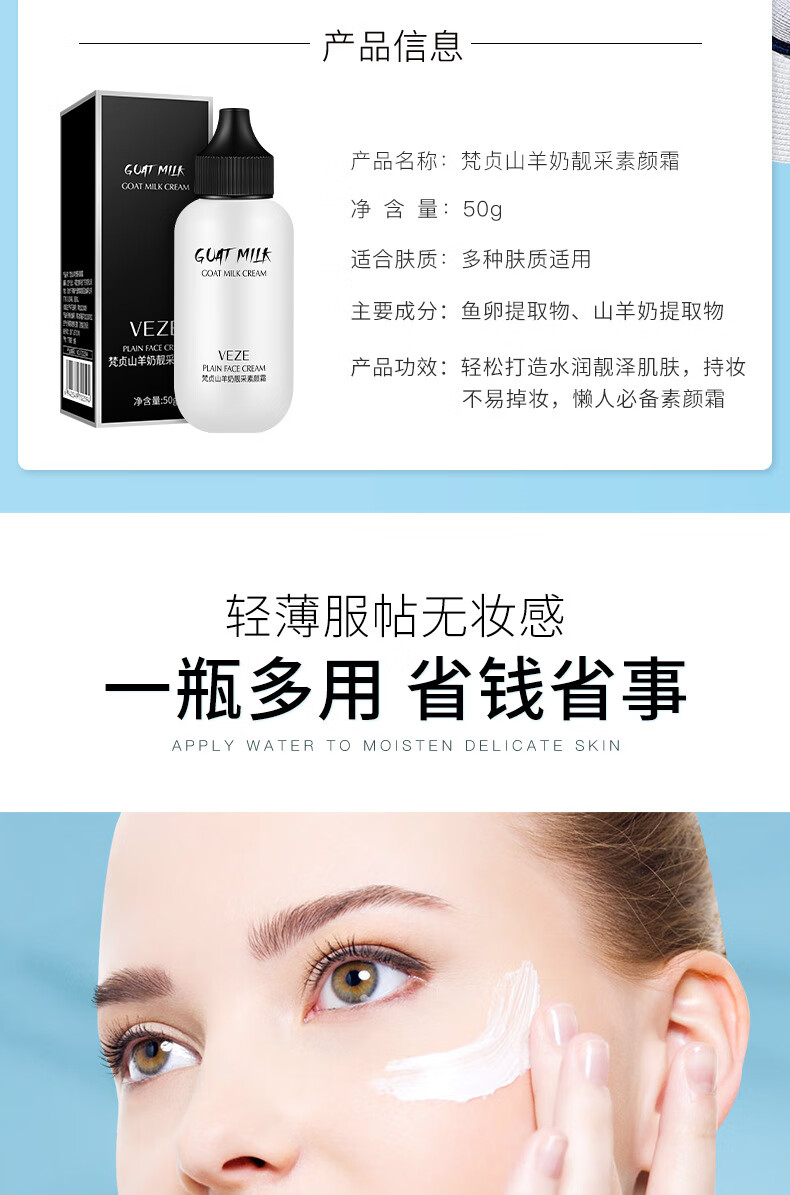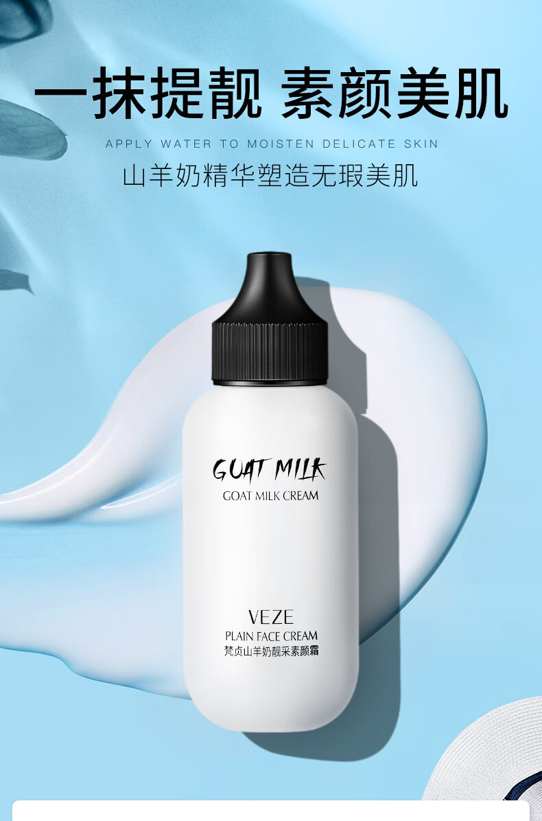 梵贞山羊奶素颜亮肤裸妆控油懒人面补水保湿隔离打底化妆品 50g VEZE梵贞山羊奶靓采素颜霜(新