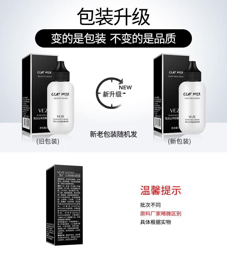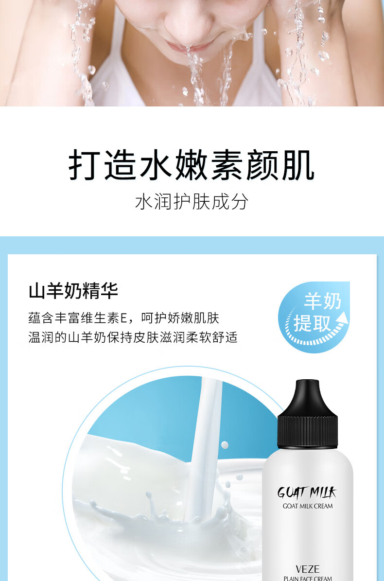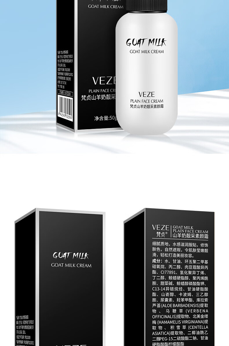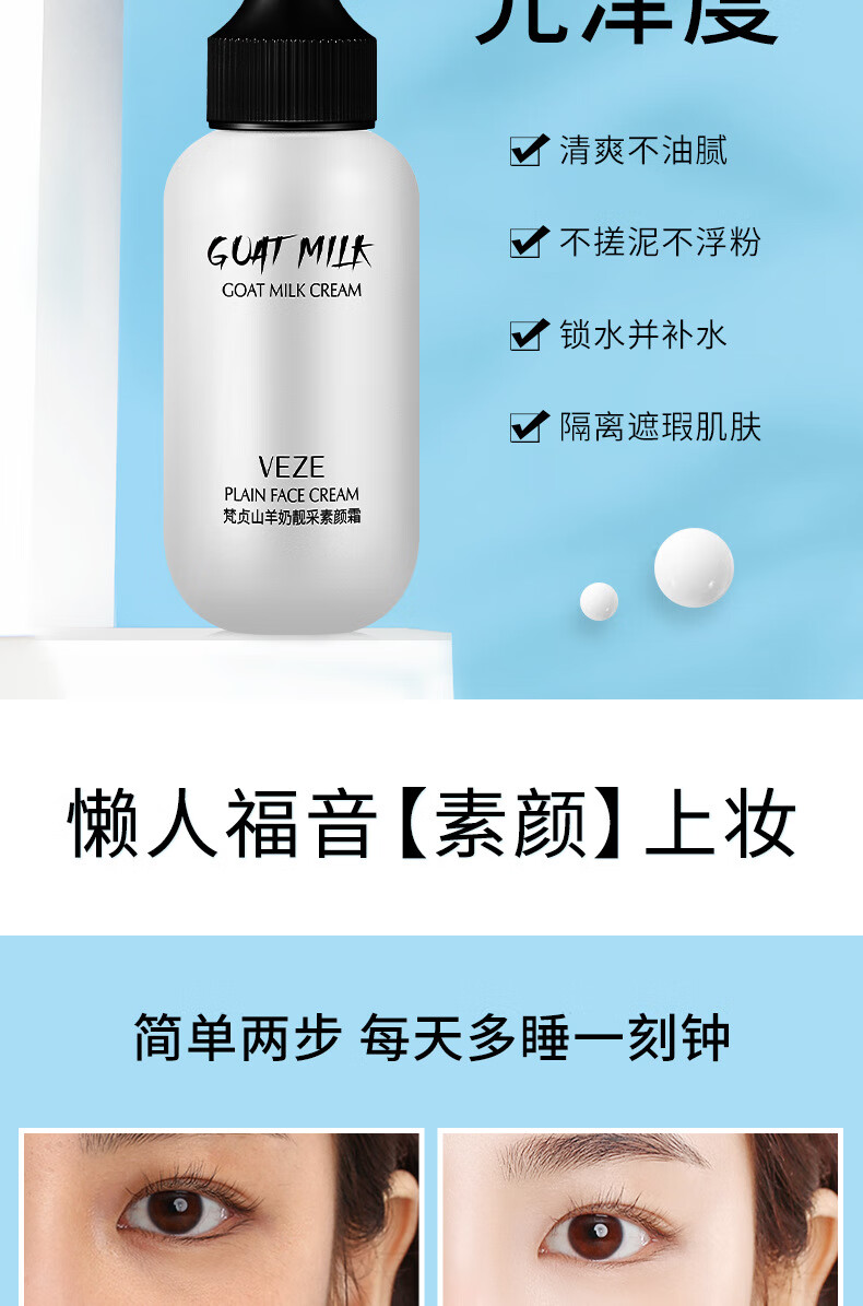 梵贞山羊奶素颜亮肤裸妆控油懒人面补水保湿隔离打底化妆品 50g VEZE梵贞山羊奶靓采素颜霜(新
